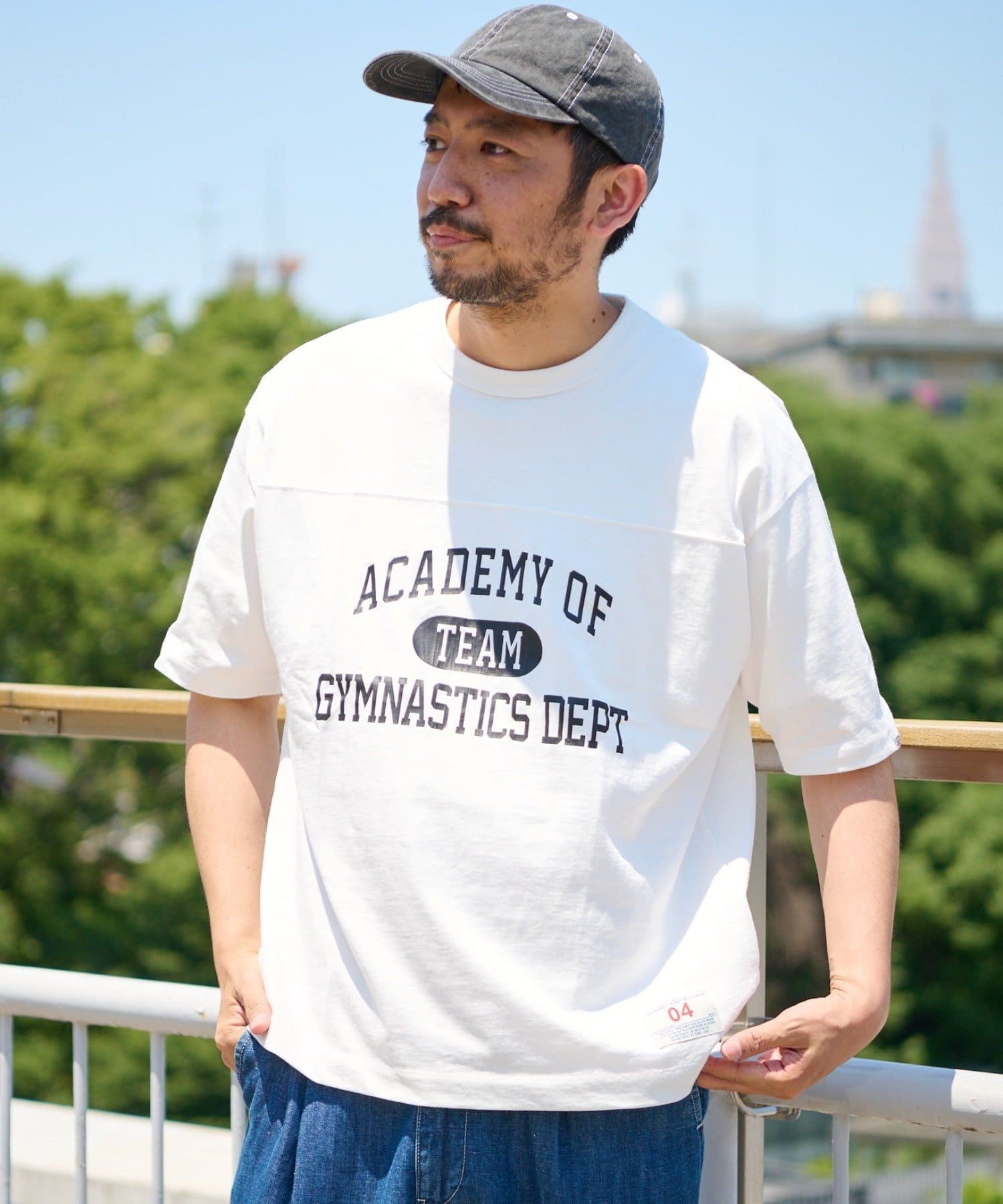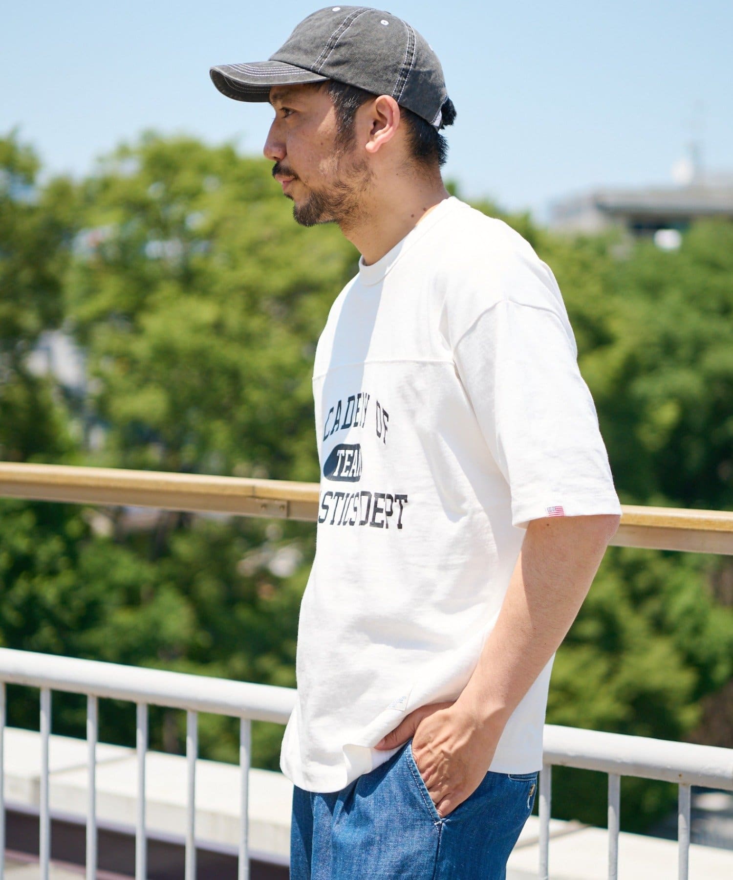 フットボールTならではのフロントステッチがラフでスポーティな雰囲気を演出。