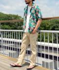 ショートパンツやサンダルを合わせたラフな雰囲気のスタイリングがオススメです。