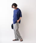 柄のパンツを合わせたラフなスタイリングがオススメです。