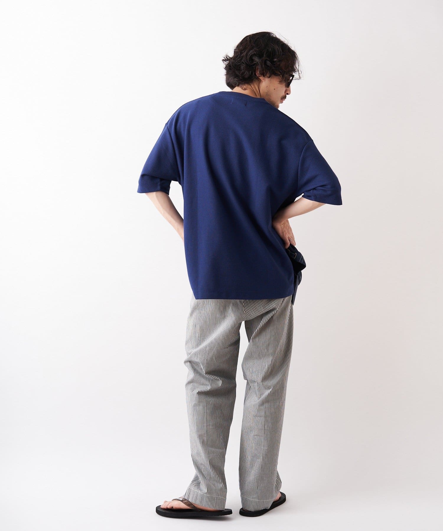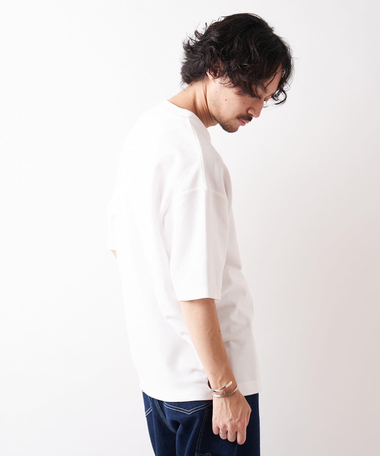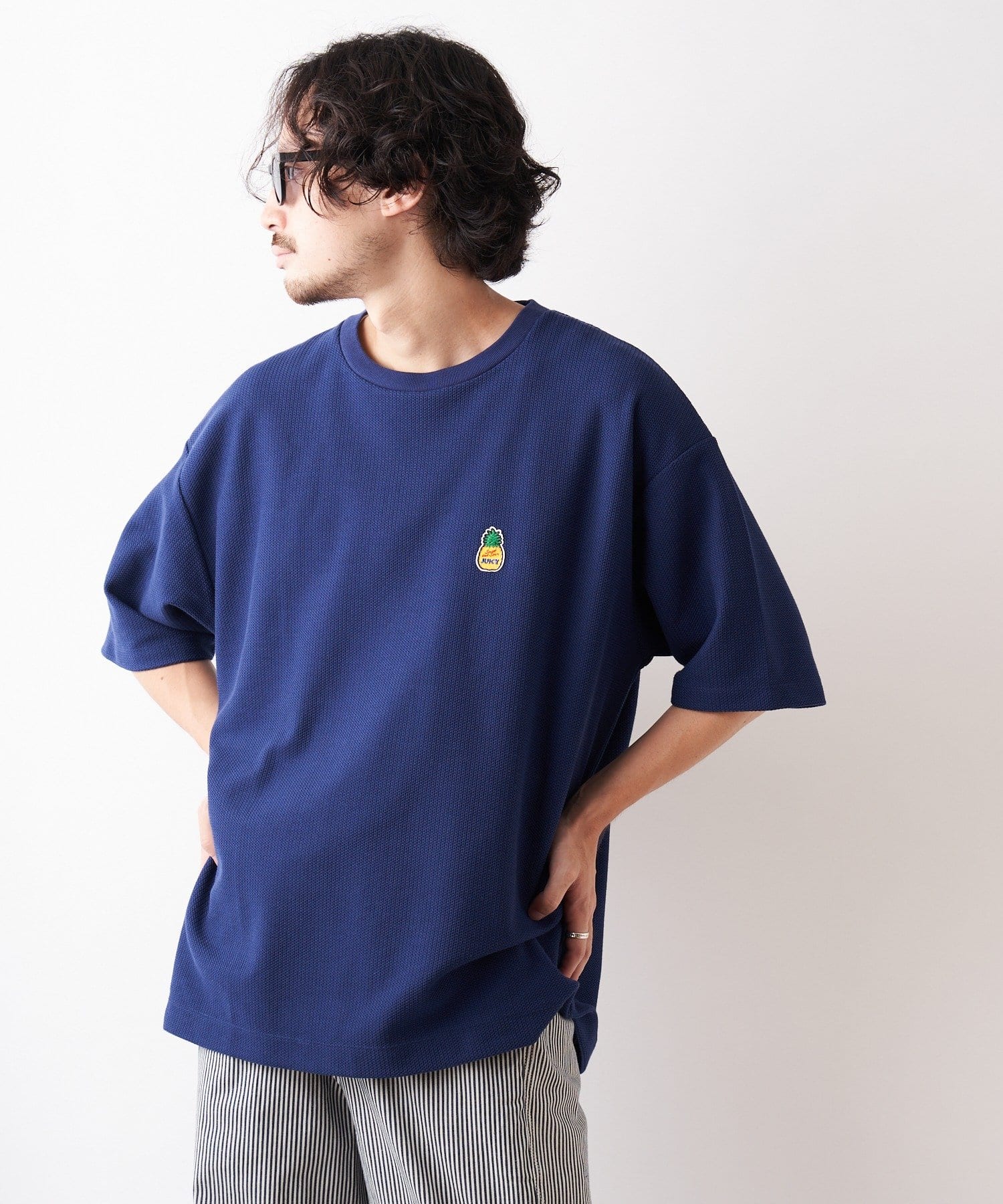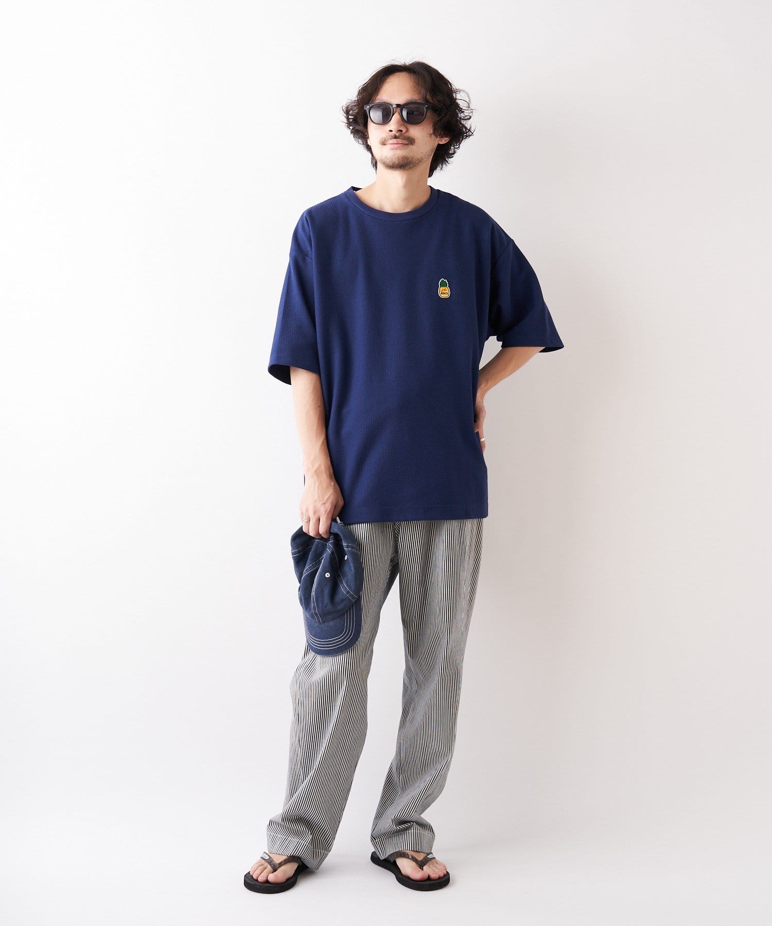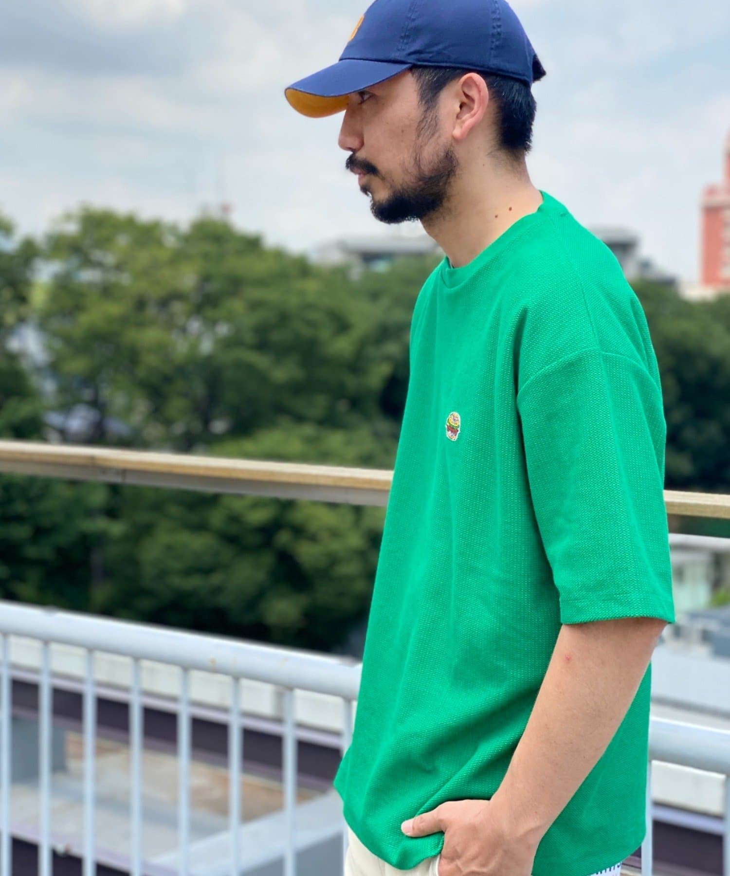 胸元のワッペンがコーディネートのポイントになる鹿の子素材のTEEシャツです。