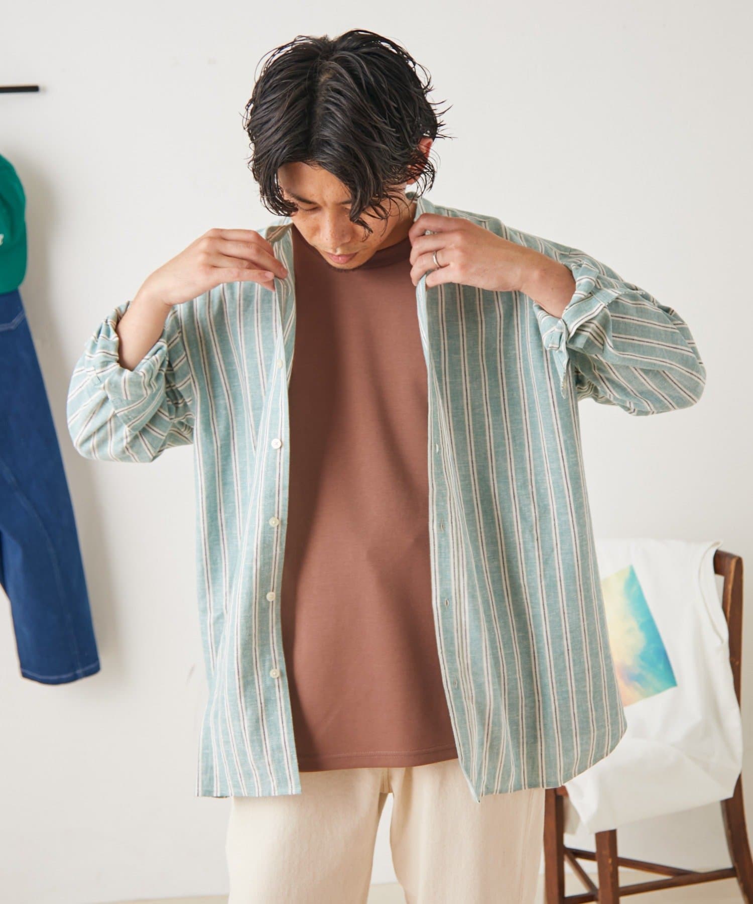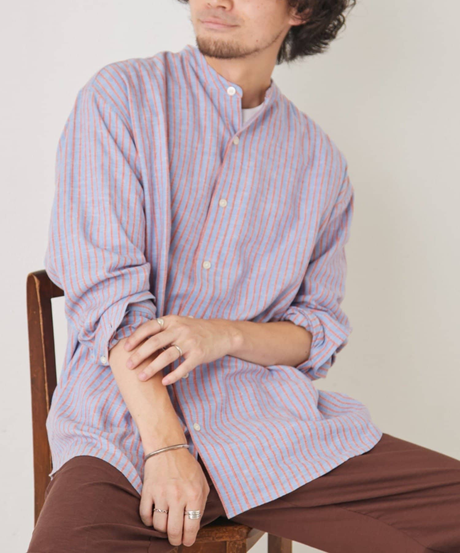 【CIAOPANIC TYPY】リネンレーヨンストライプバンドカラーシャツ