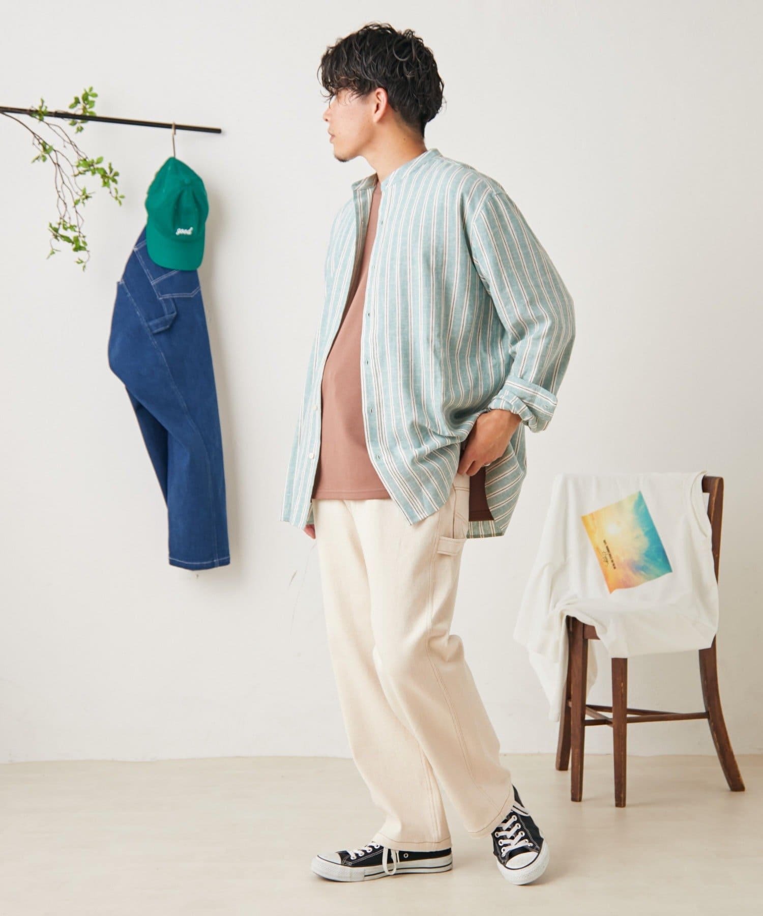 バンドカラーデザインはほど良く抜け感があるので、スラックスなどキレイめアイテムの外しとしても使いやすいアイテムです。