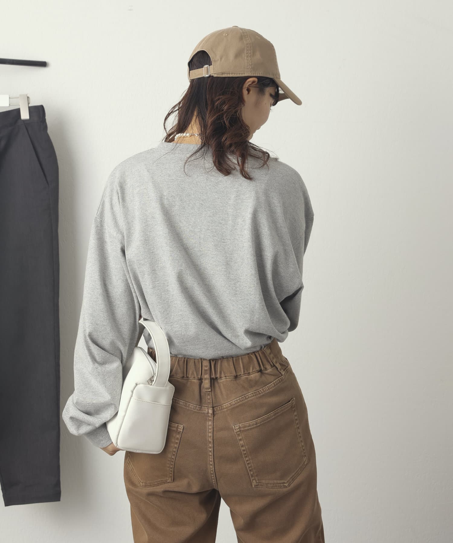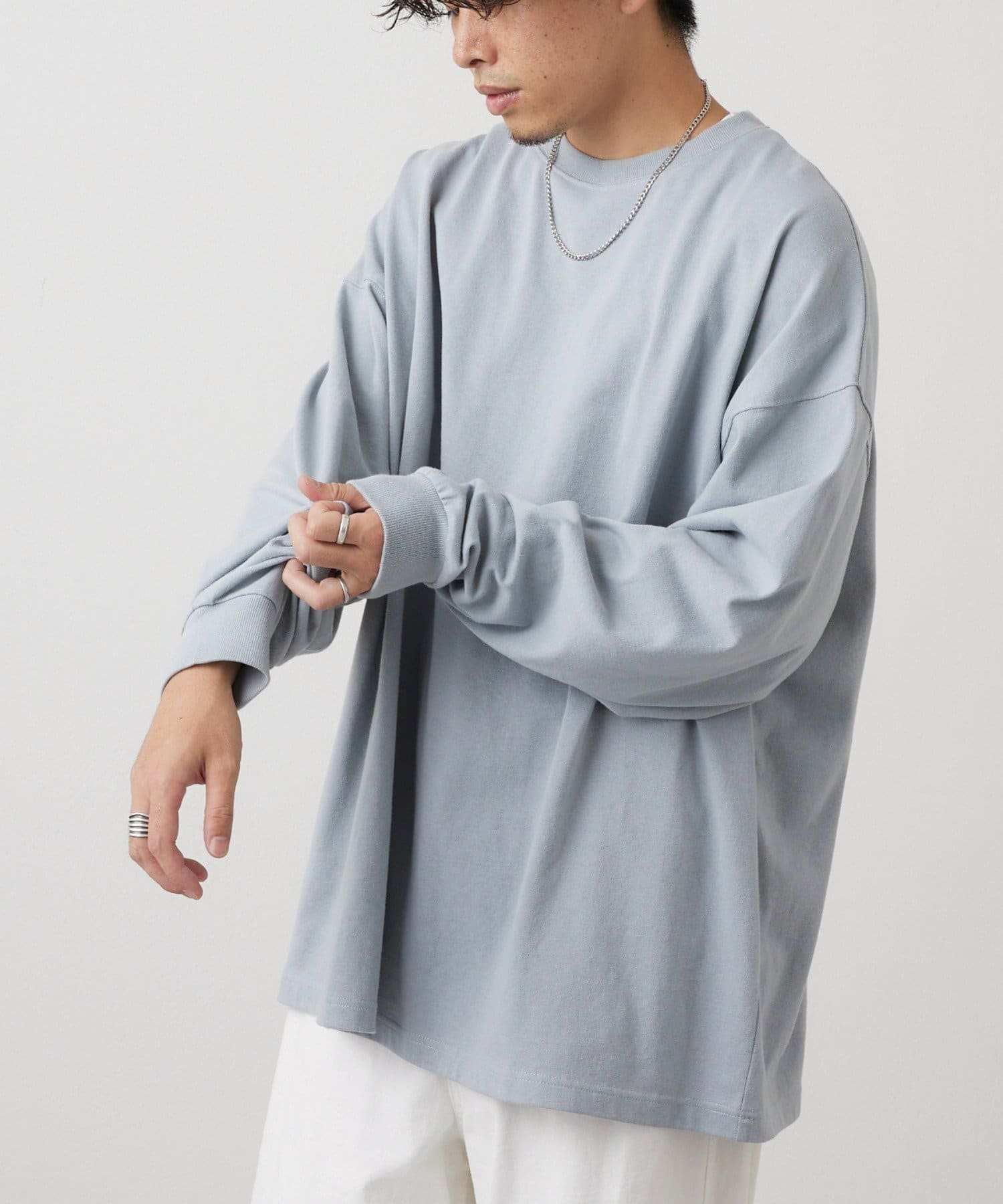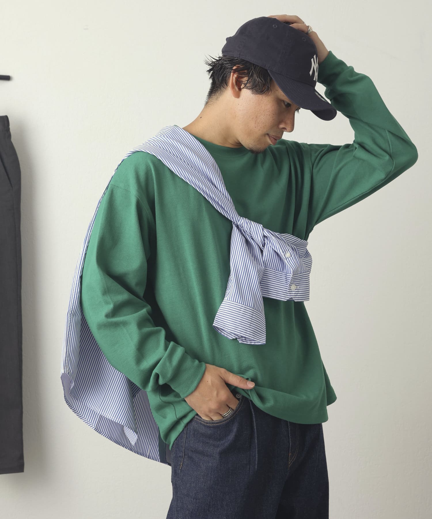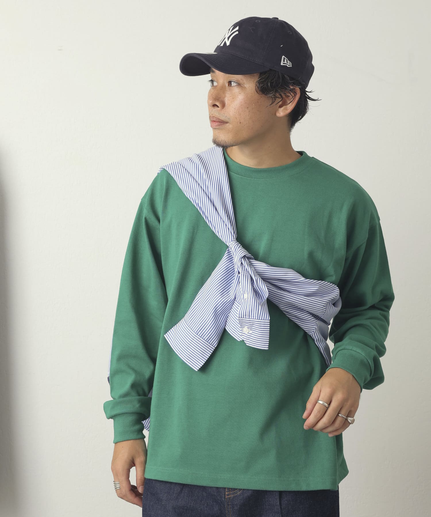 ロンTeeに近い厚すぎない生地なので、インナーでも一枚でも使いやすい万能タイプ。