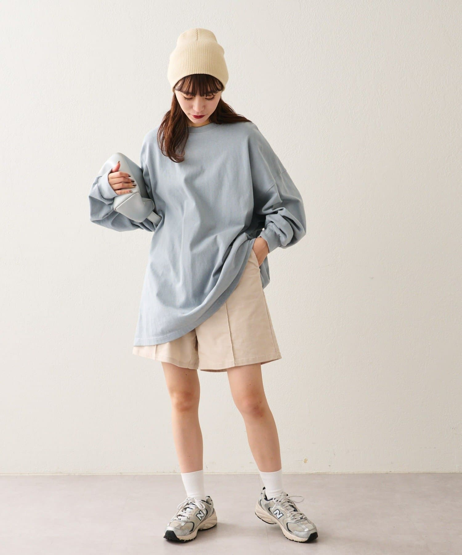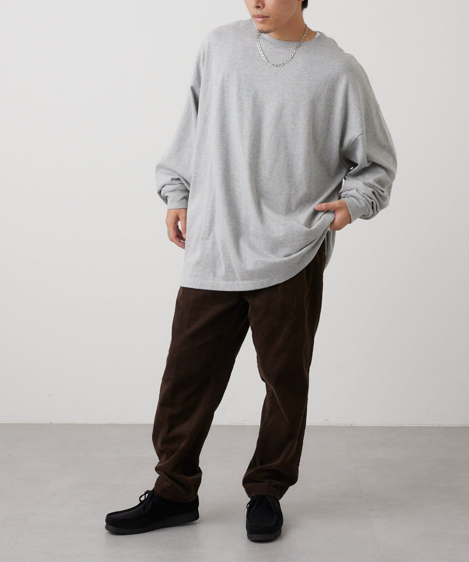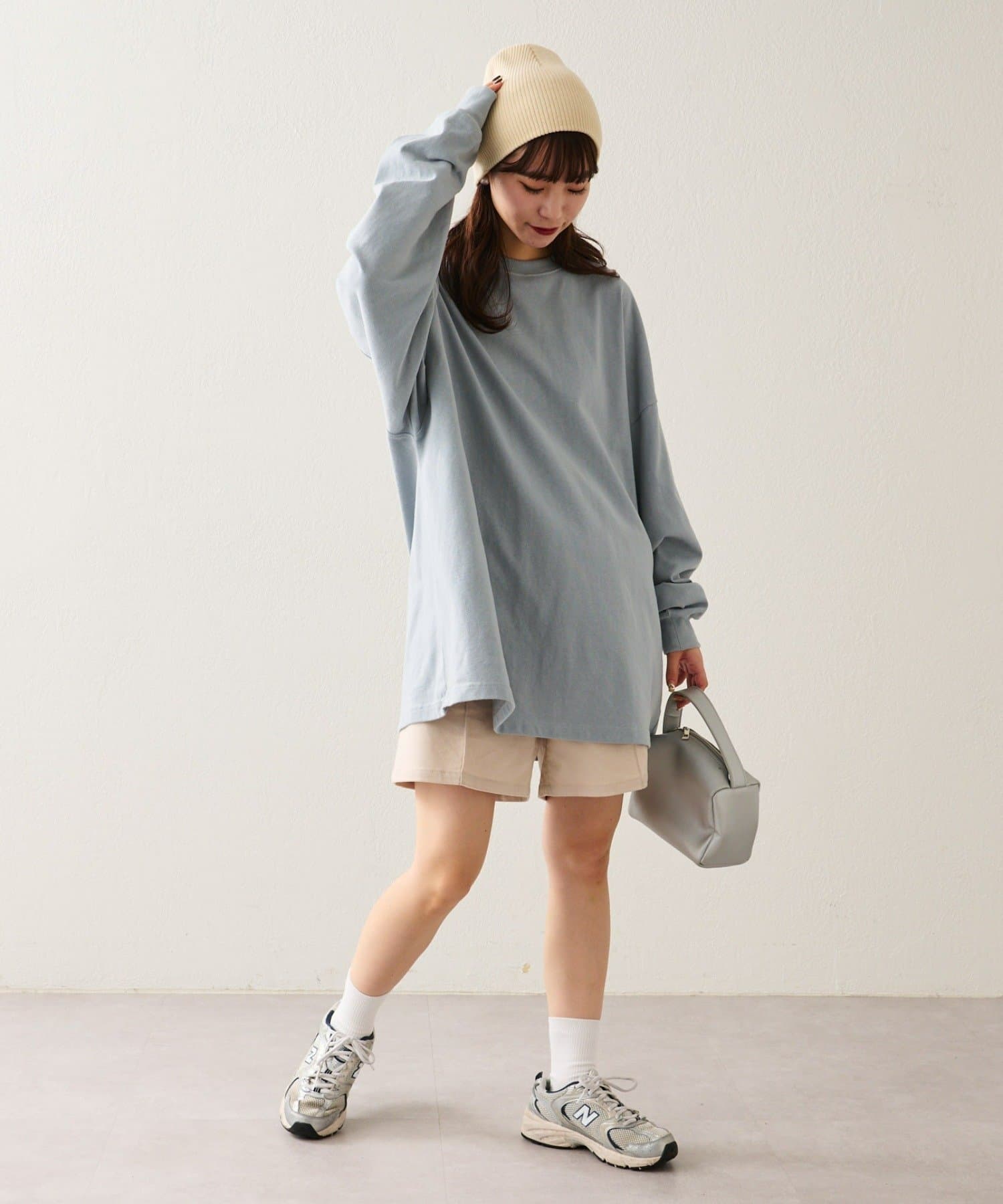 ロンTeeに近い厚すぎない生地なので、インナーでも一枚でも使いやすい万能タイプ。