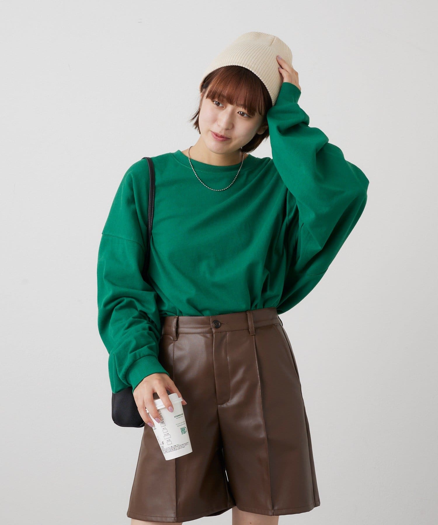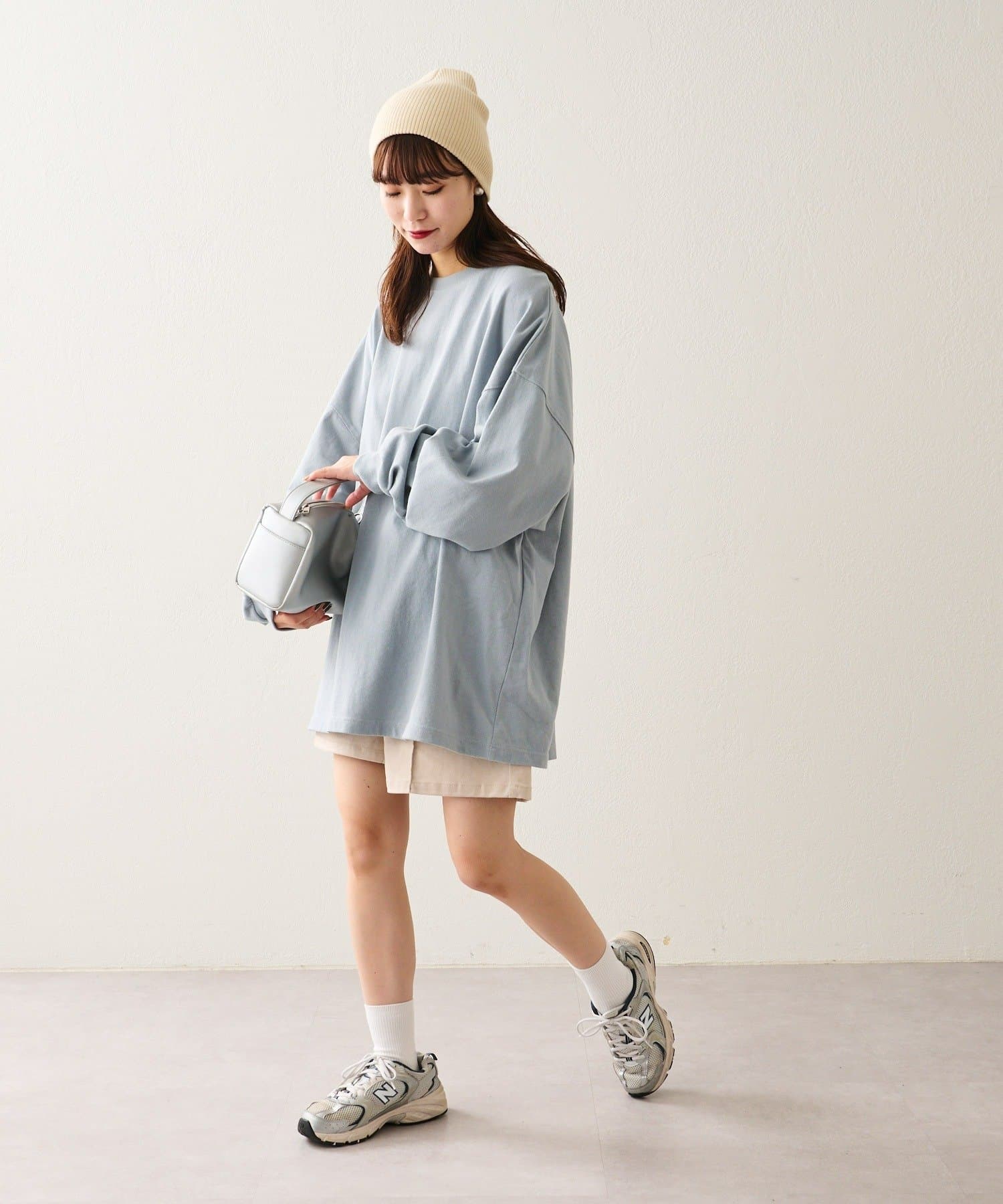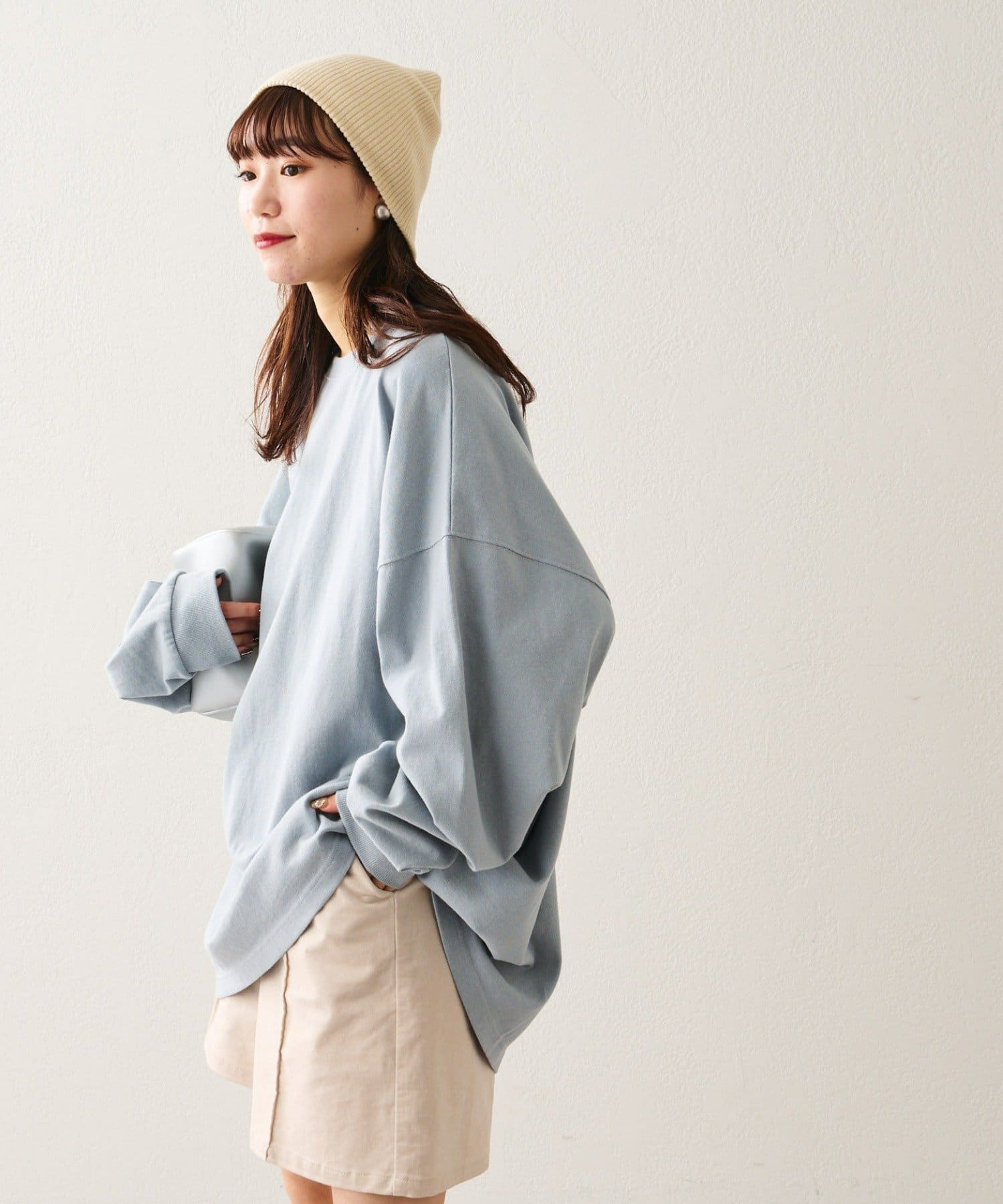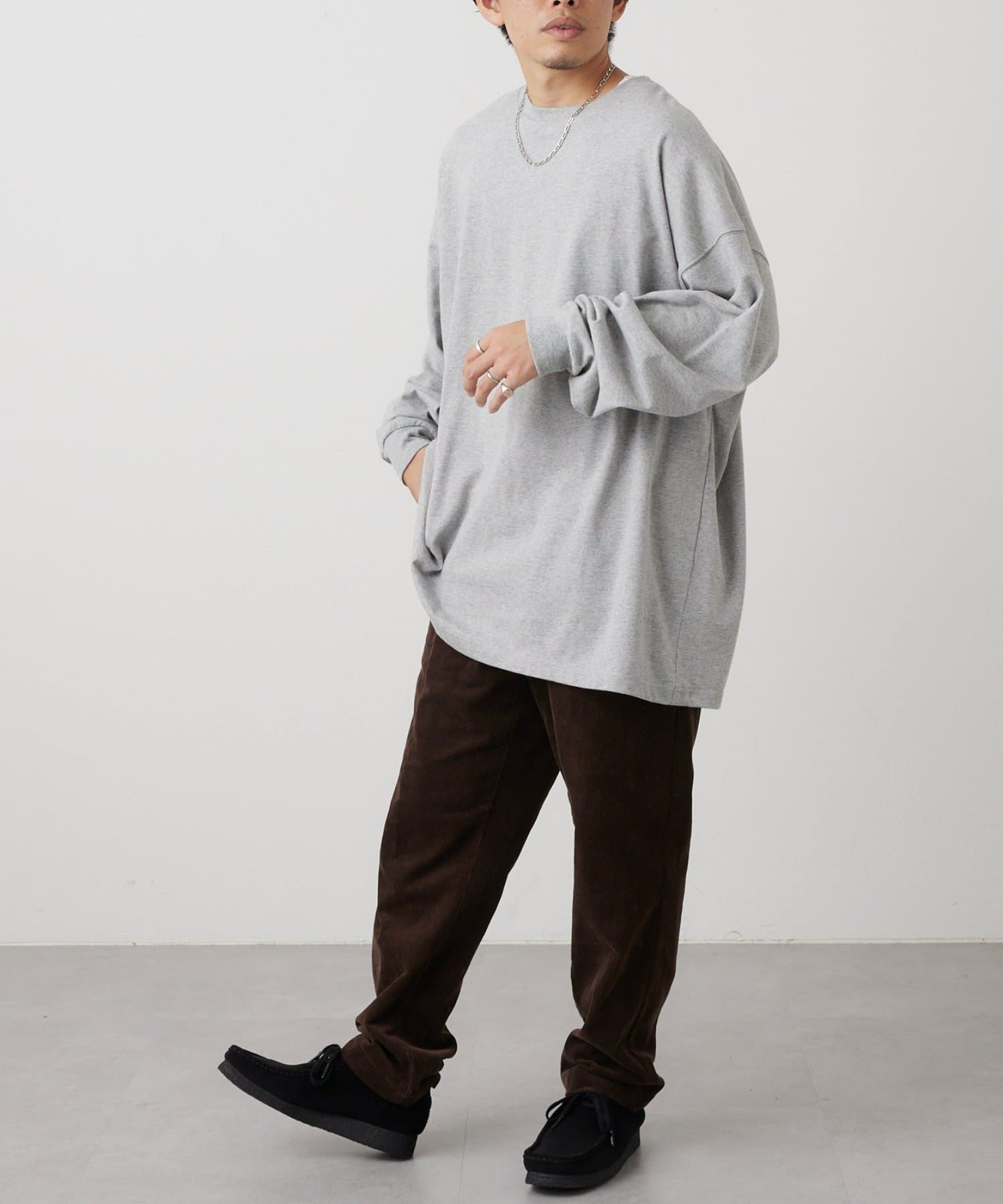ロンTeeに近い厚すぎない生地なので、インナーでも一枚でも使いやすい万能タイプ。