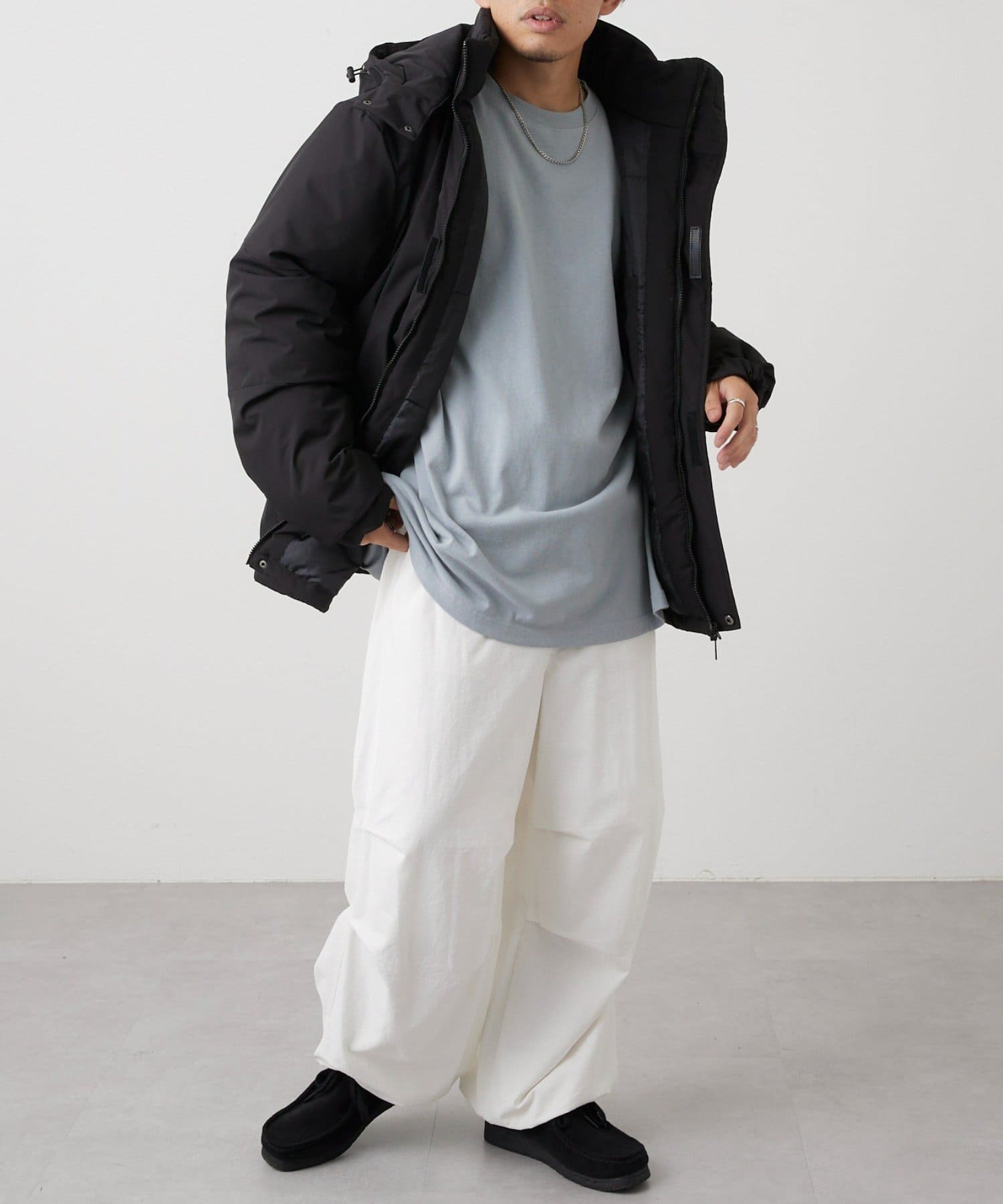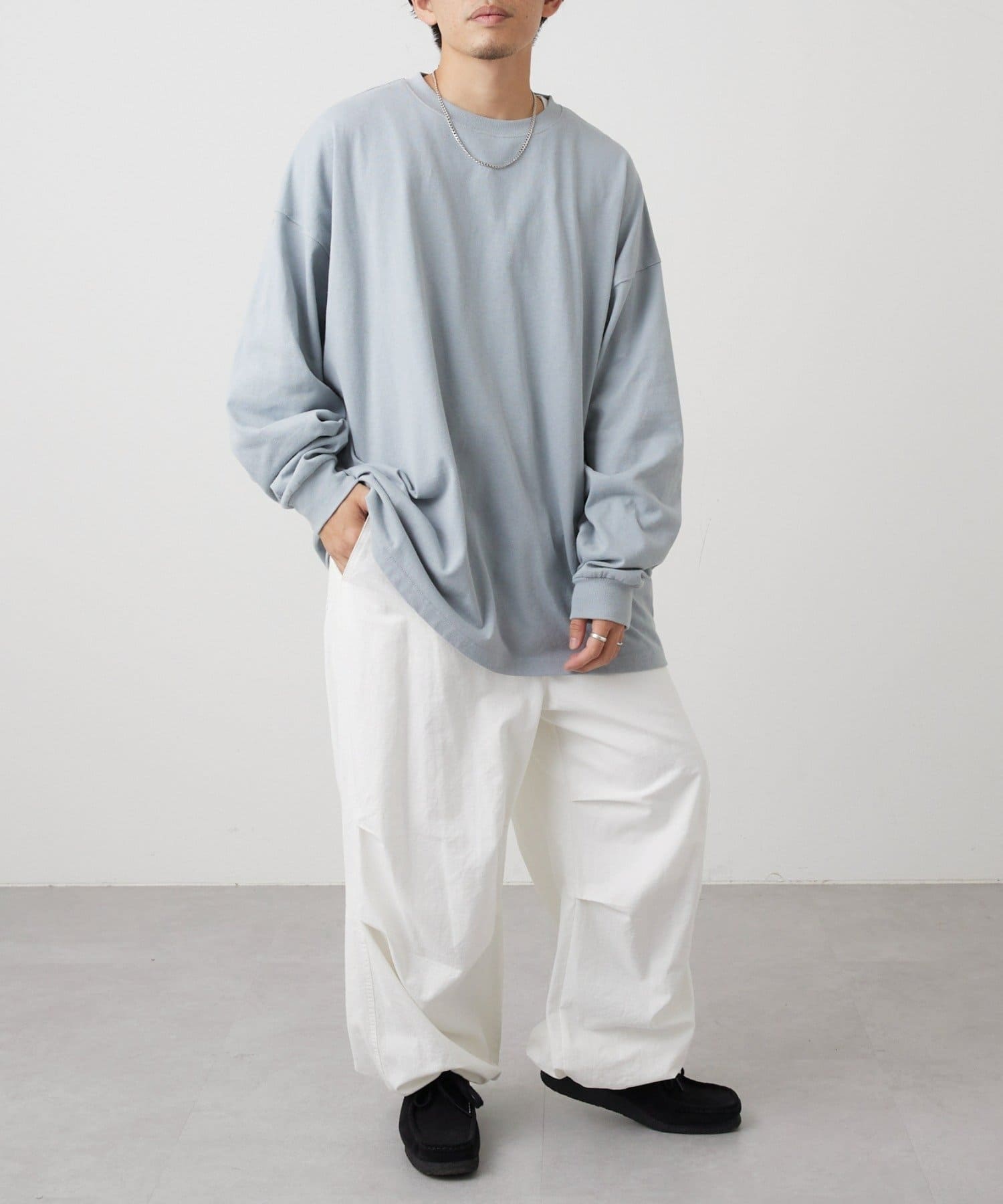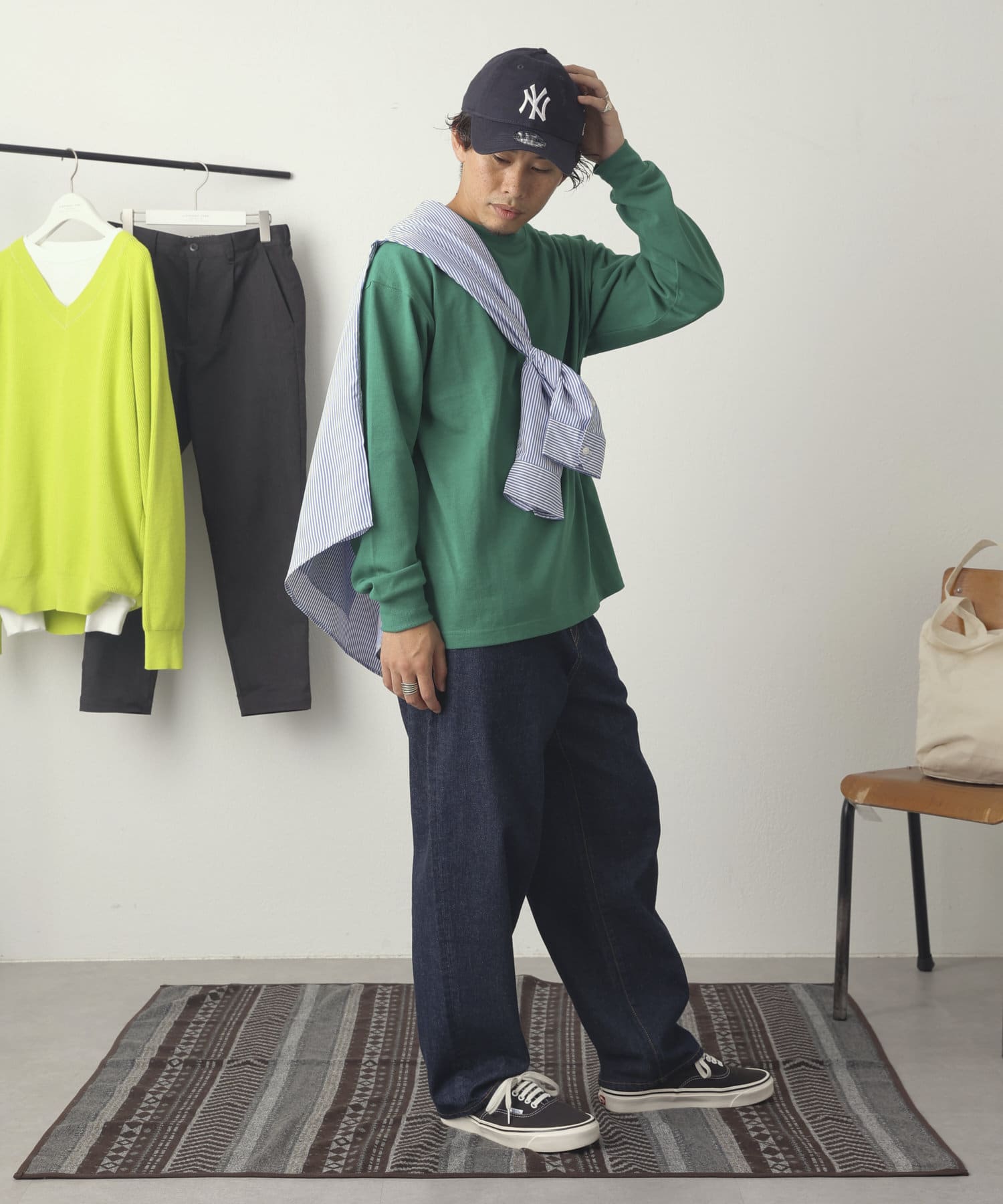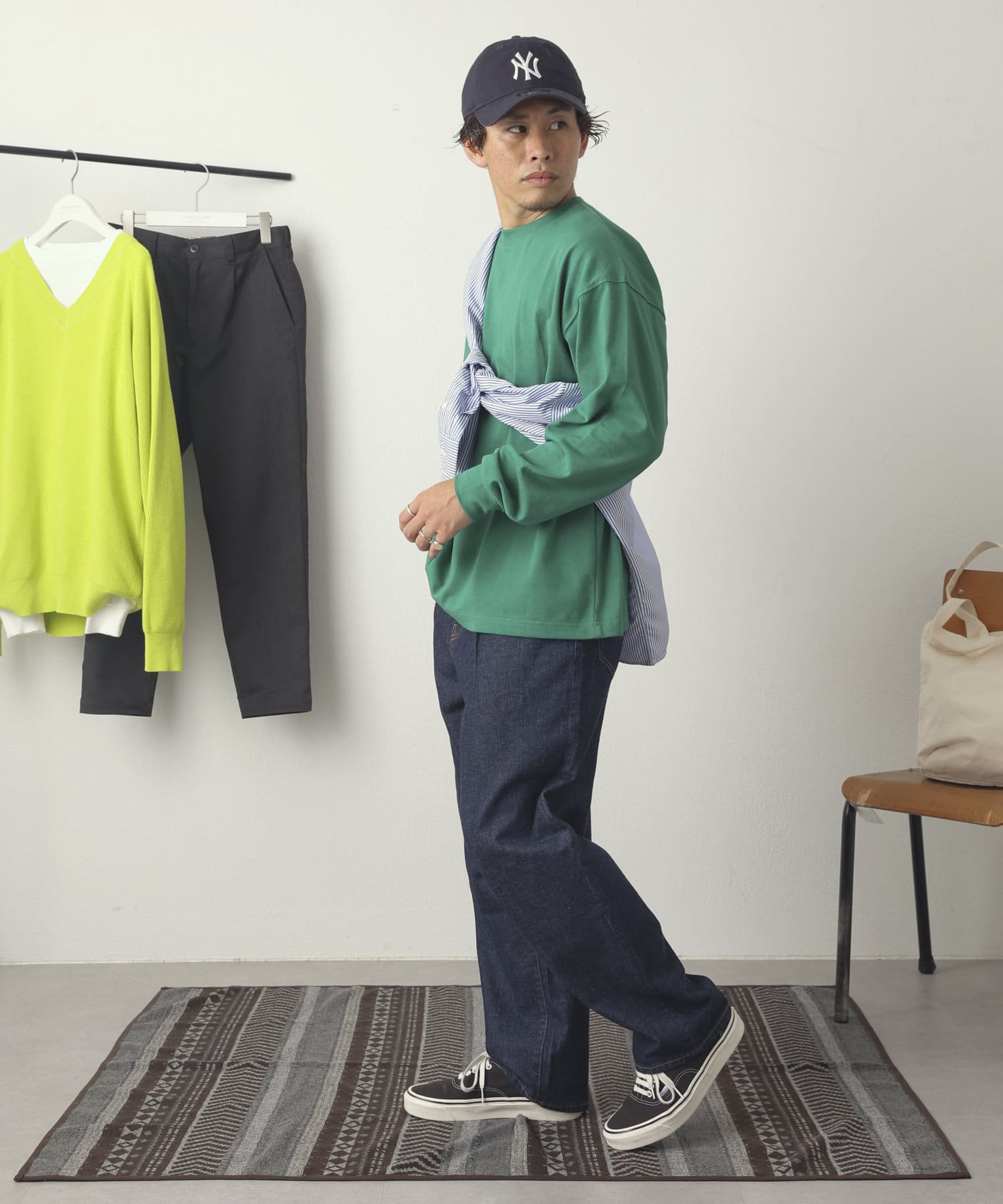 ゆったりとしたシルエットを楽しむデザインは、トレンドのワイドデニムやカーゴパンツとの相性〇