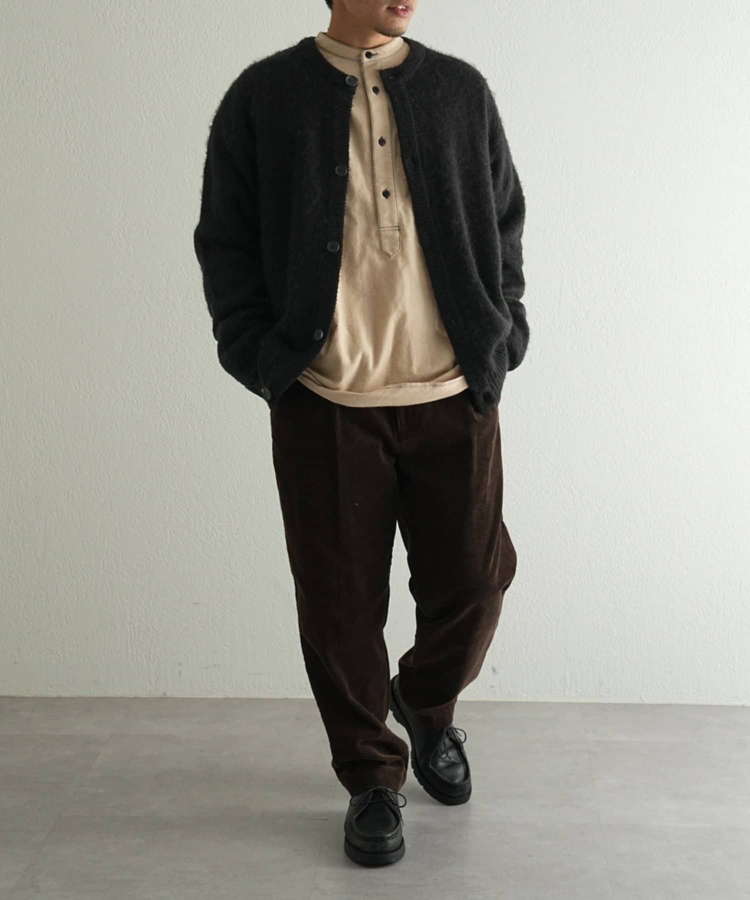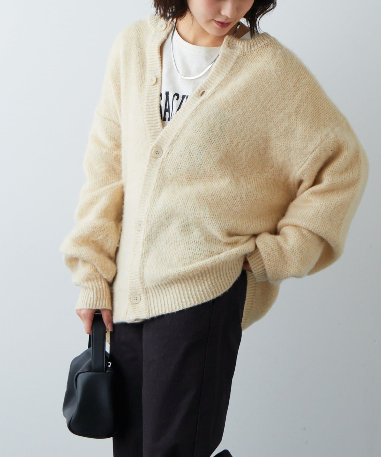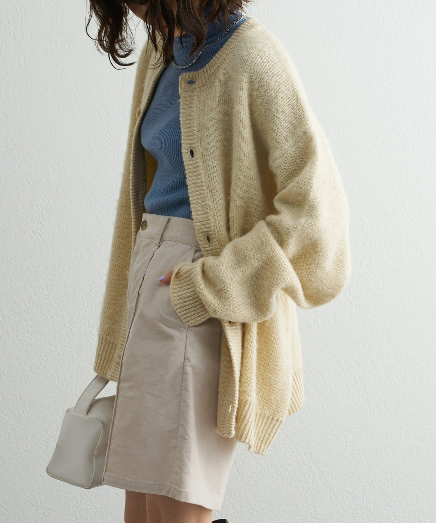 幅広い組み合わせが楽しめるクルーネックカーディガン