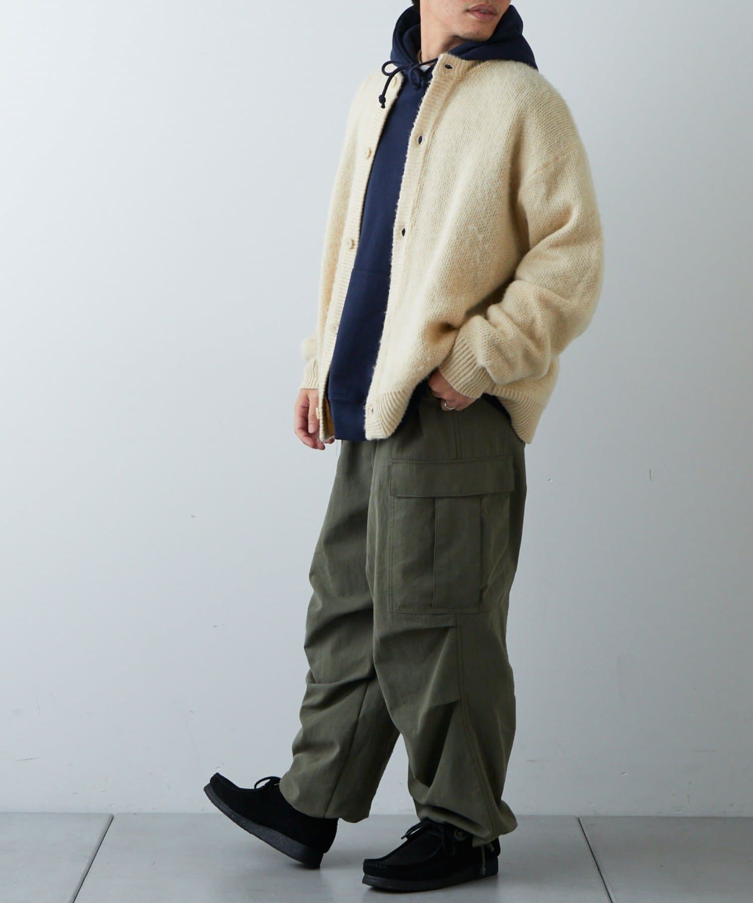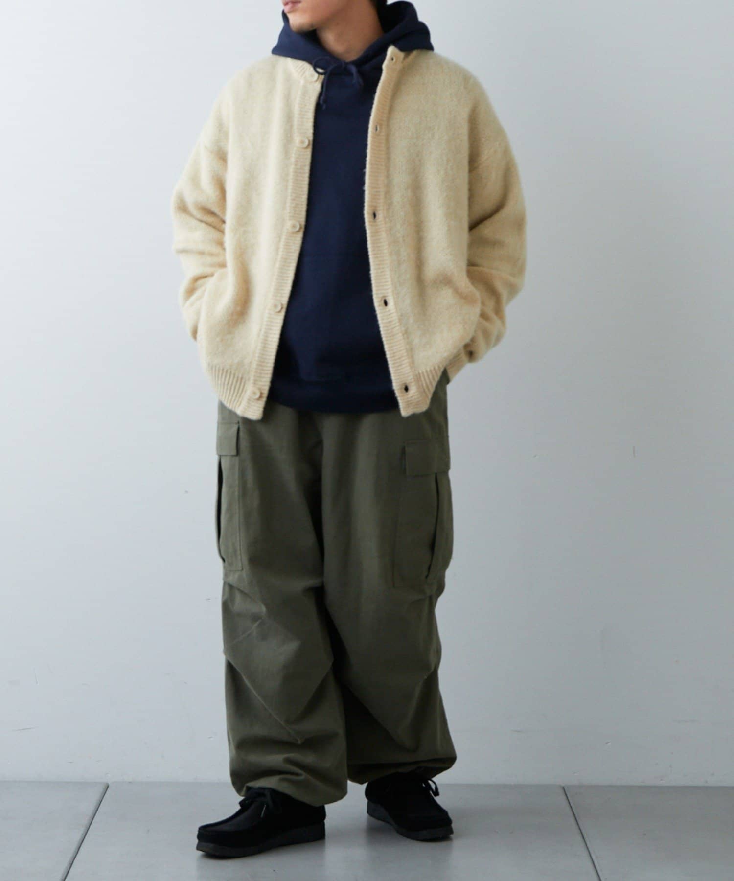 また身幅や袖回りにゆとりがあるので、トレンドのワイドパンツやカーゴパンツとのバランスも取りやすいです。