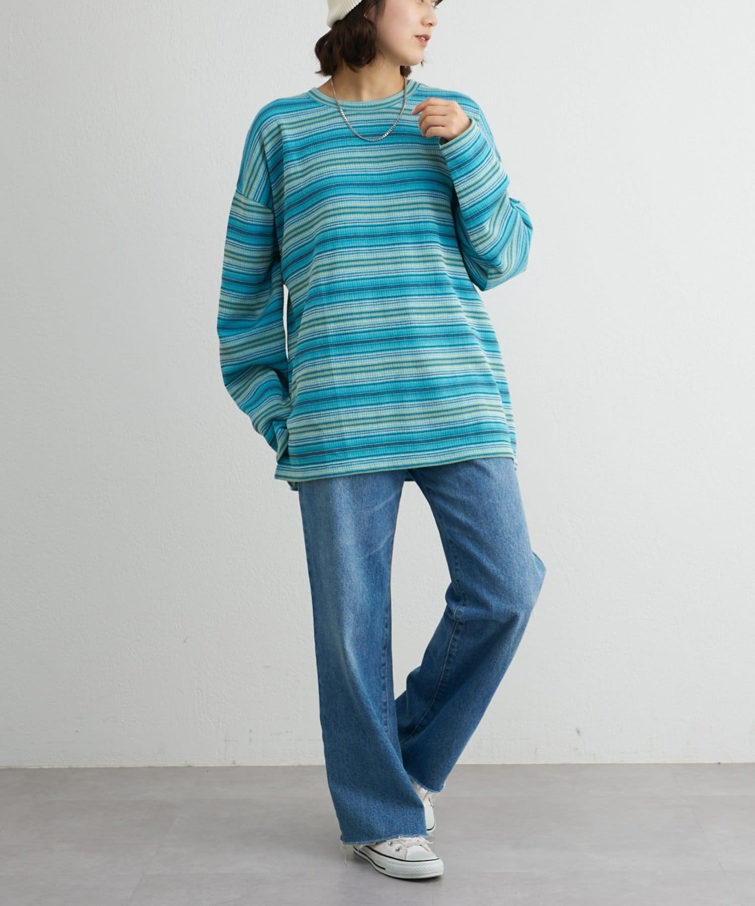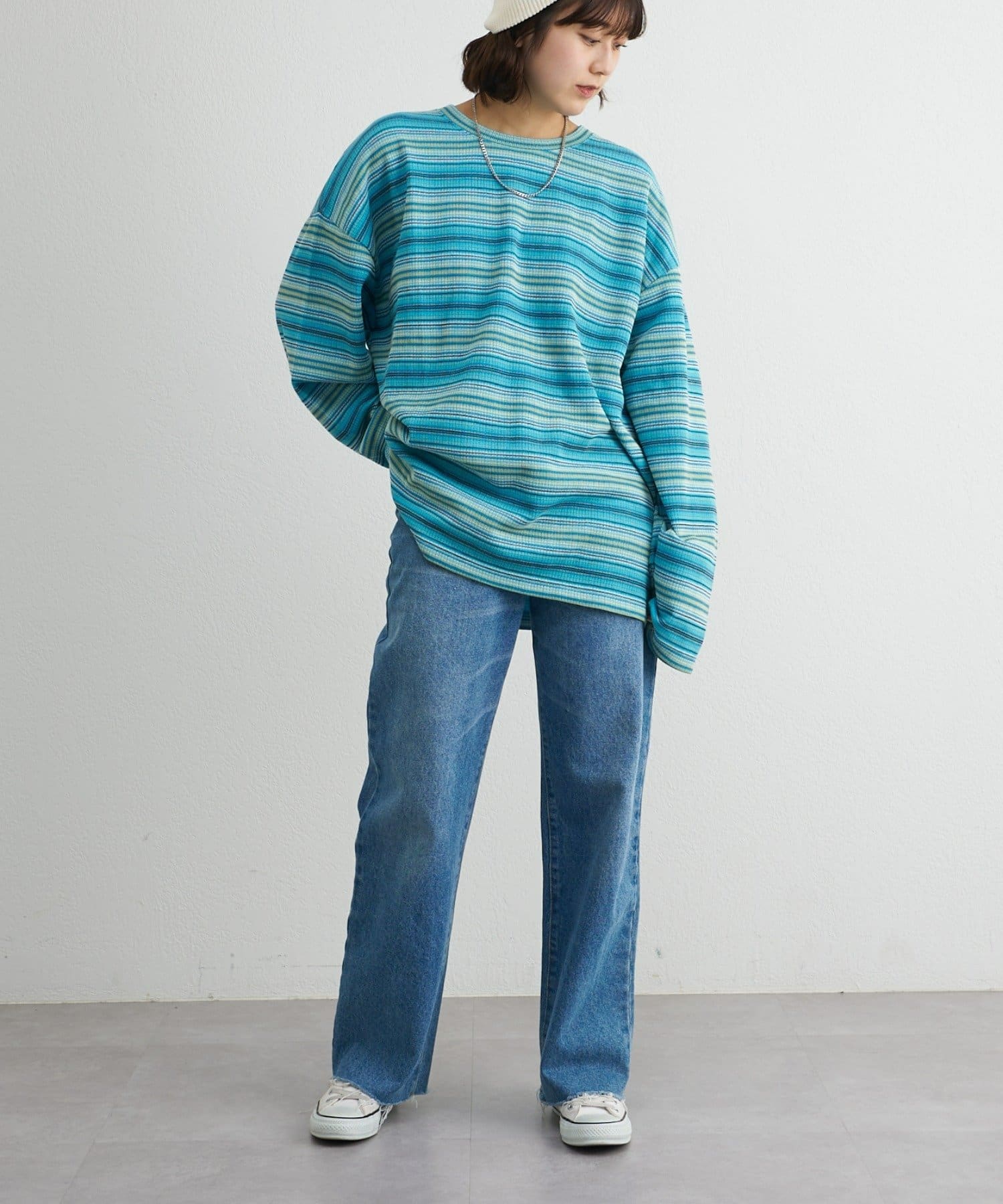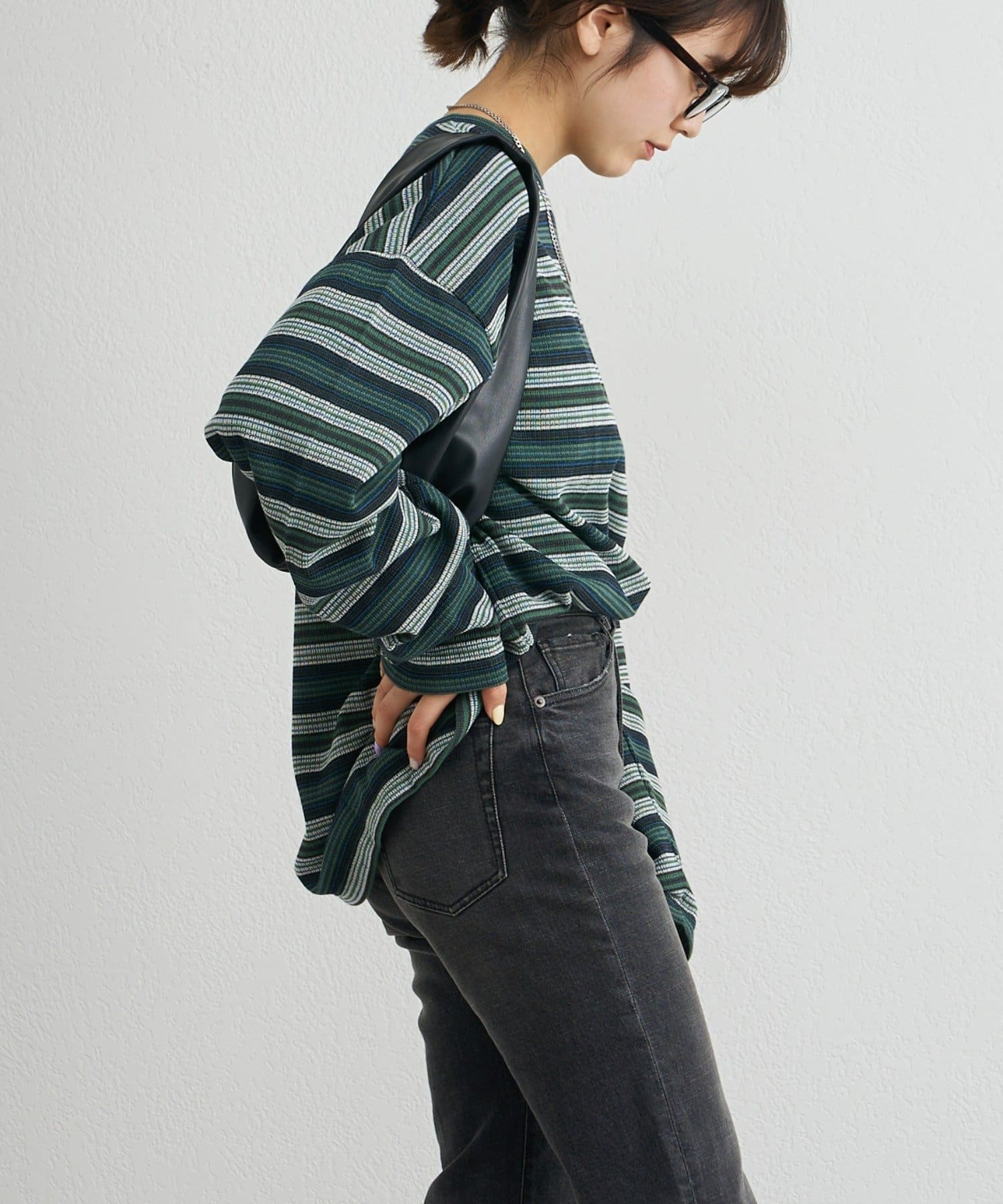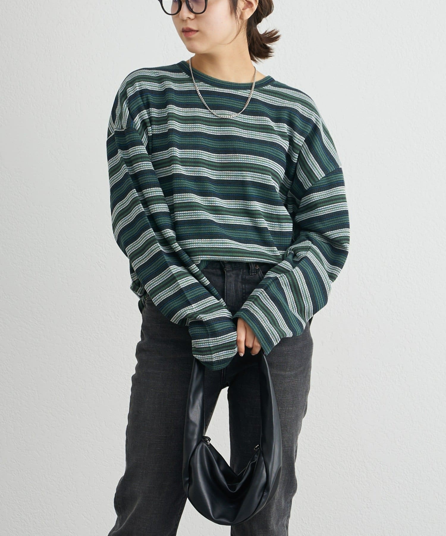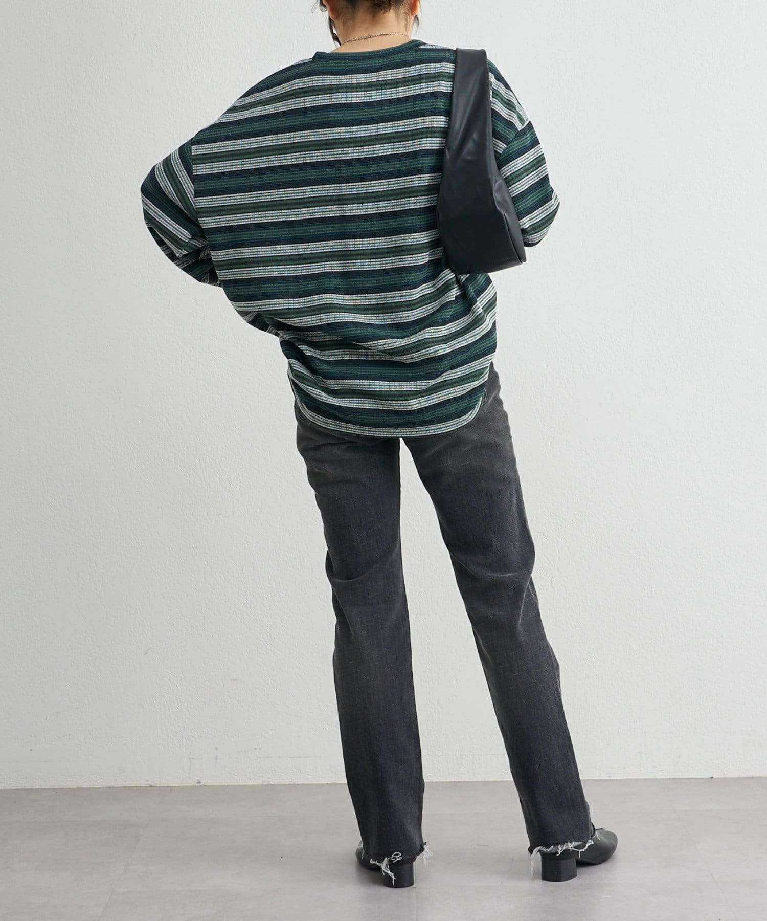 ボーダー柄が目を惹くので、他のアイテムはシンプルに、インナーでも重宝します。