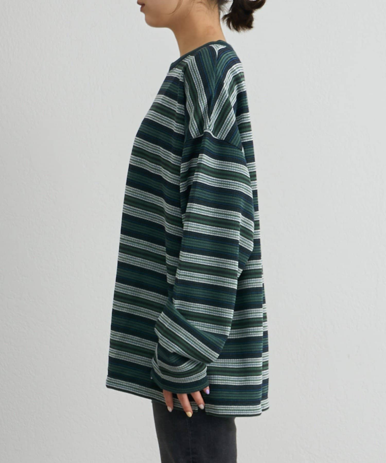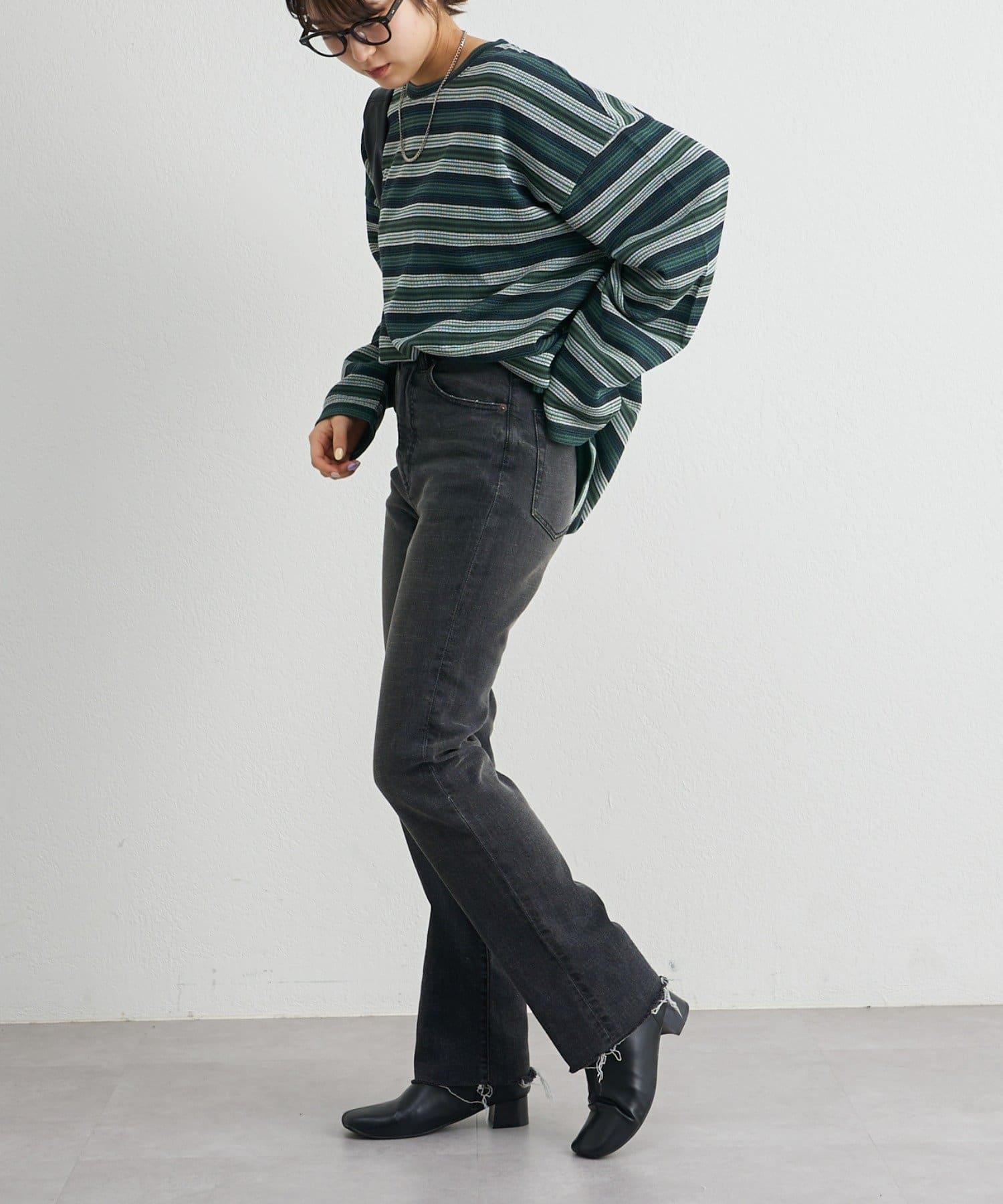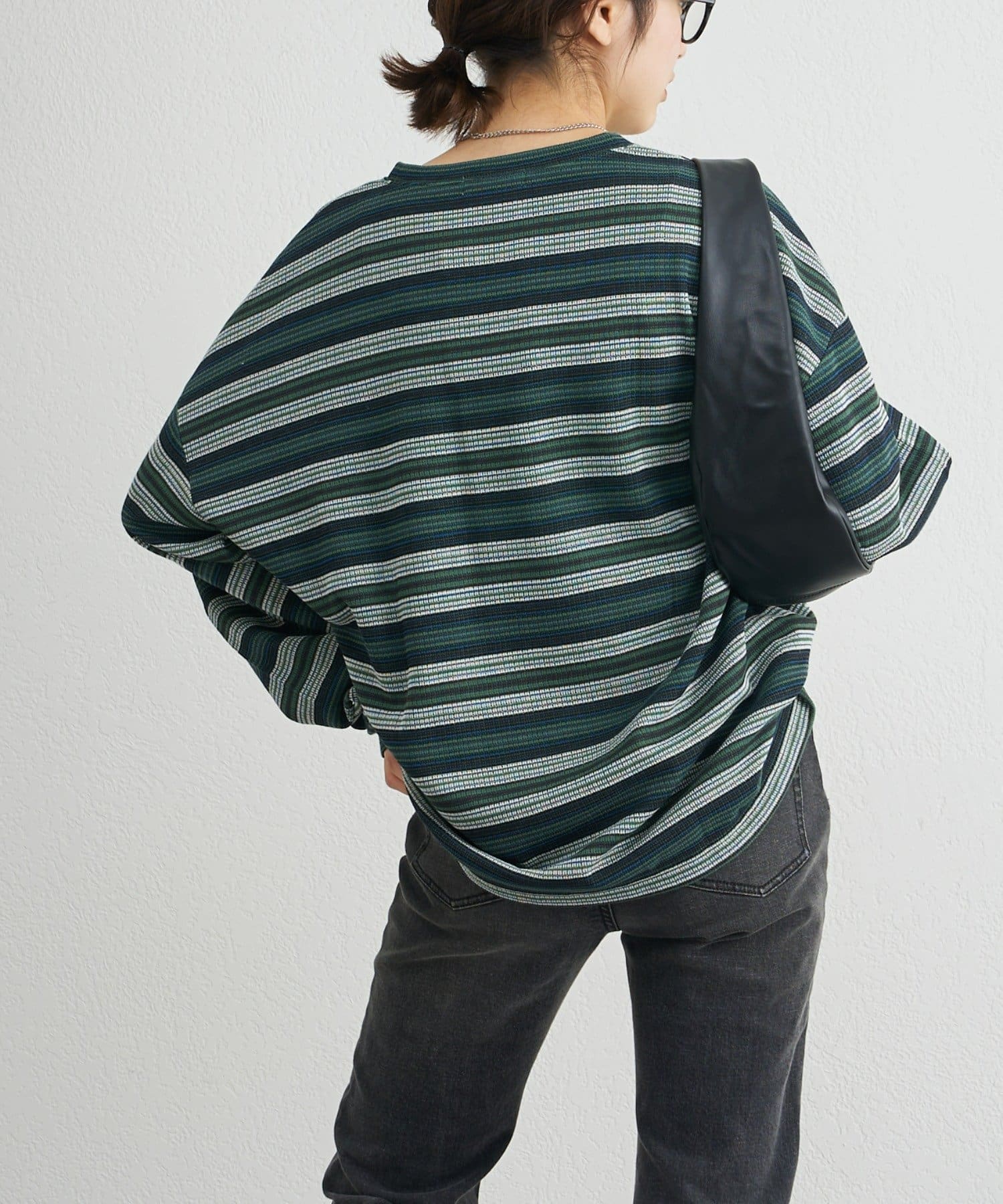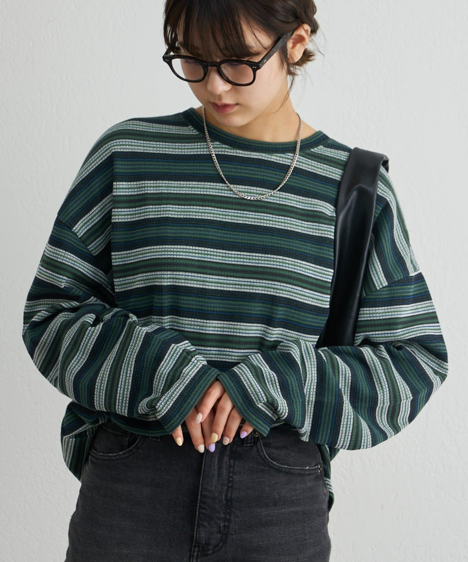 ボーダー柄が目を惹くので、他のアイテムはシンプルに、インナーでも重宝します。