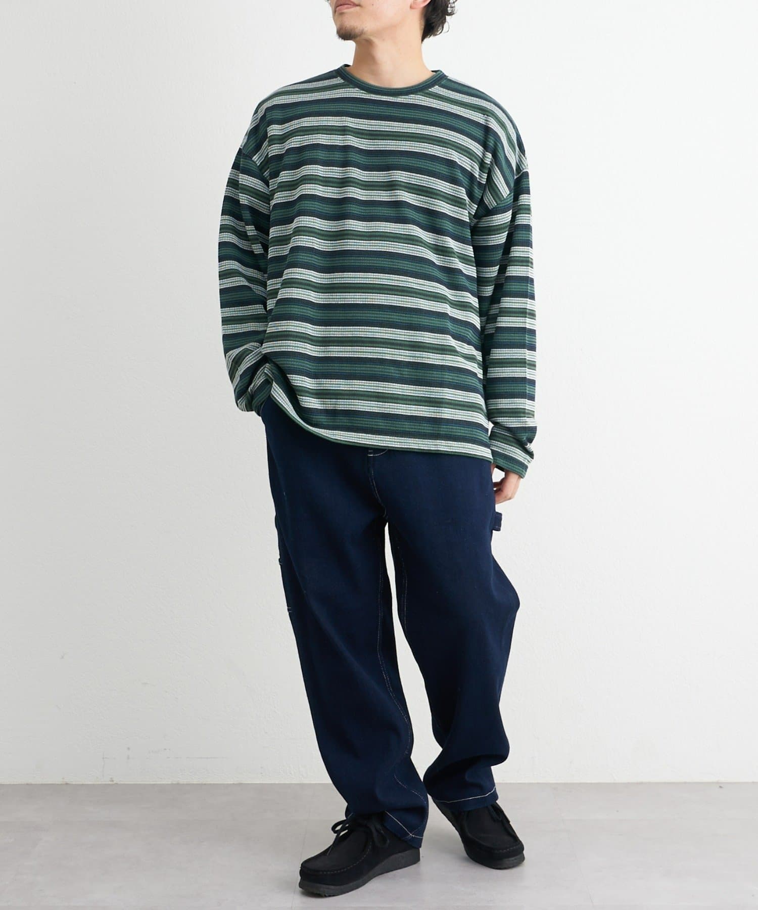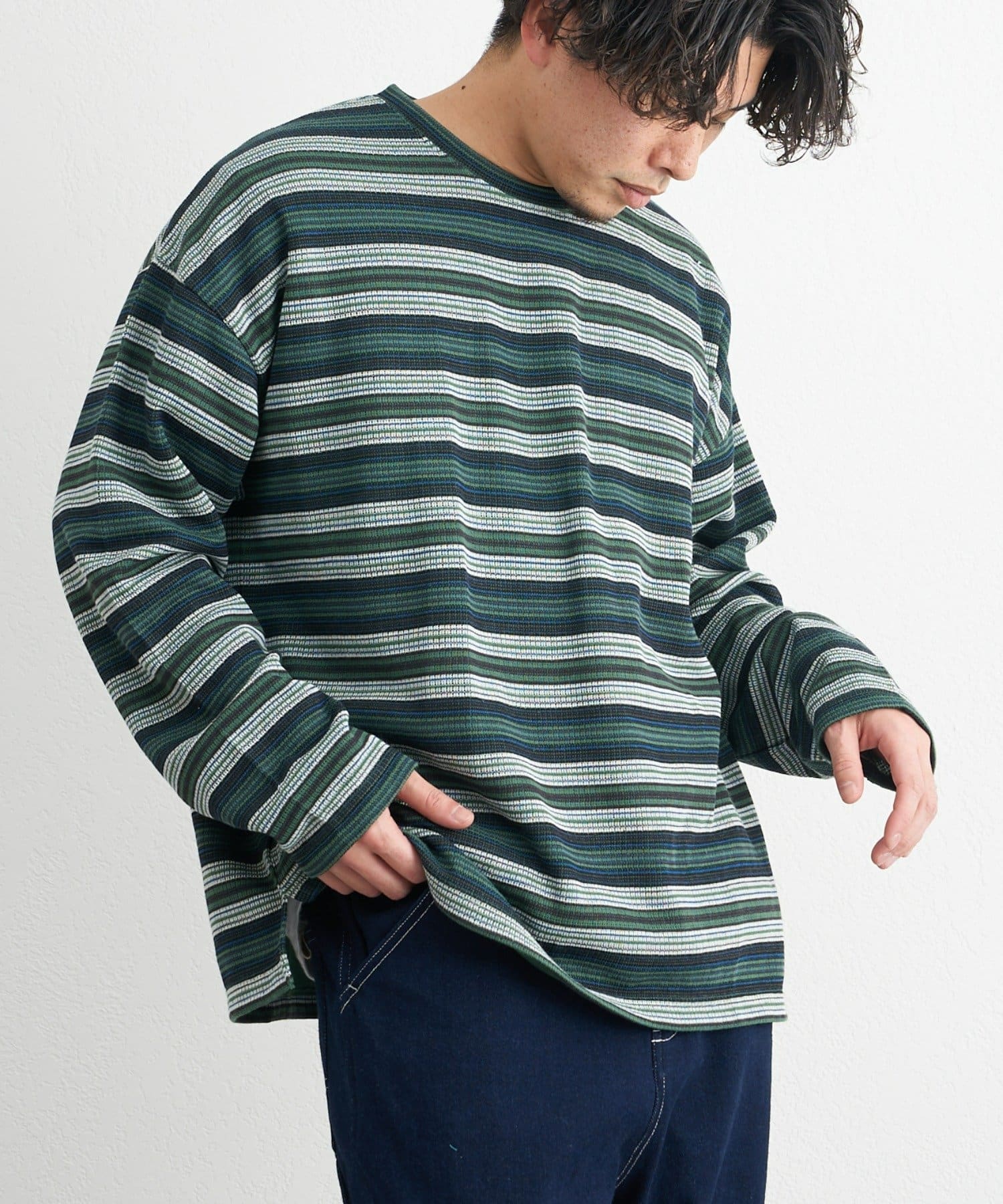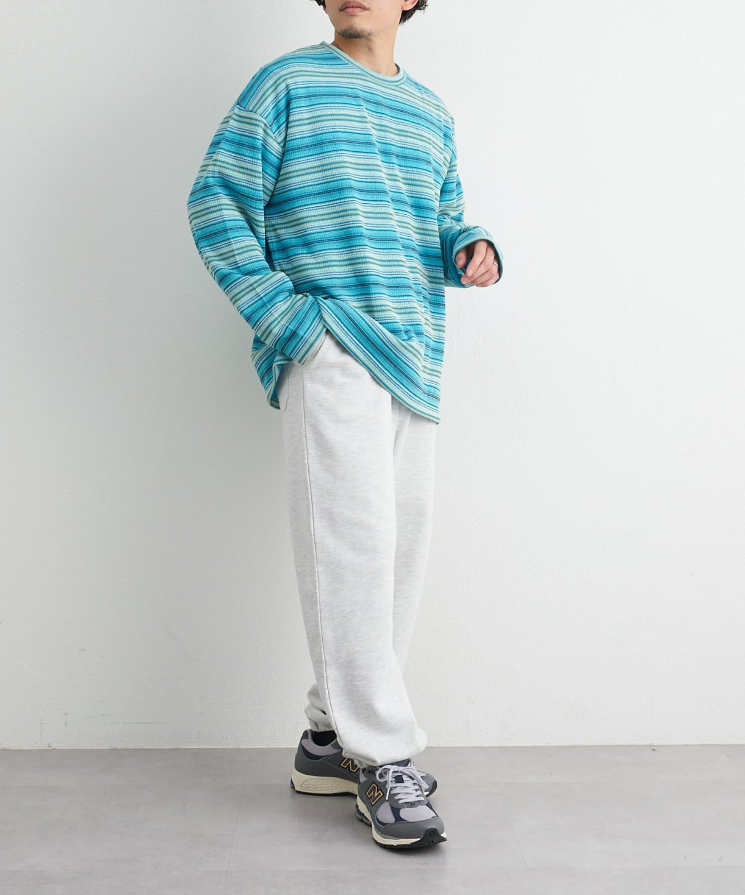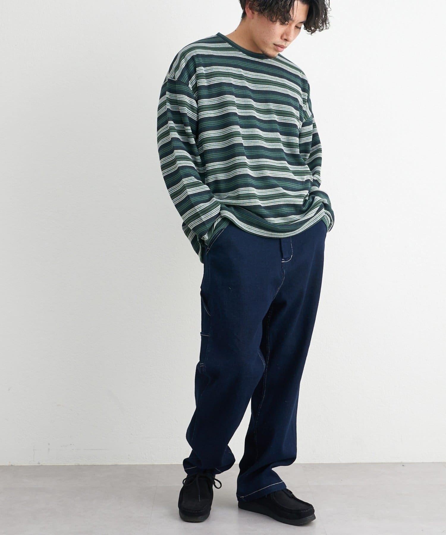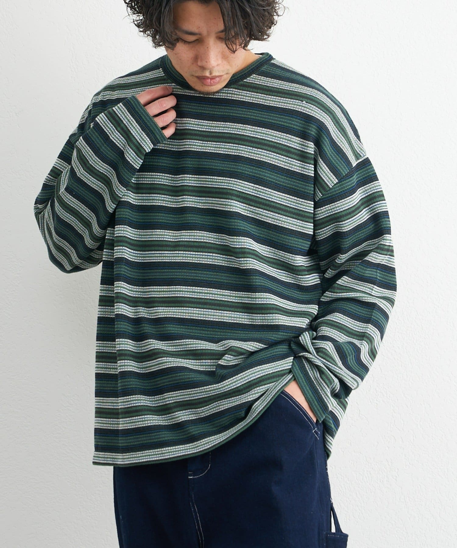 ボーダー柄が目を惹くので、他のアイテムはシンプルに、インナーでも重宝します。