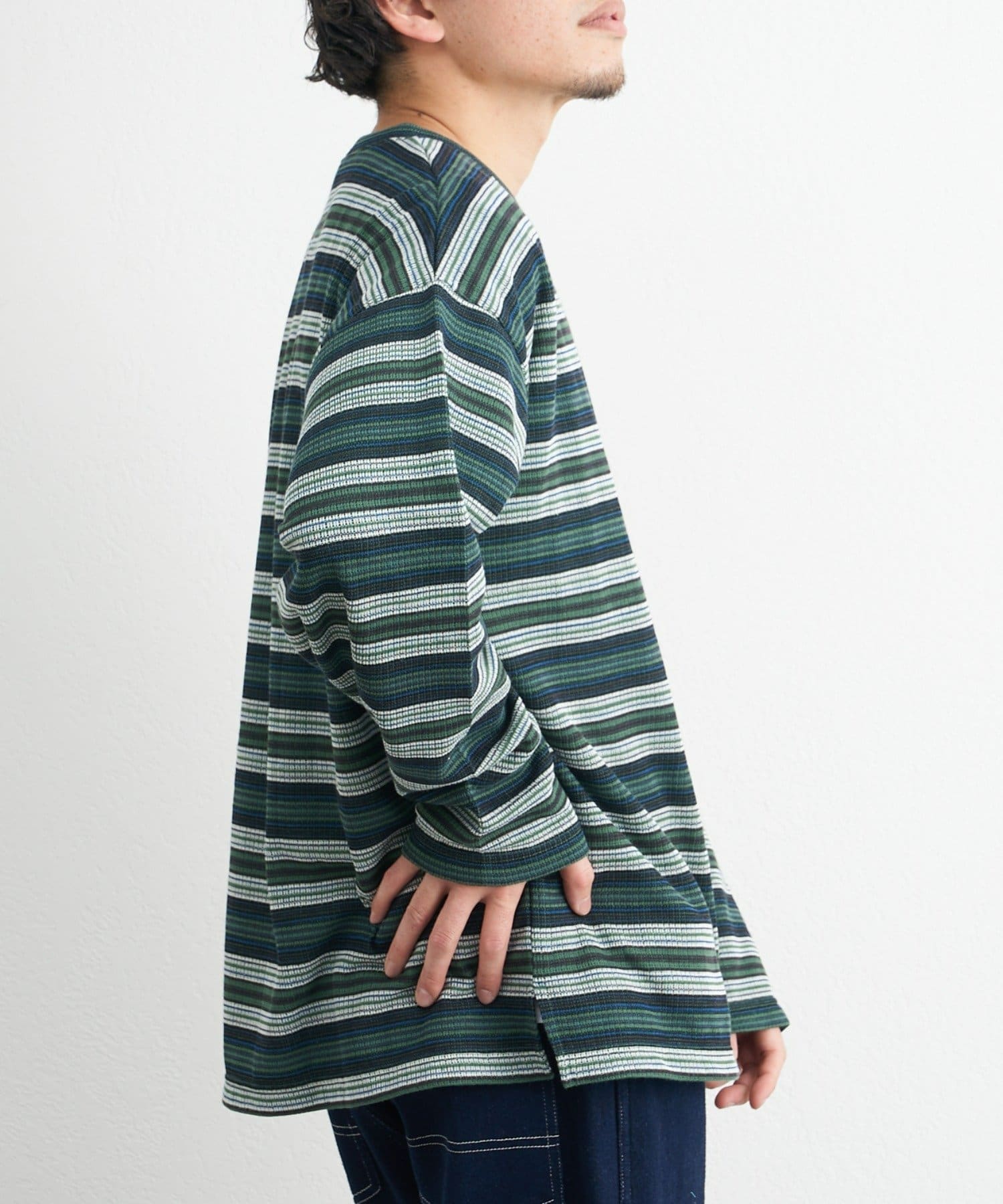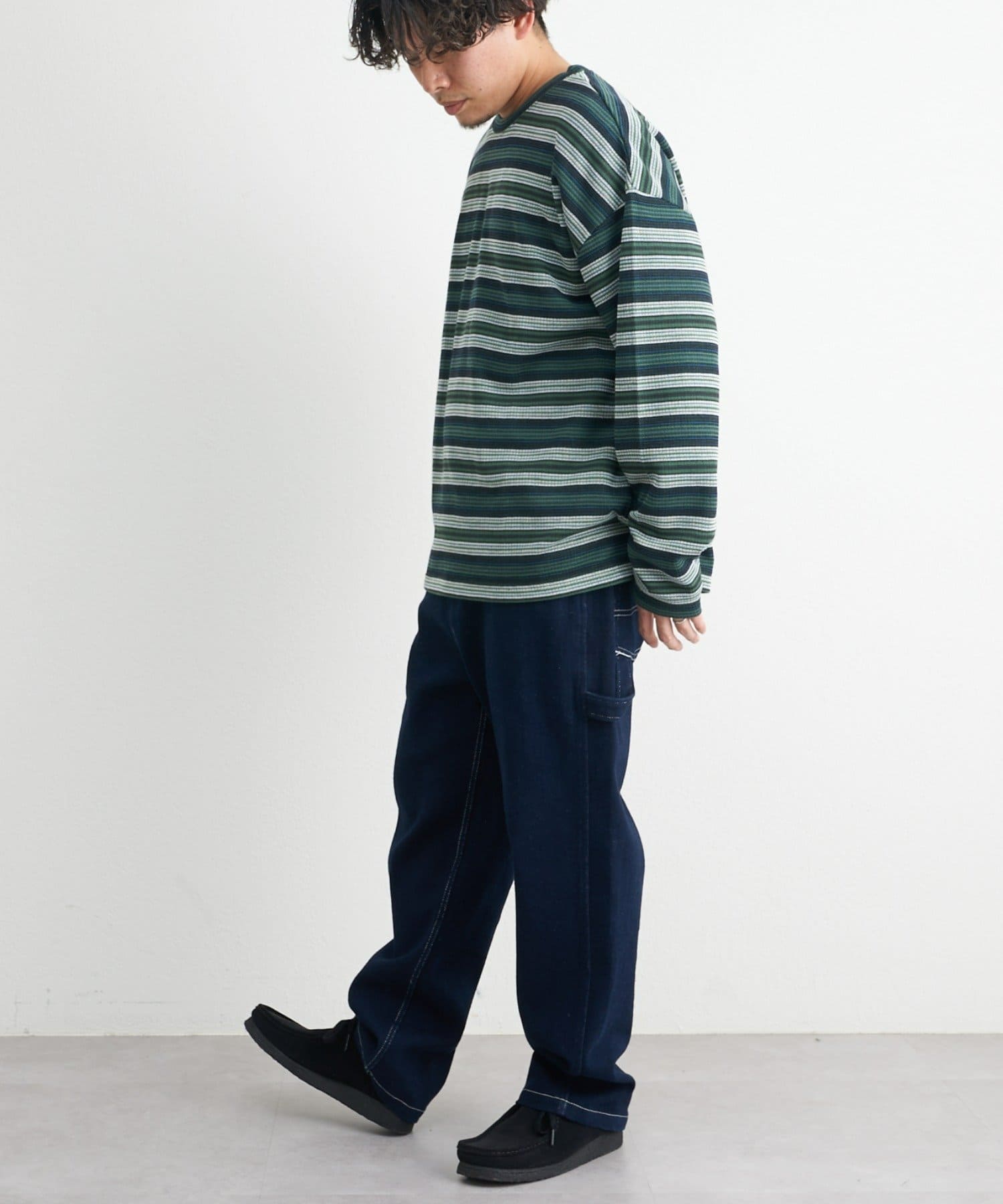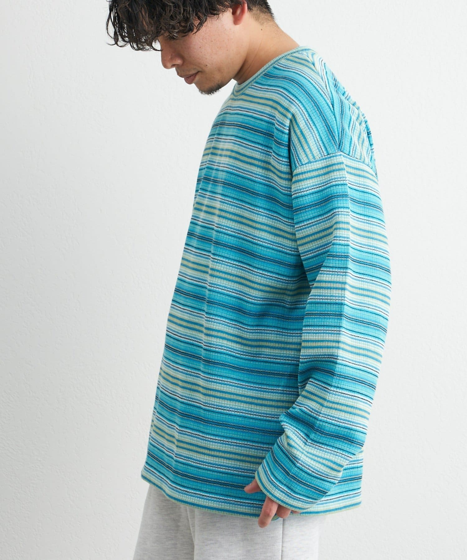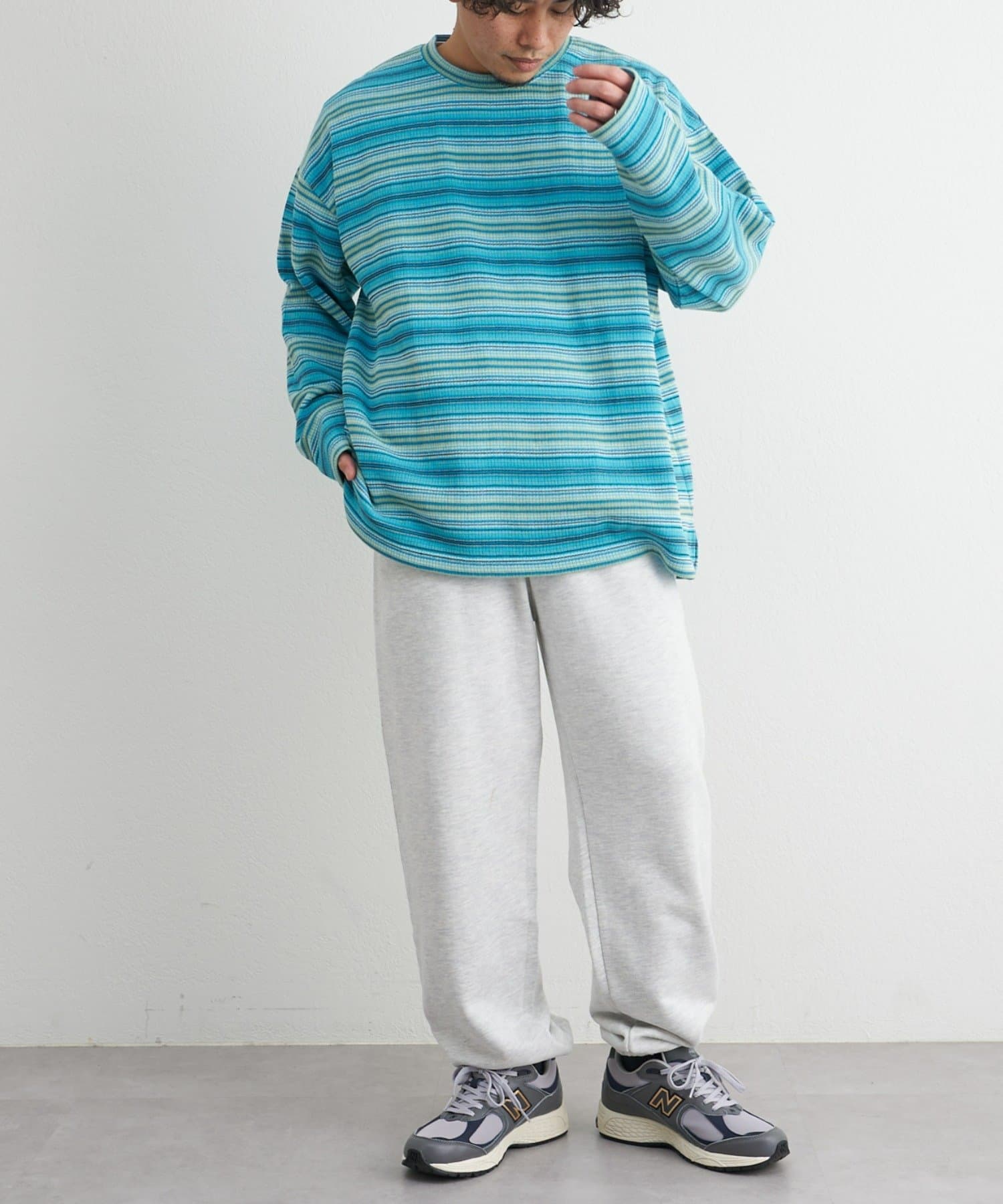 ボーダー柄が目を惹くので、他のアイテムはシンプルに、インナーでも重宝します。