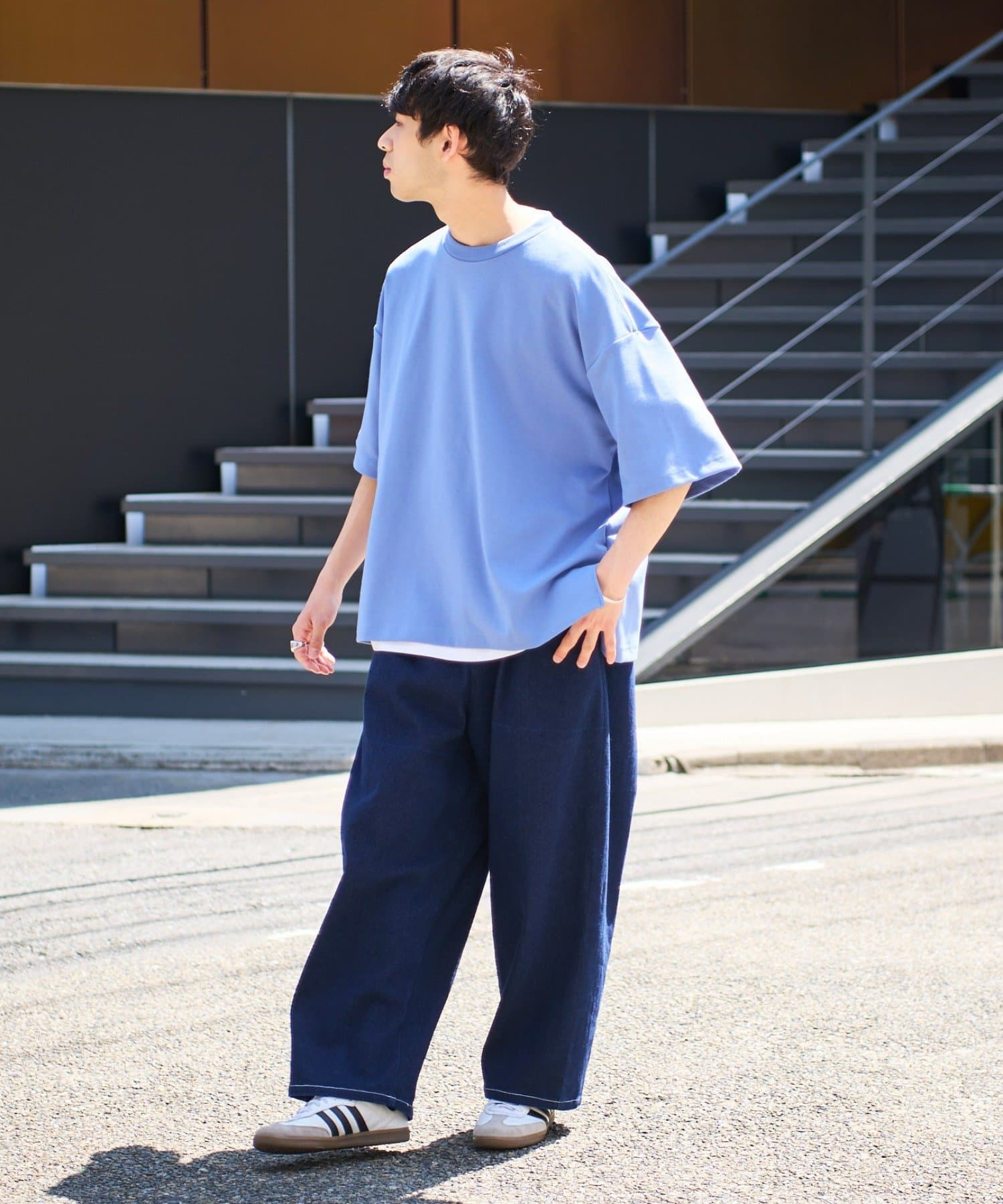 シンプルなつくりなのでカジュアルなデニムからキレイ目なスラックスまで幅広いパンツと