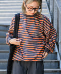 安定のボーダーで珍しい色合いだったので購入しました。オレンジラインがアクセントとなり、意外となんでも合うので重宝してます。生地もしっかりしてて大きめなので着やすいです。
