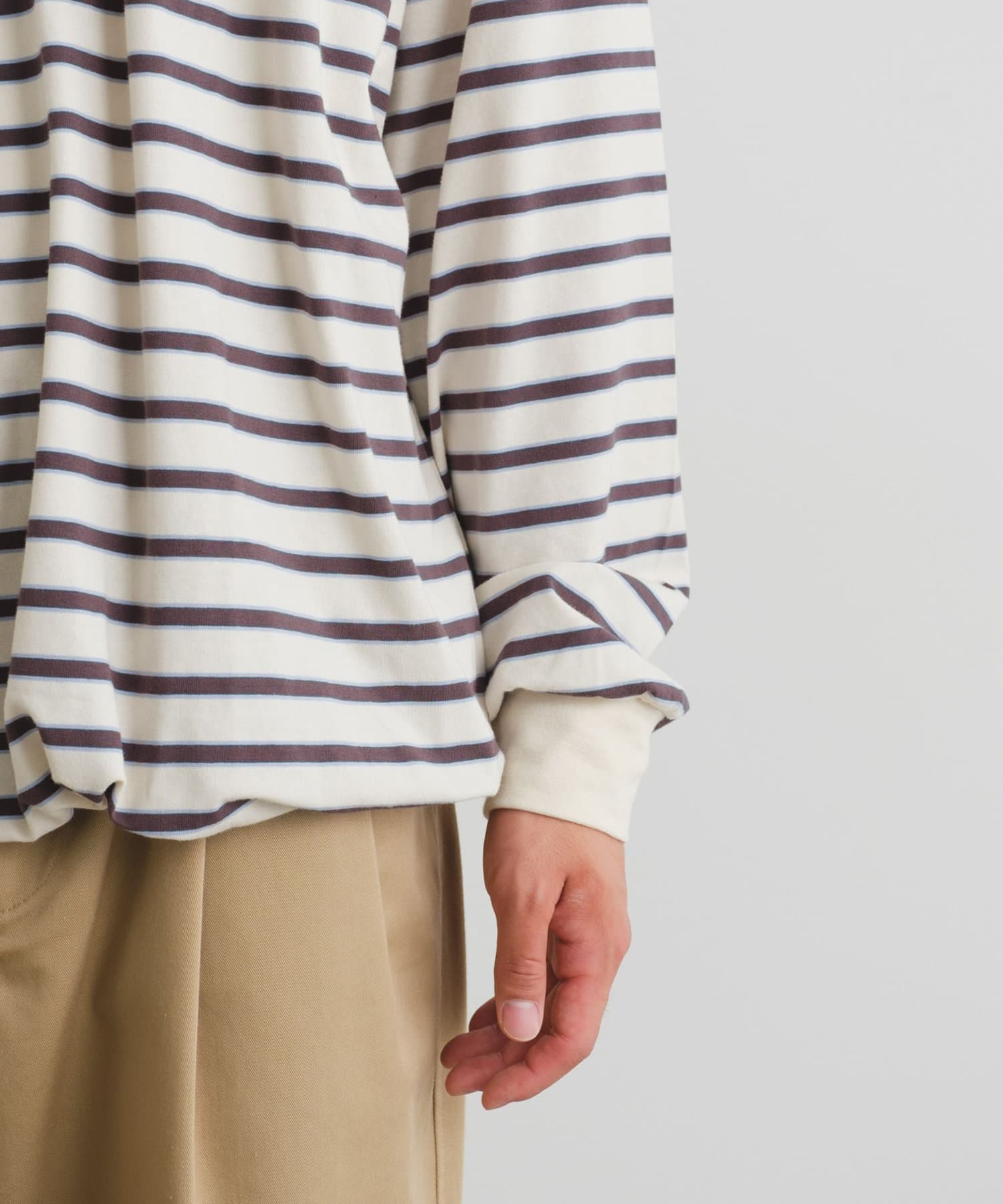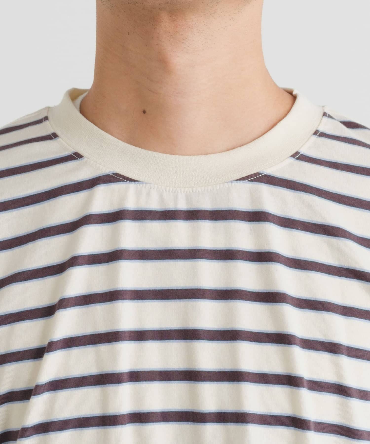 安定のボーダーですが細いブルーラインがあるのでアクセントになります。一枚でもインナーでも着れるので合わせやすいです。真冬でもセーターの中に着るつもりです。