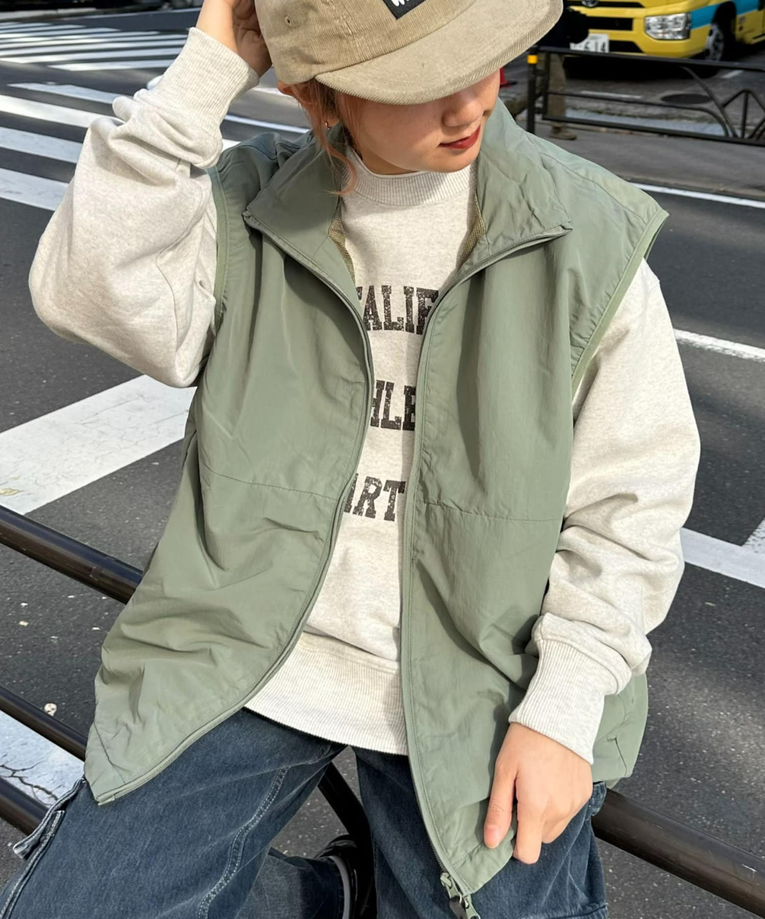 羽織るだけでトレンド感のあるナイロンベスト!