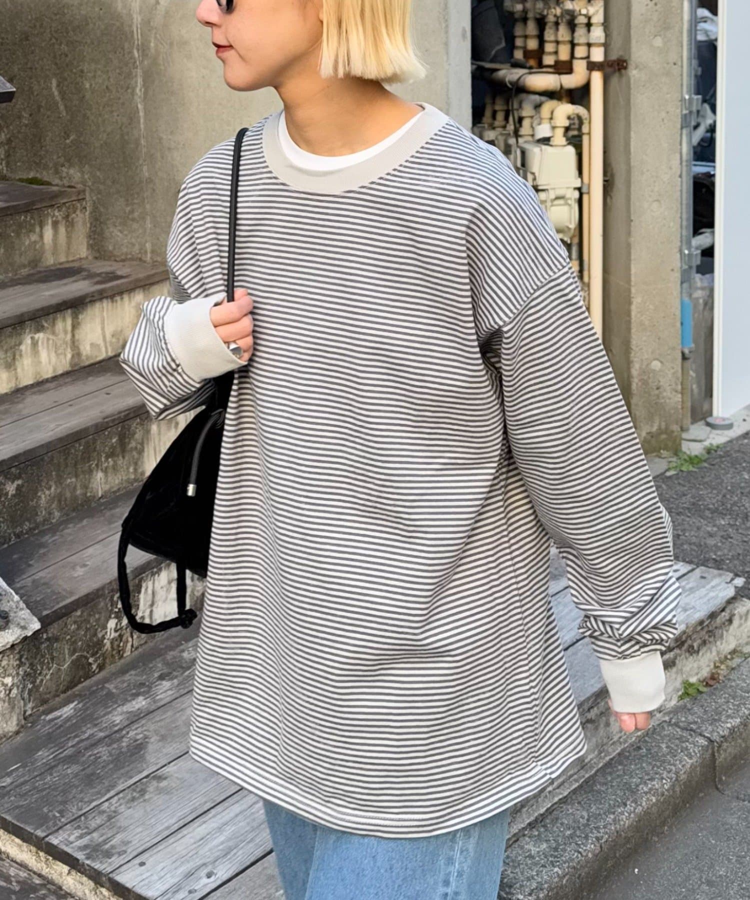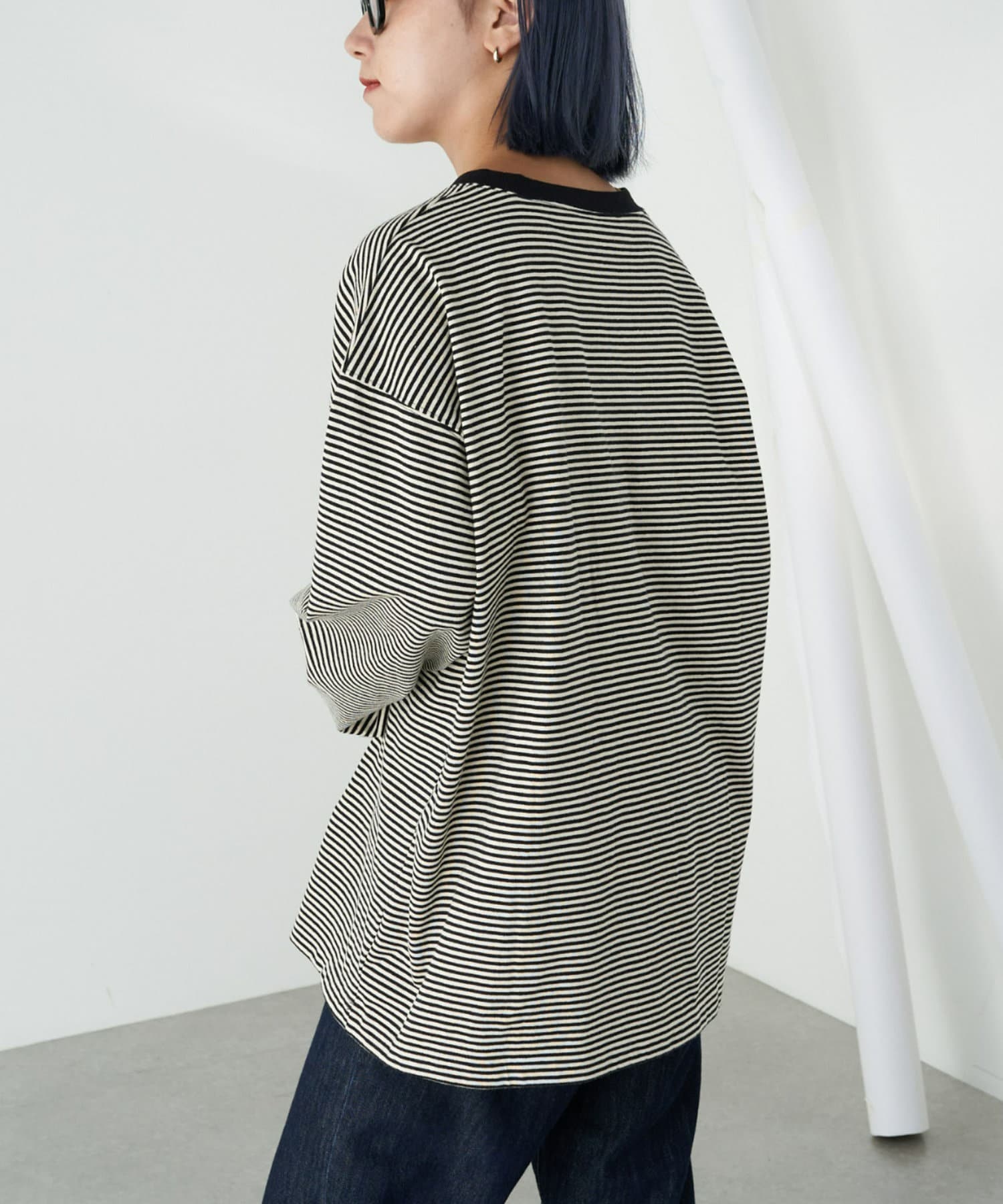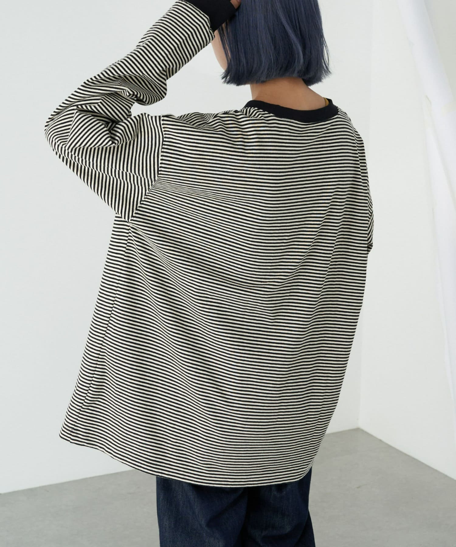 ・ボーダーも細いピッチでカジュアルすぎず幅広いコーデに合わせて頂けます。