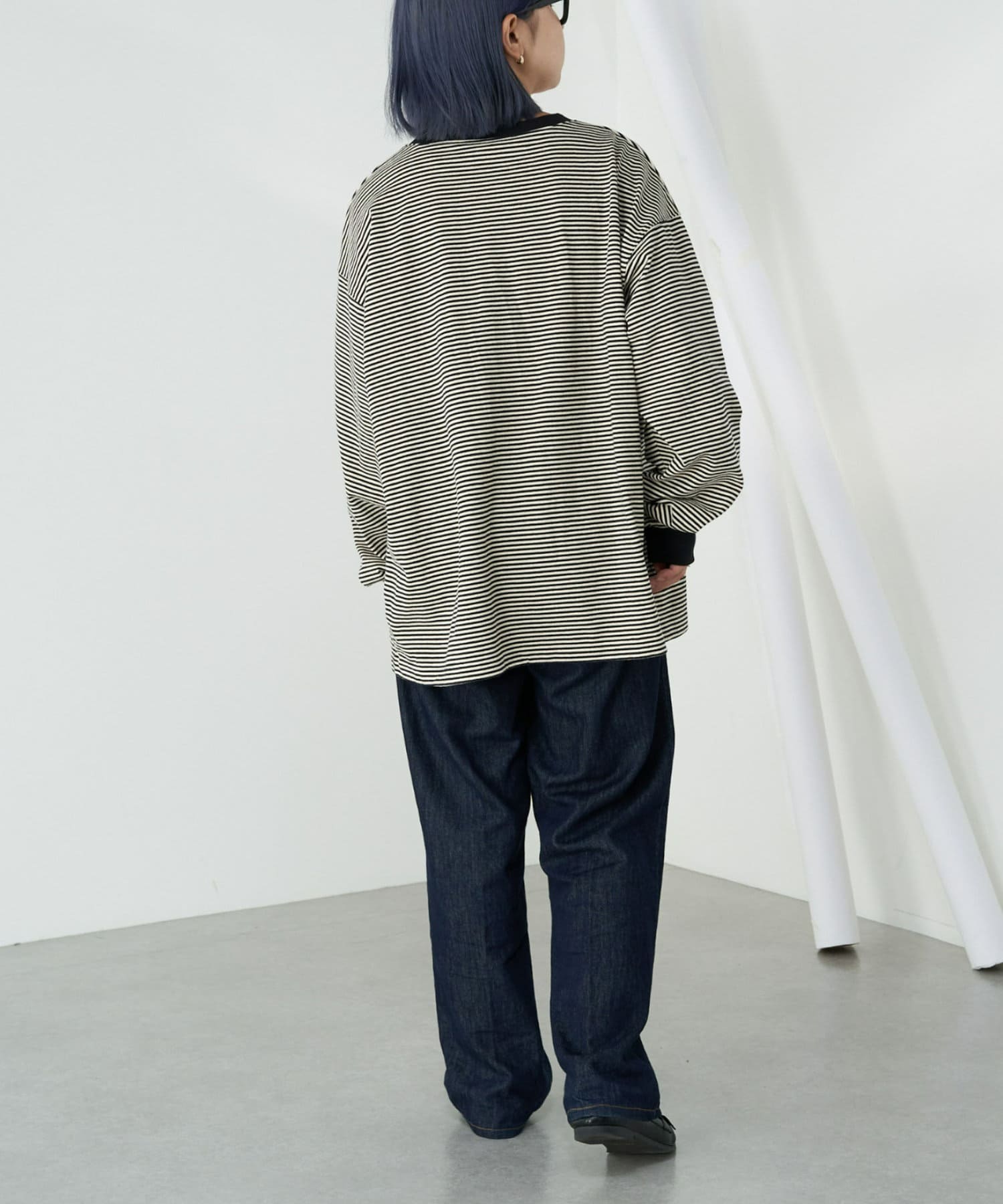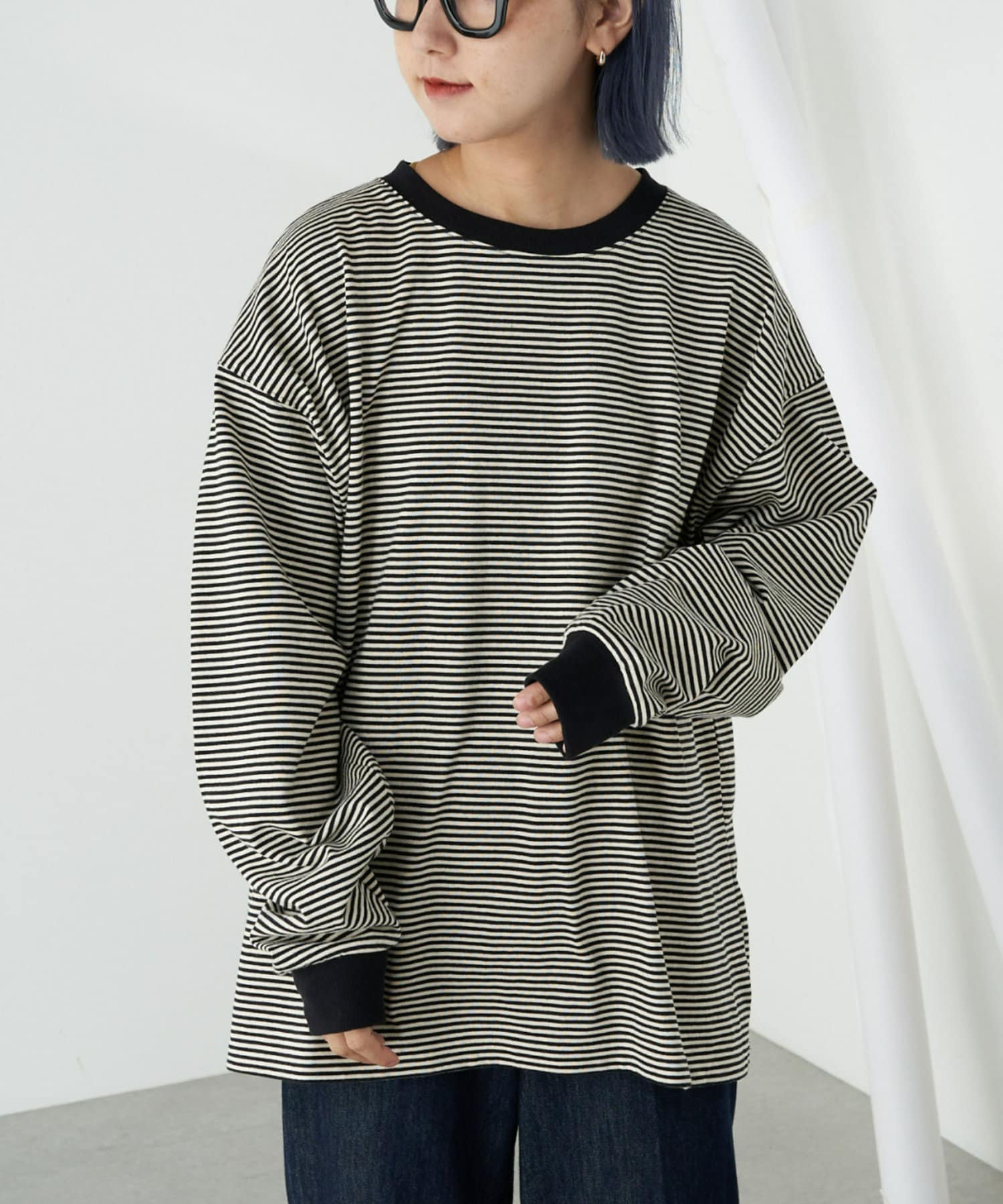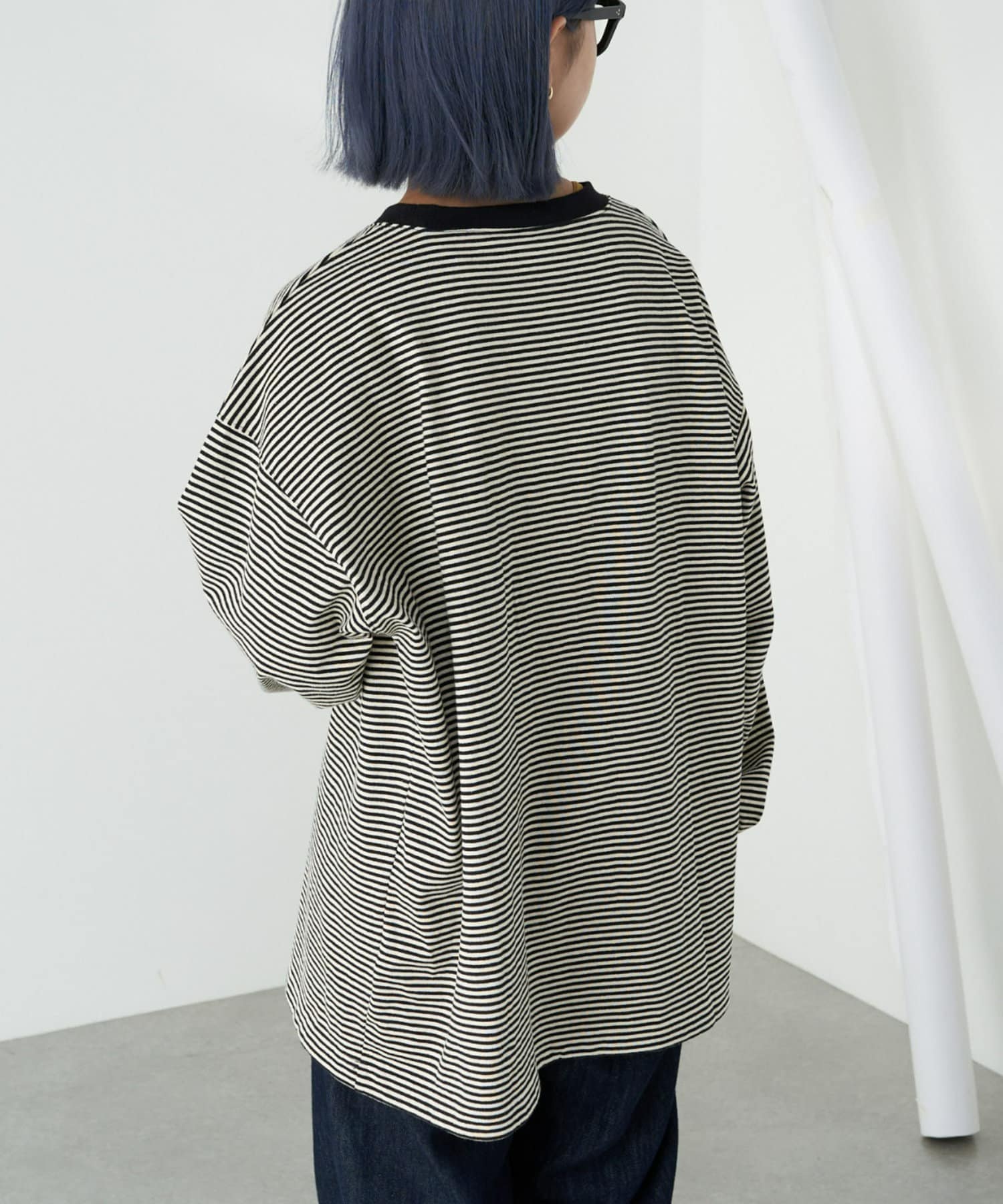 ・ボーダーも細いピッチでカジュアルすぎず幅広いコーデに合わせて頂けます。