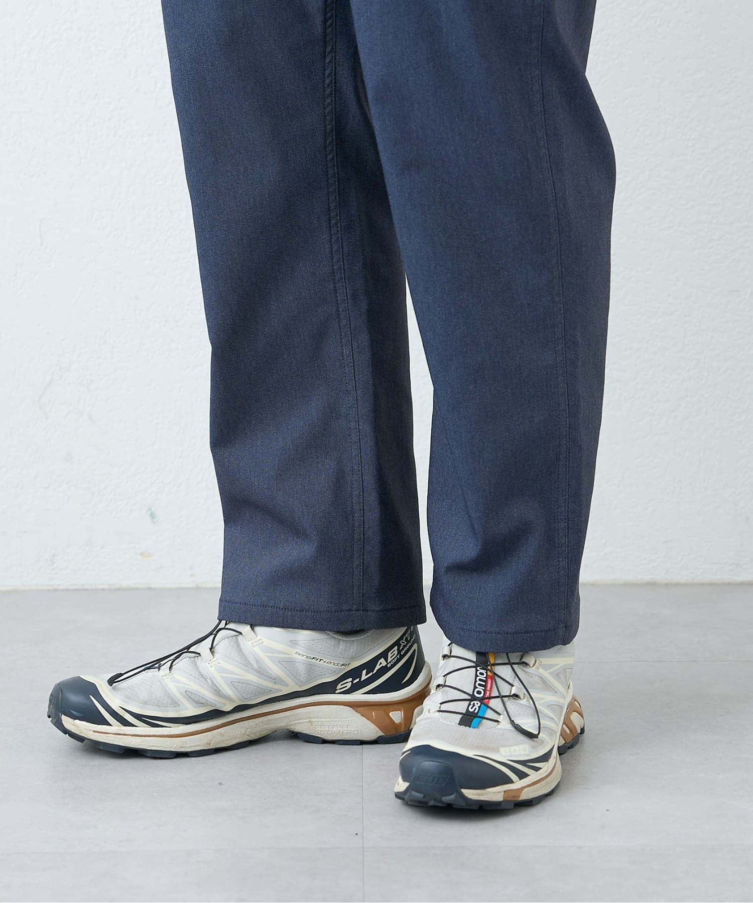 ほどよくゆとりのあるテーパードパンツなので