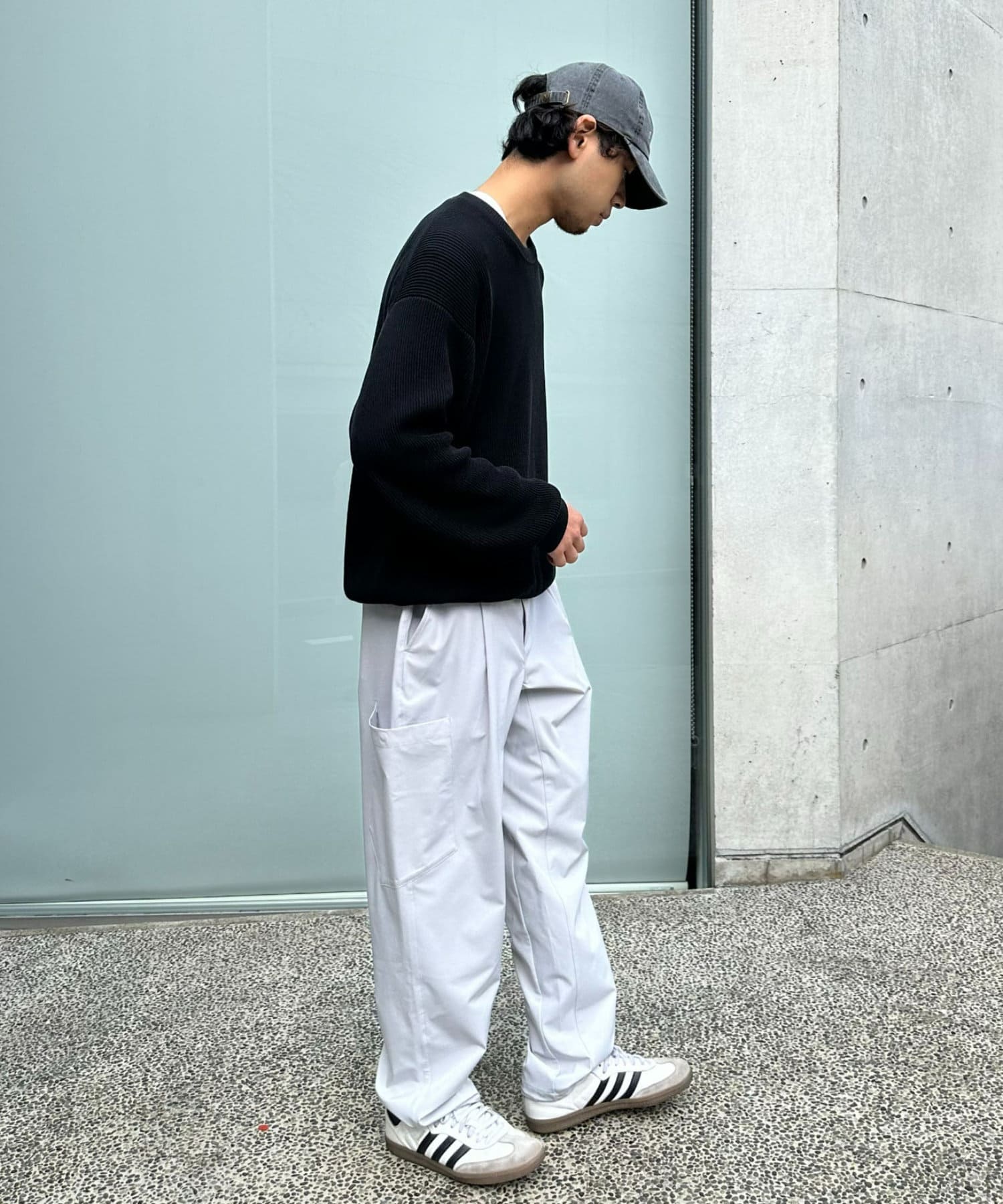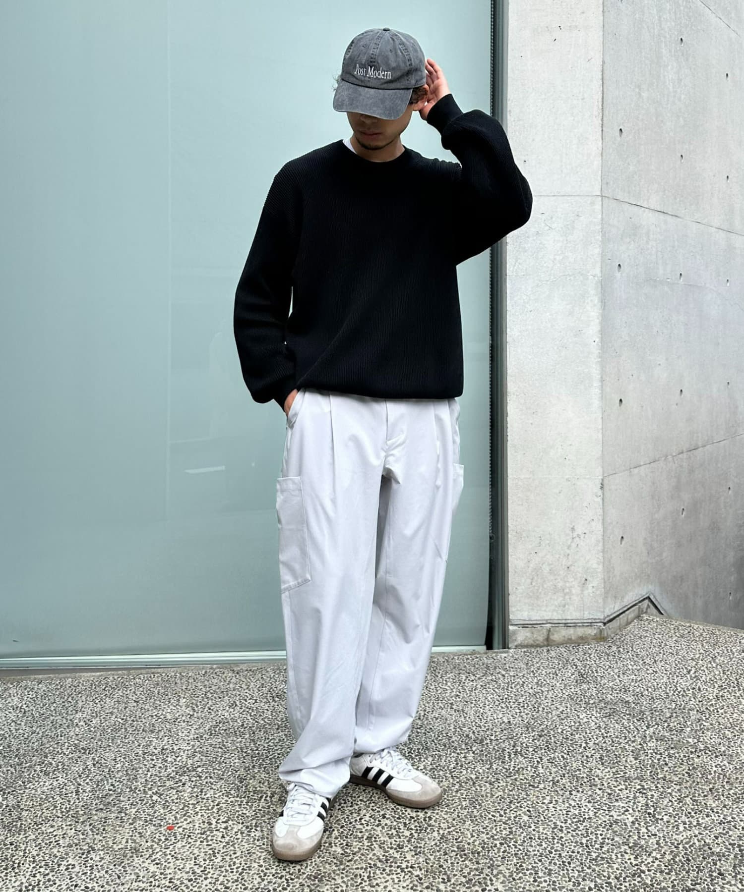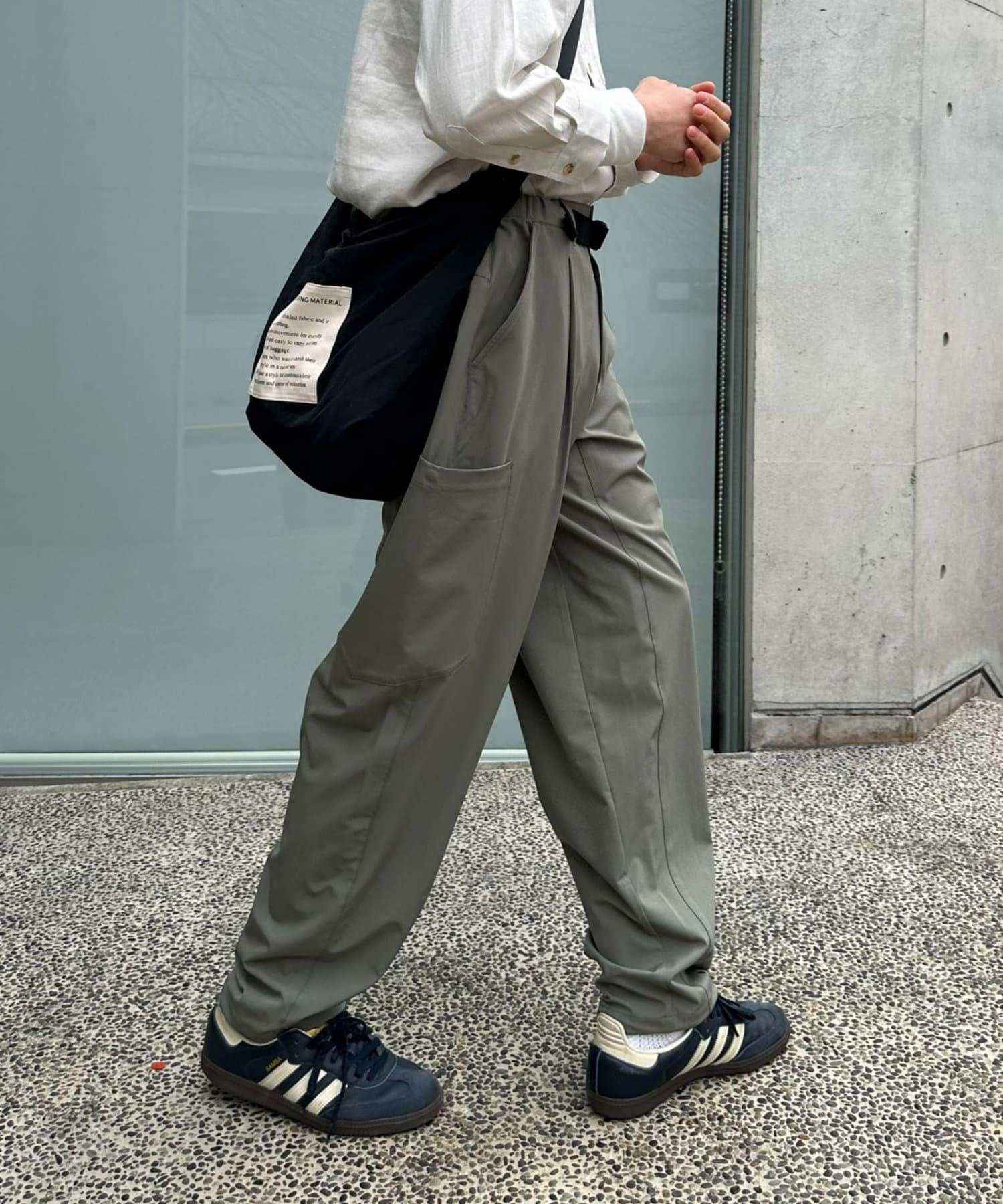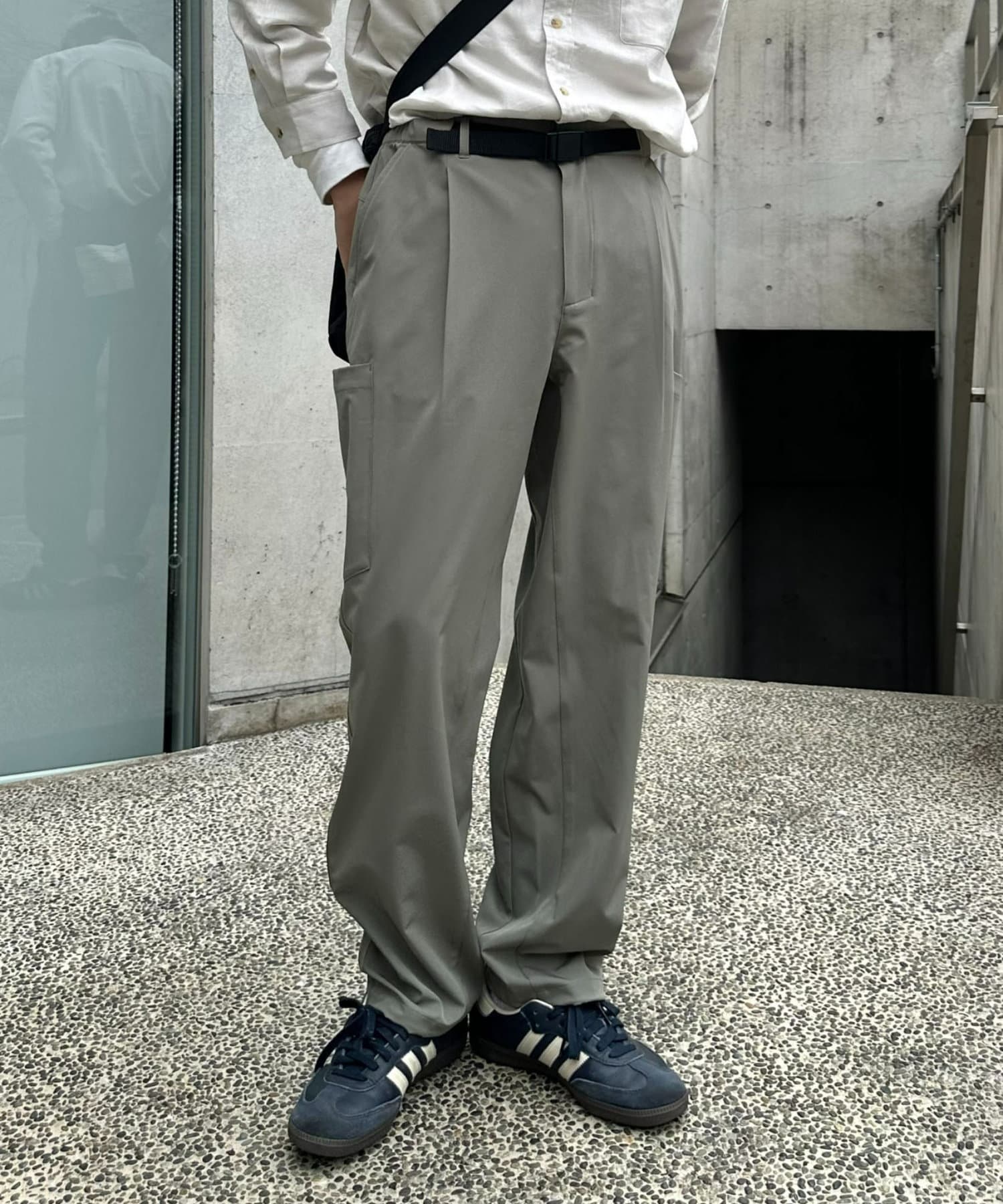 ベルトでウエストの調整も可能なカーゴパンツ。