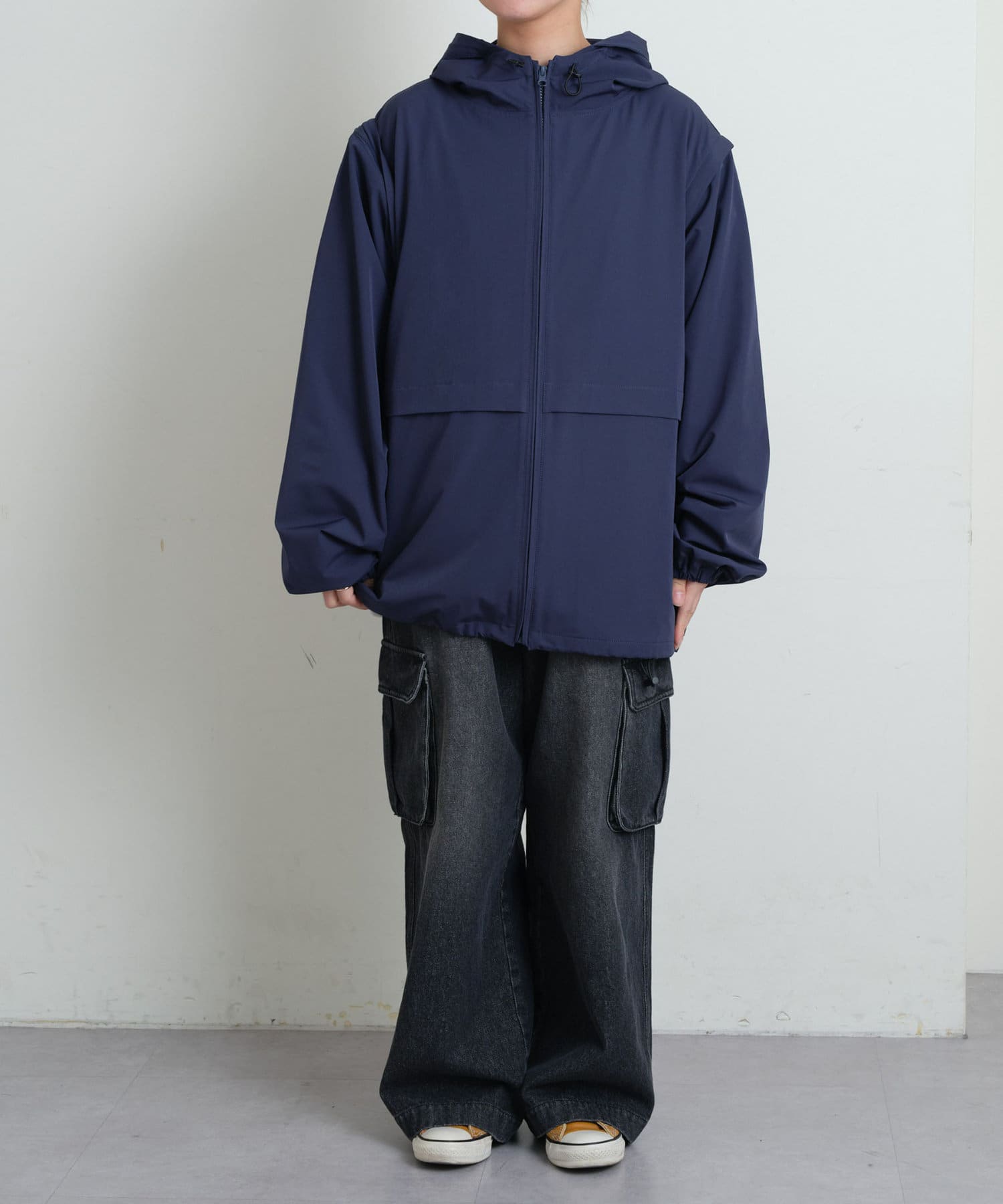 袖を取り外してベストとしても着用できる万能な一着。