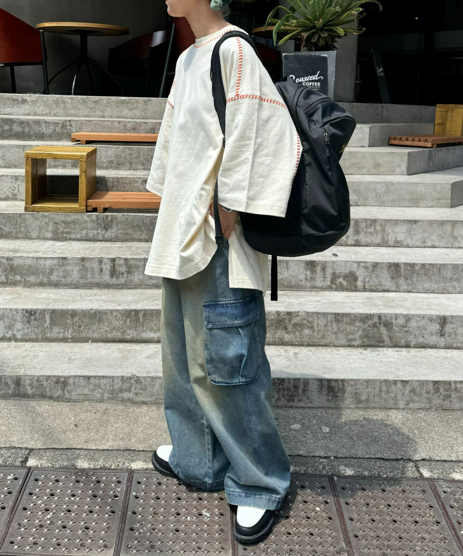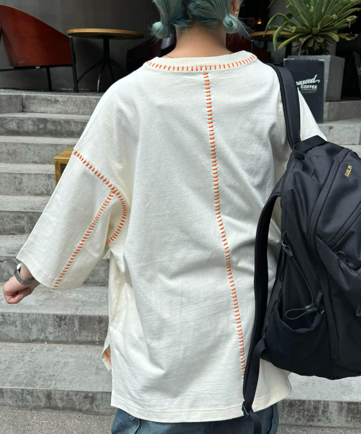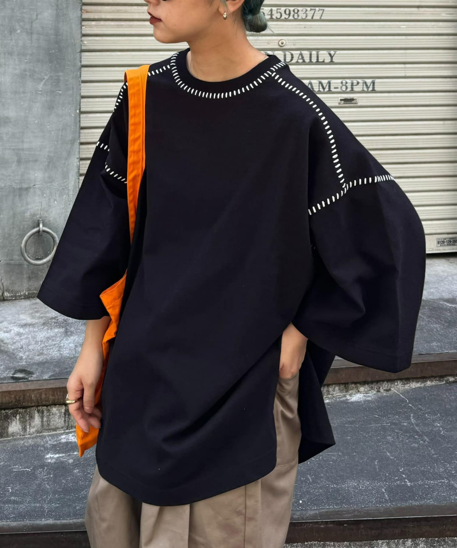 ・ルーズなサイズ感と配色ステッチでどの角度でもおしゃれ見えするデザイン。