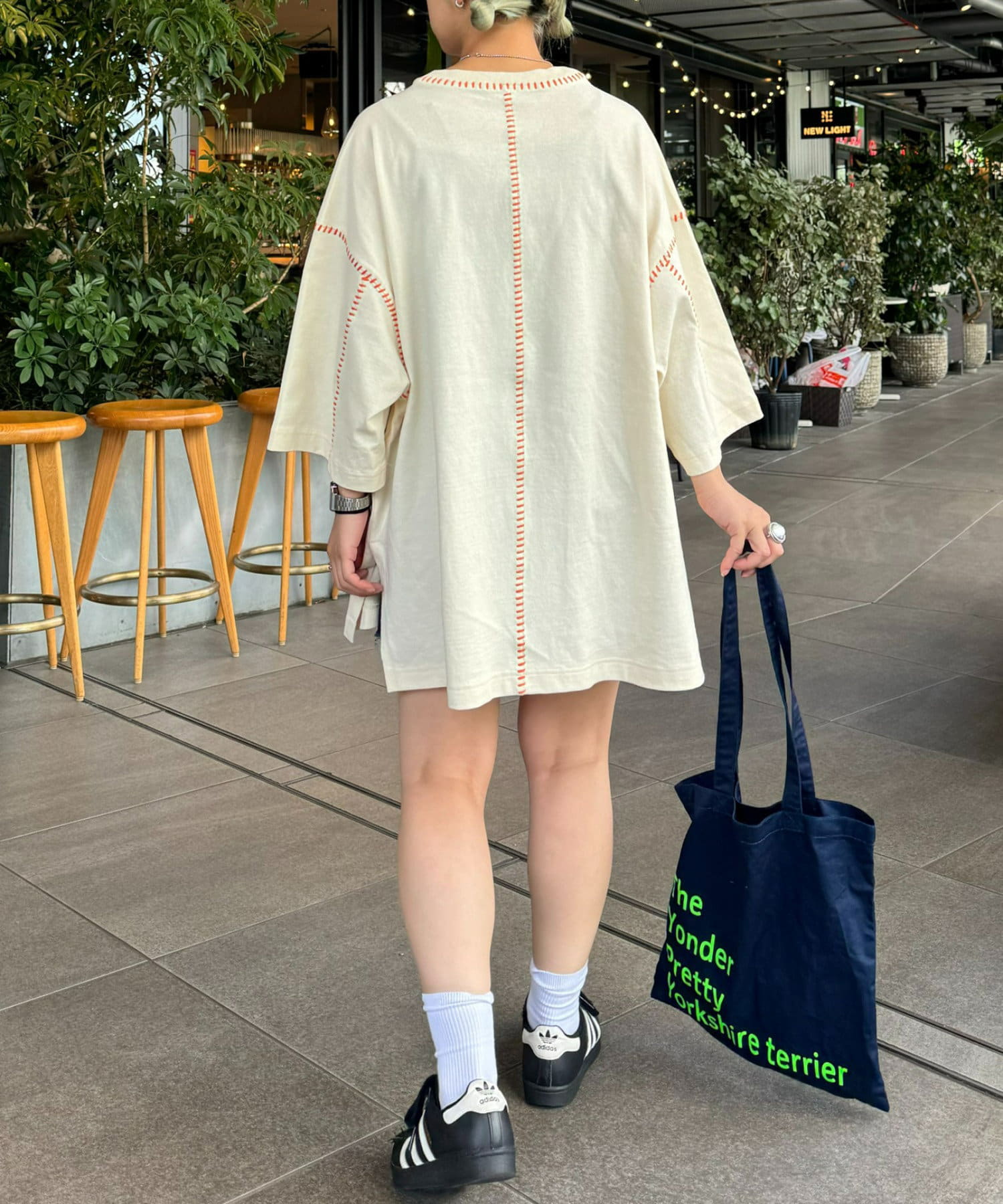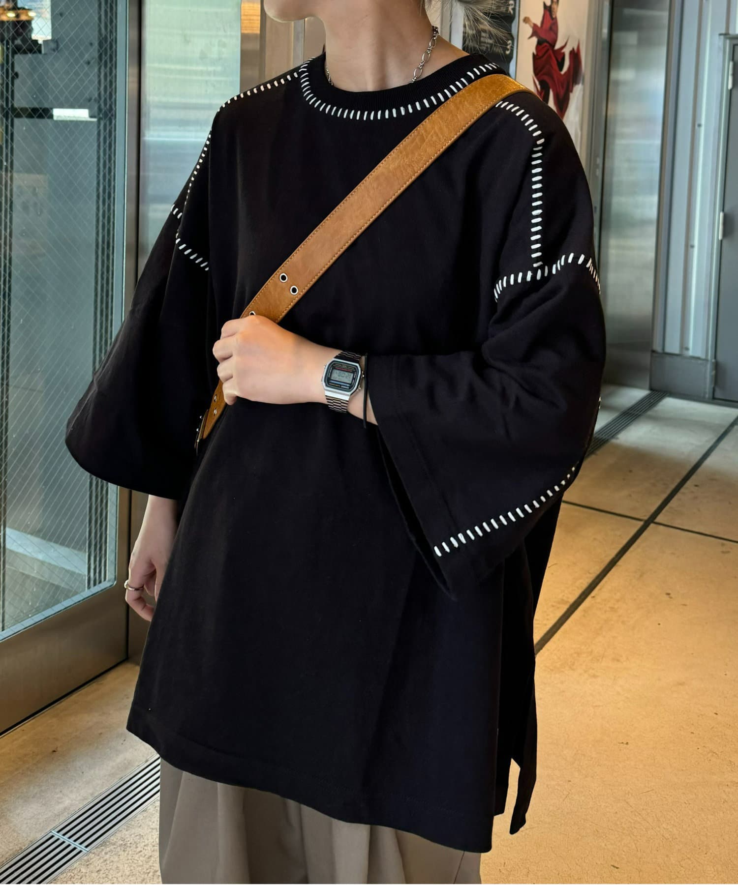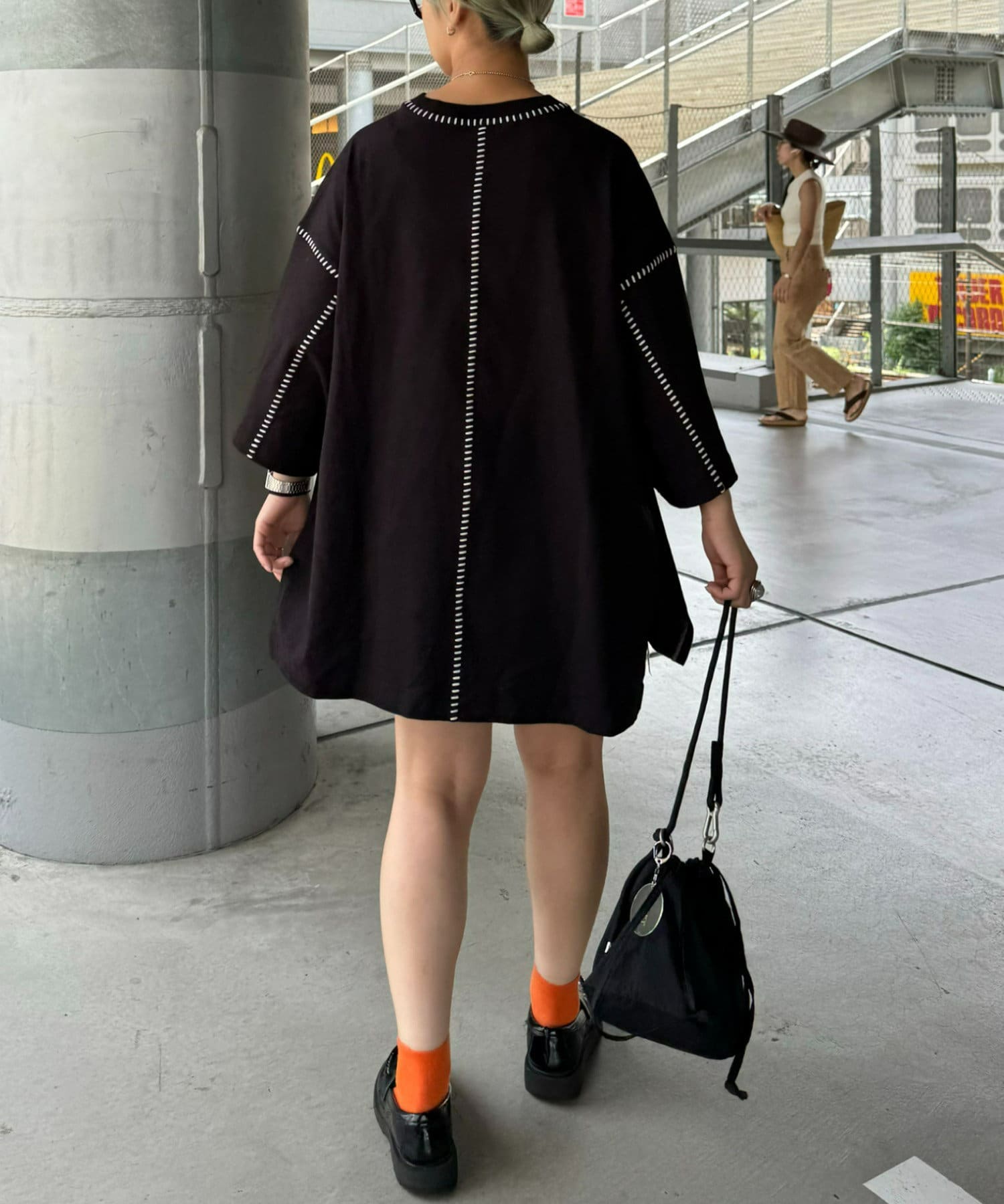 ・ルーズなサイズ感と配色ステッチでどの角度でもおしゃれ見えするデザイン。