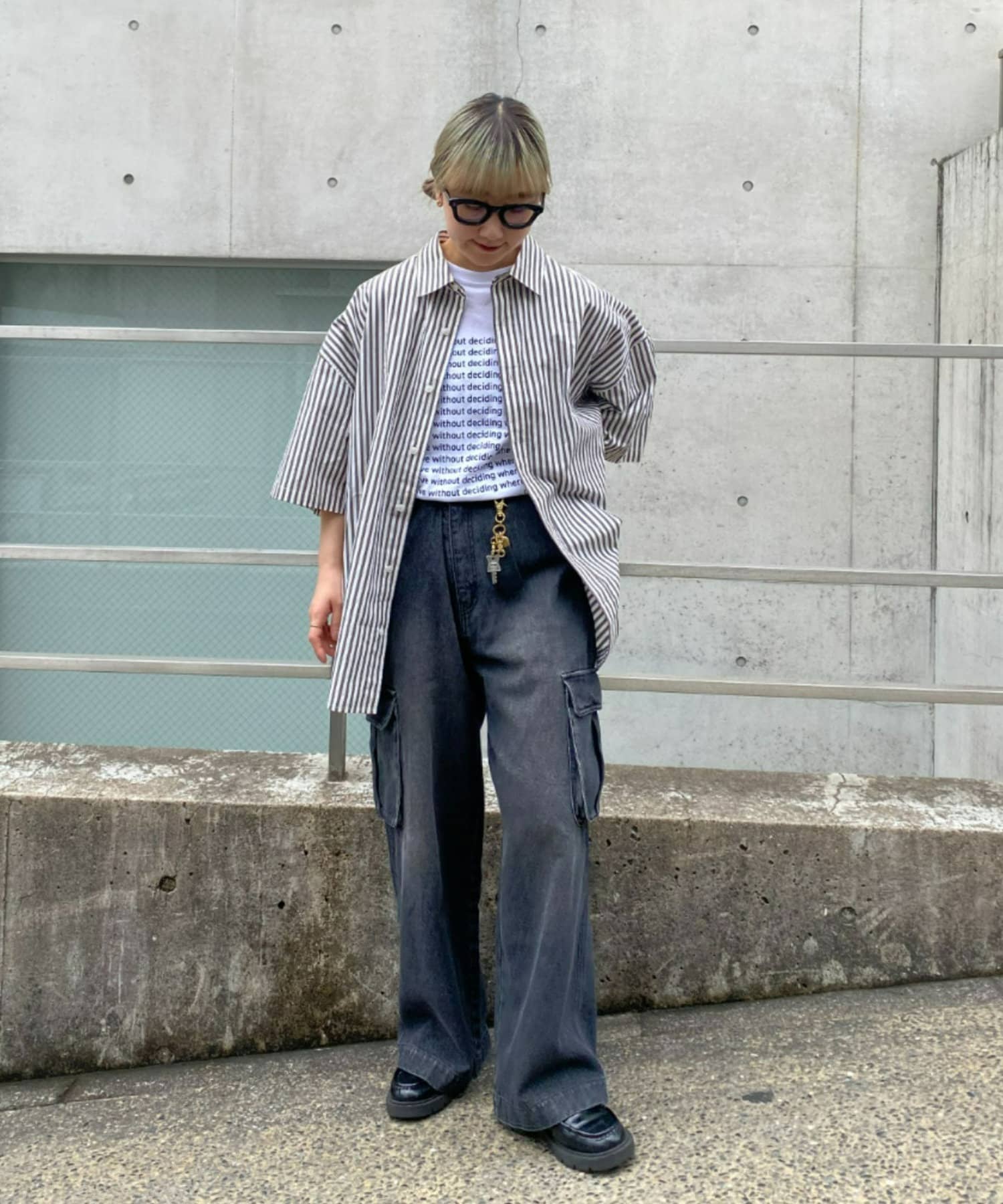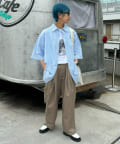 羽織としてインナーにロゴTやボーダーTなどと合わせた
