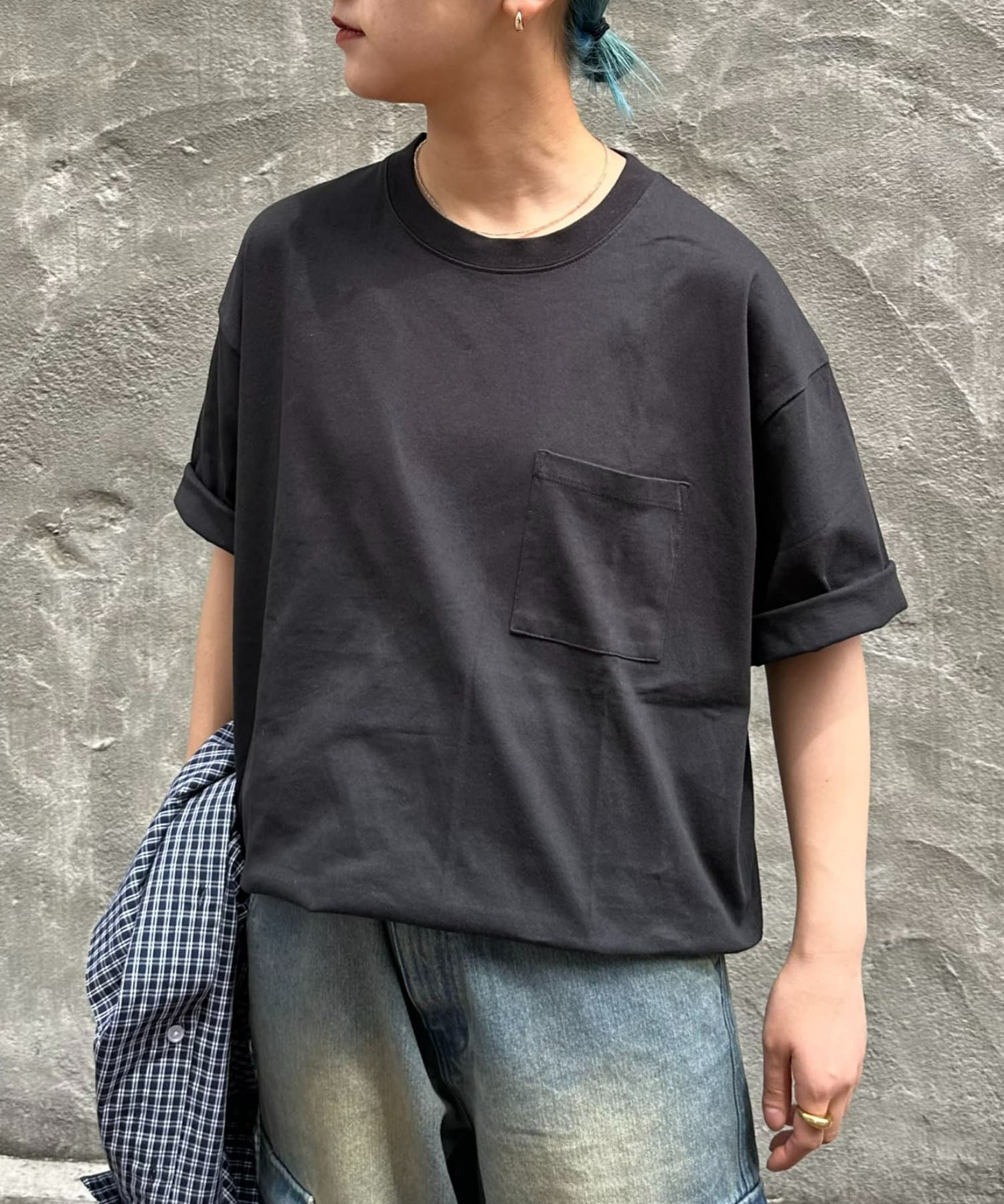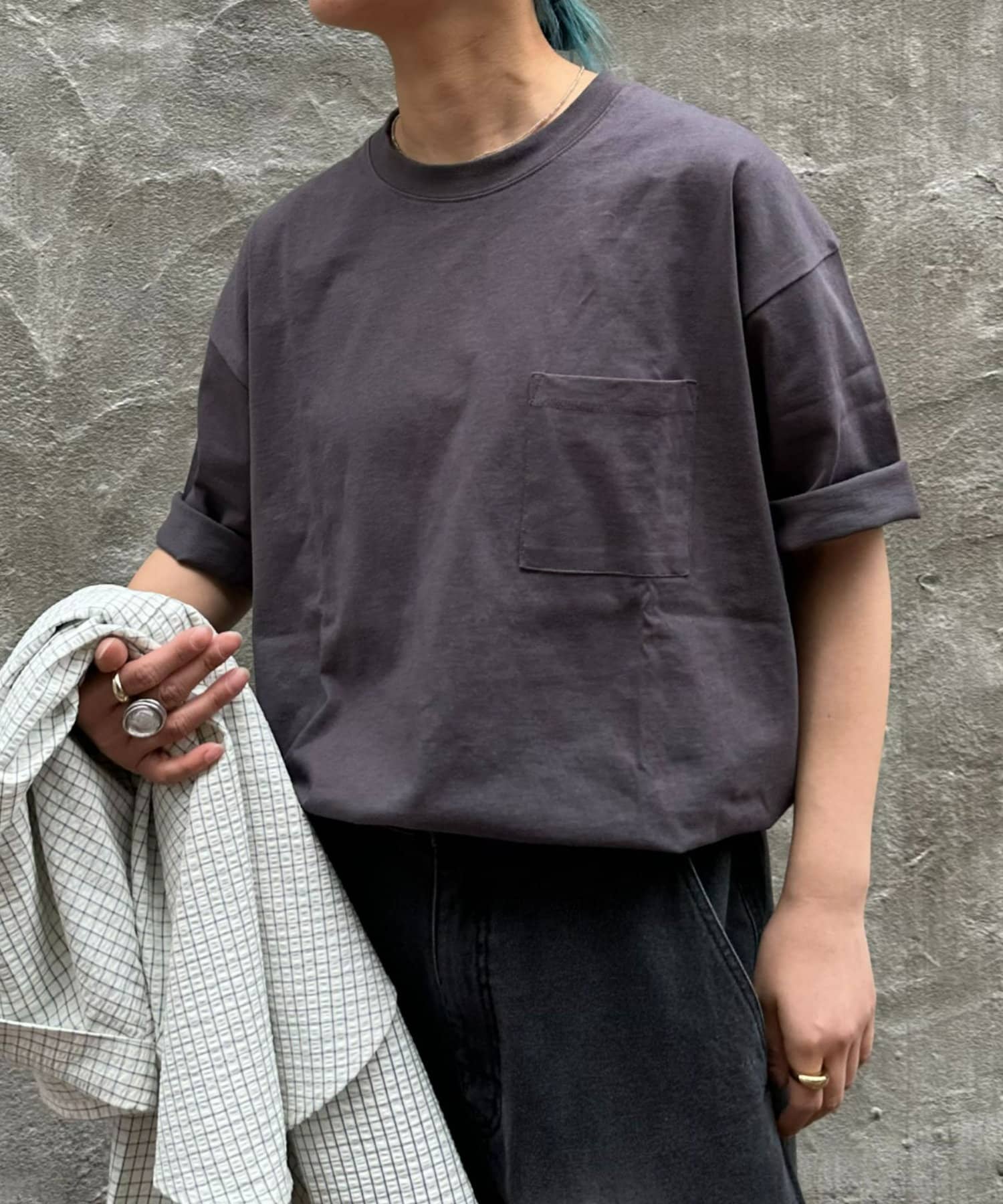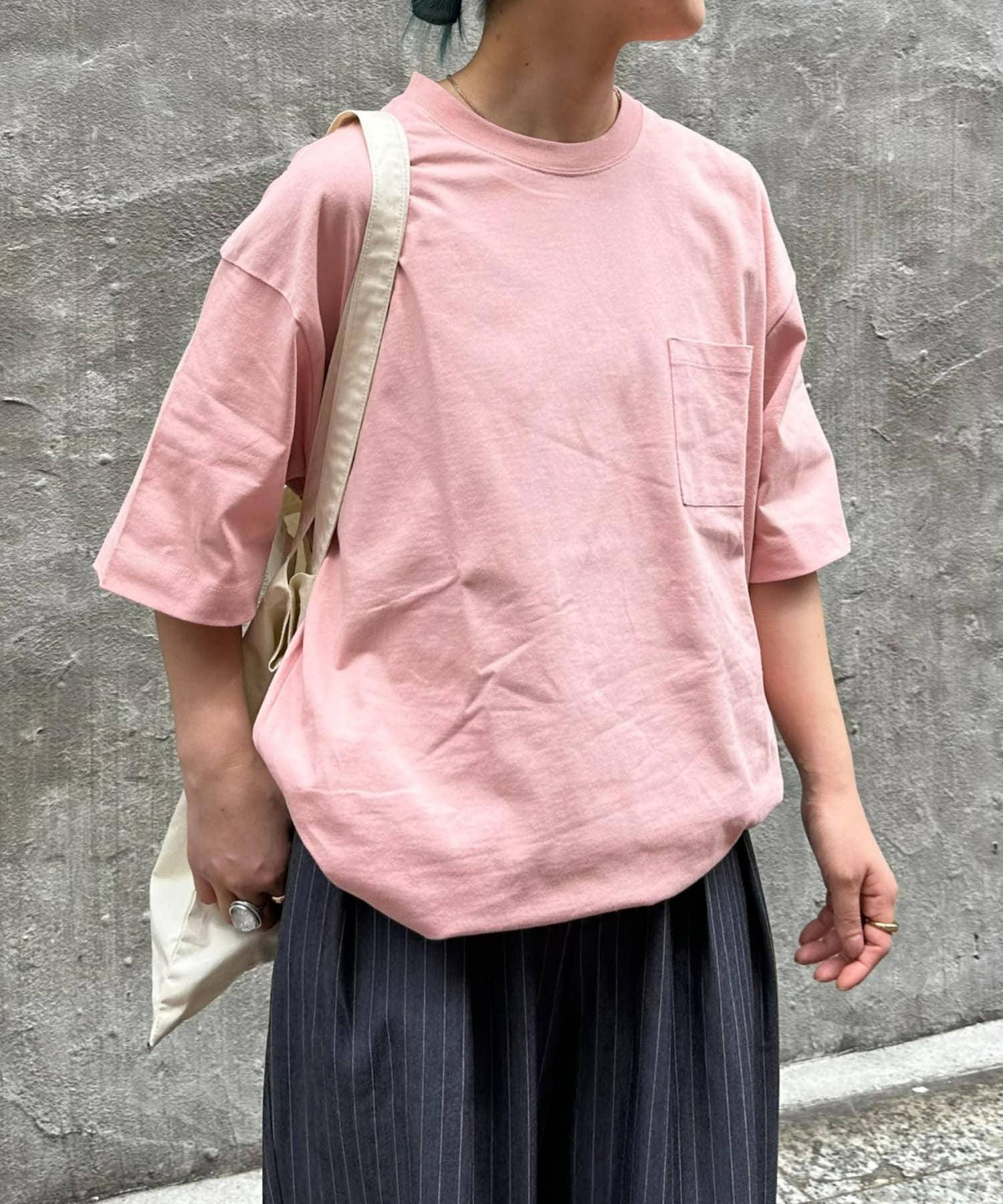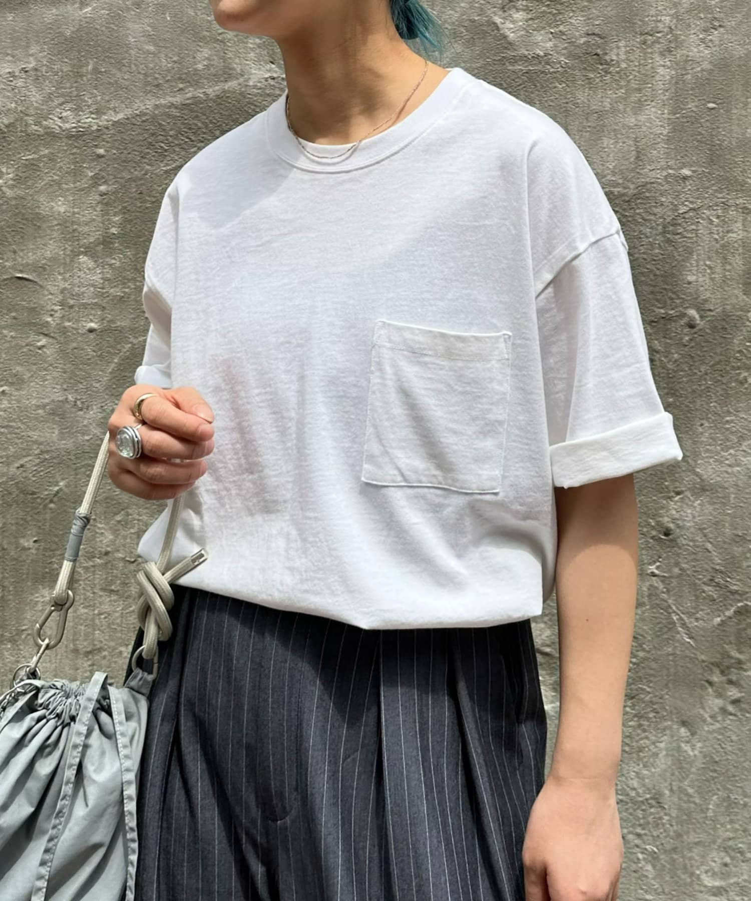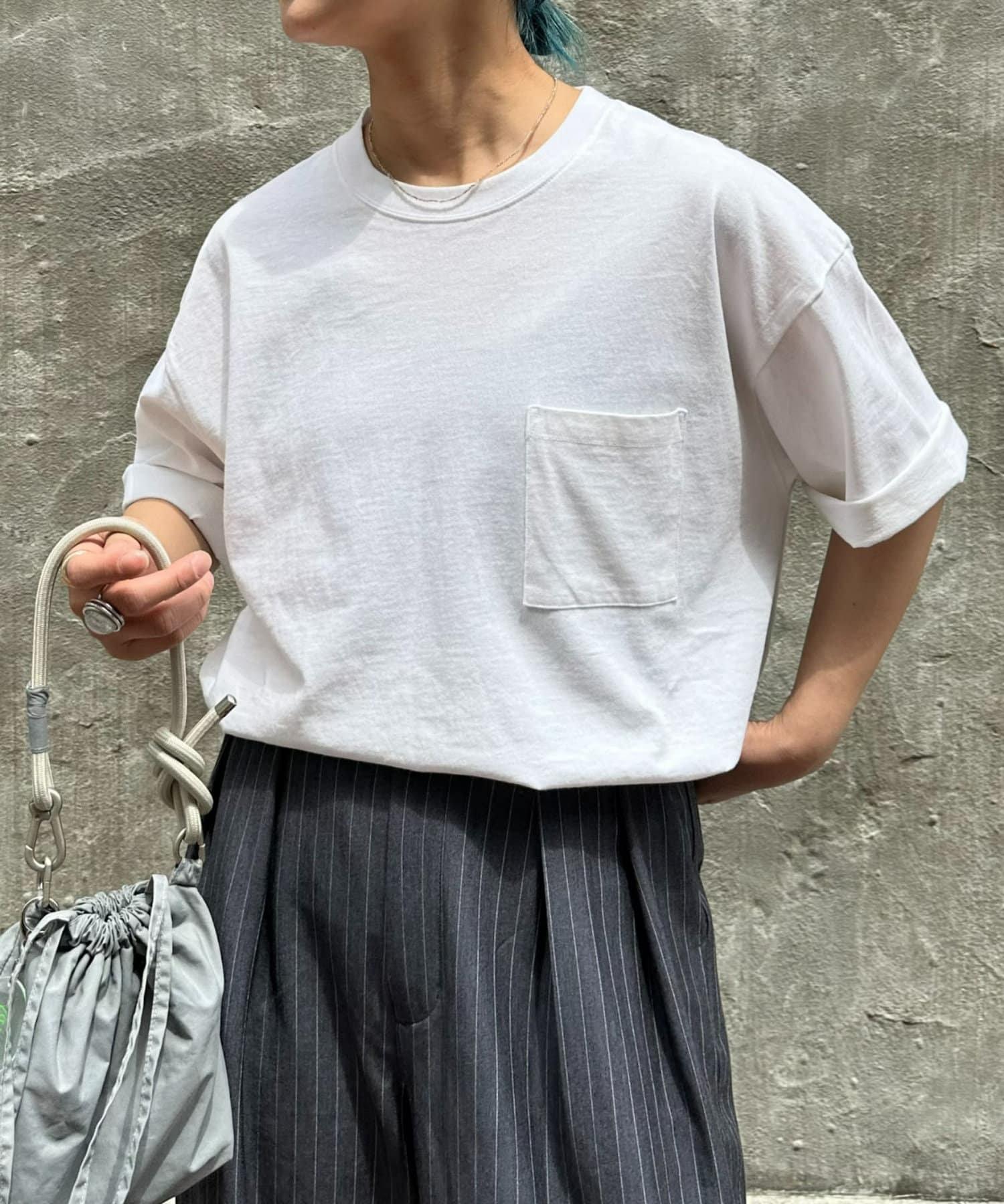 ・シンプルなデザインで着回しやすい定番のポケットTシャツ