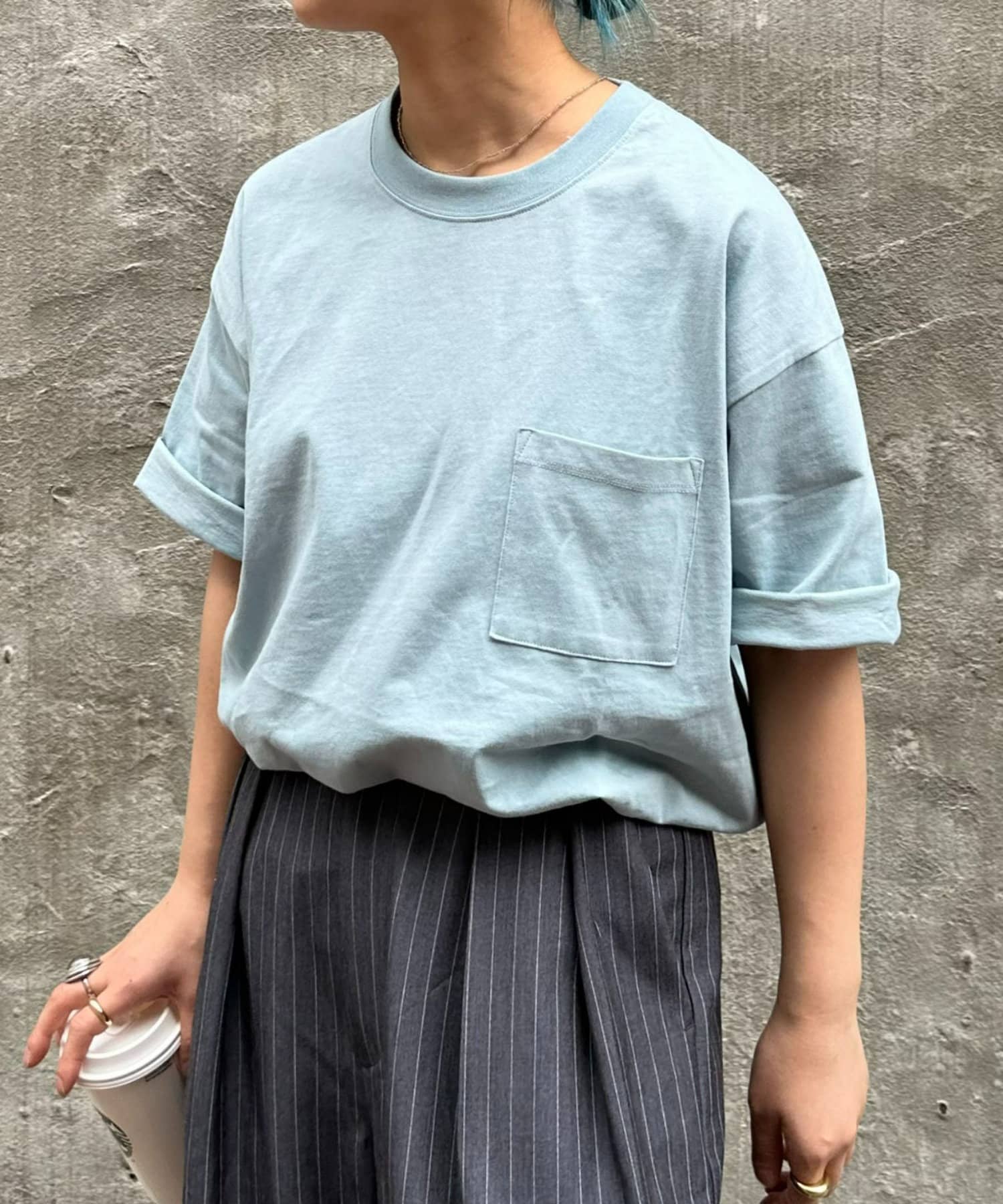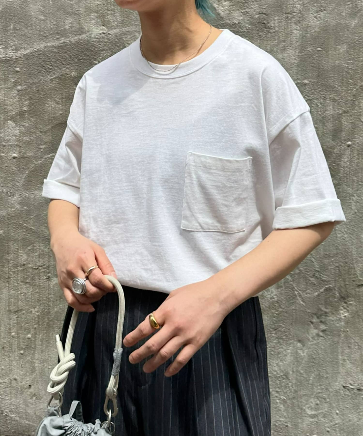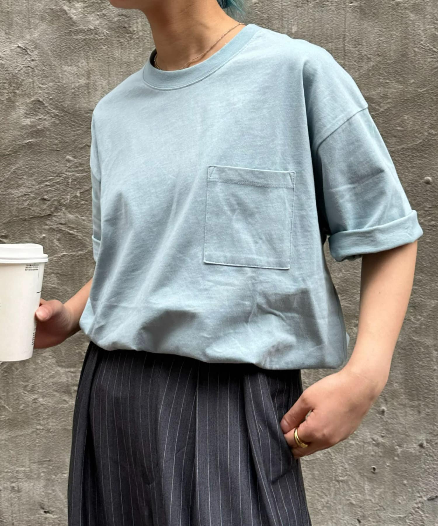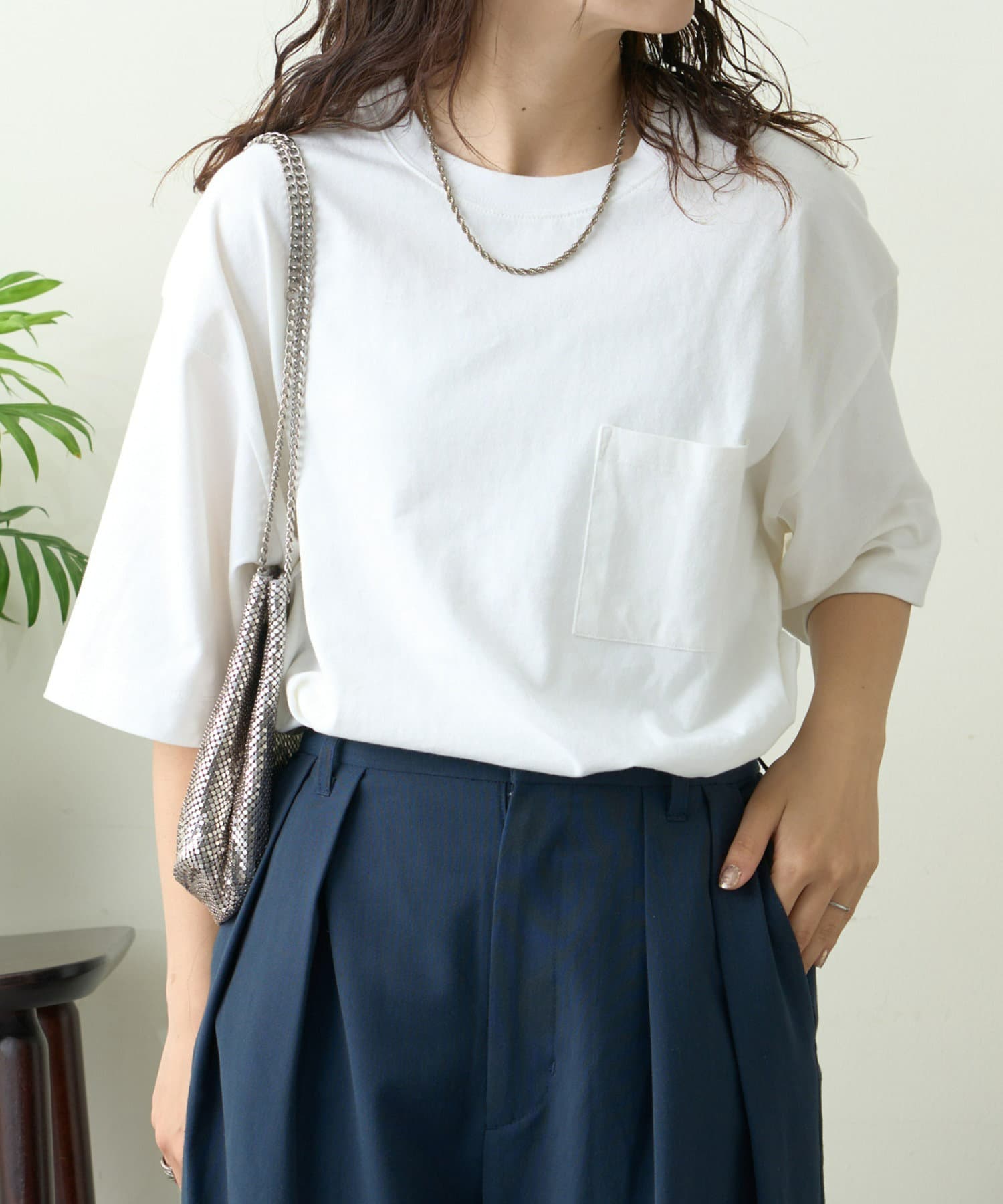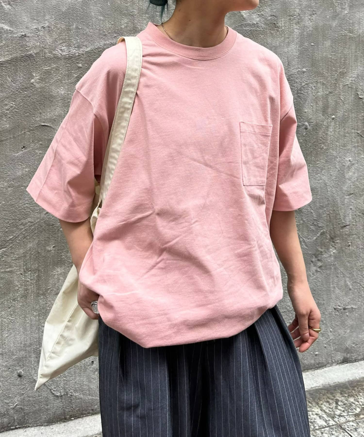 ・シンプルなデザインで着回しやすい定番のポケットTシャツ