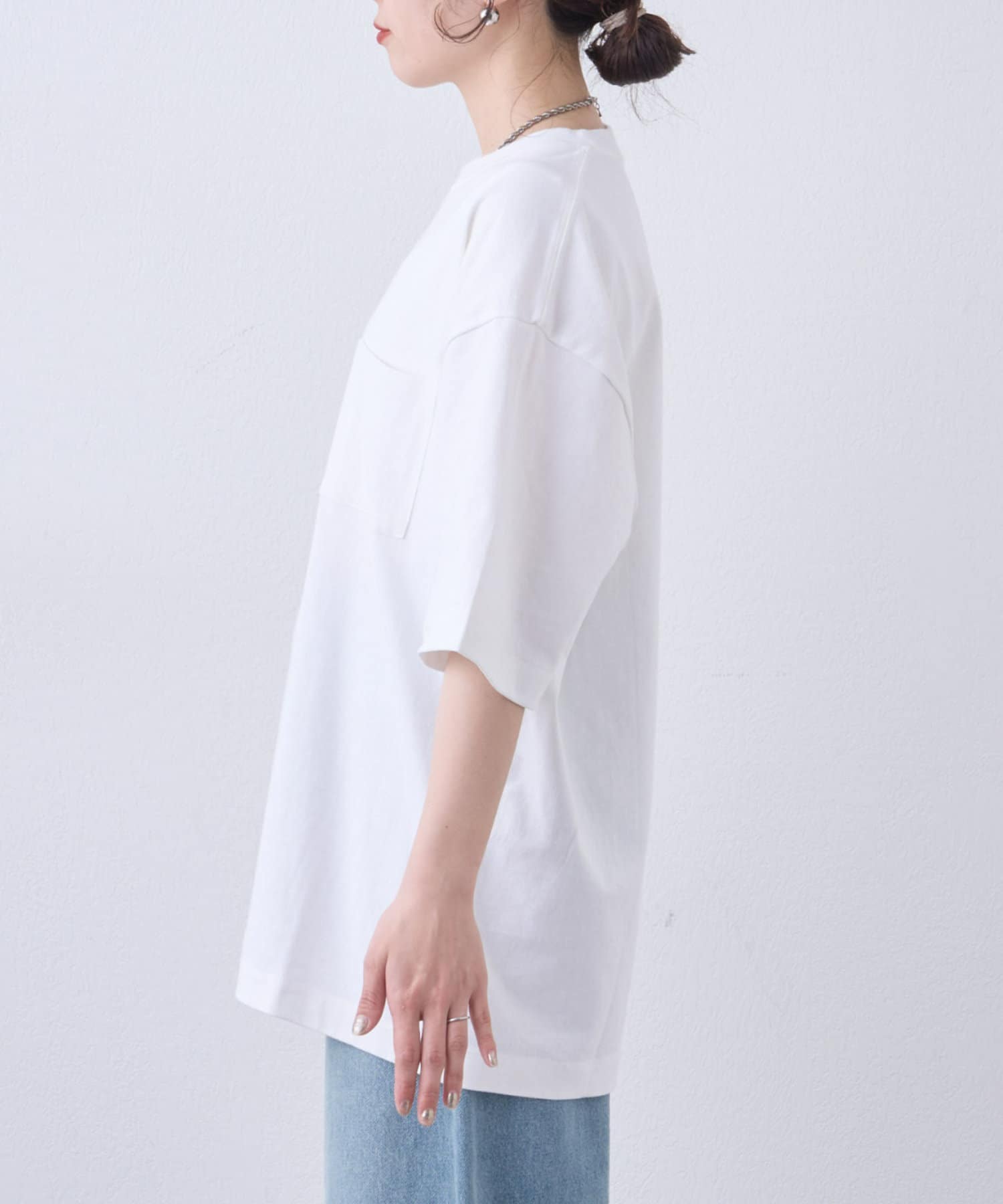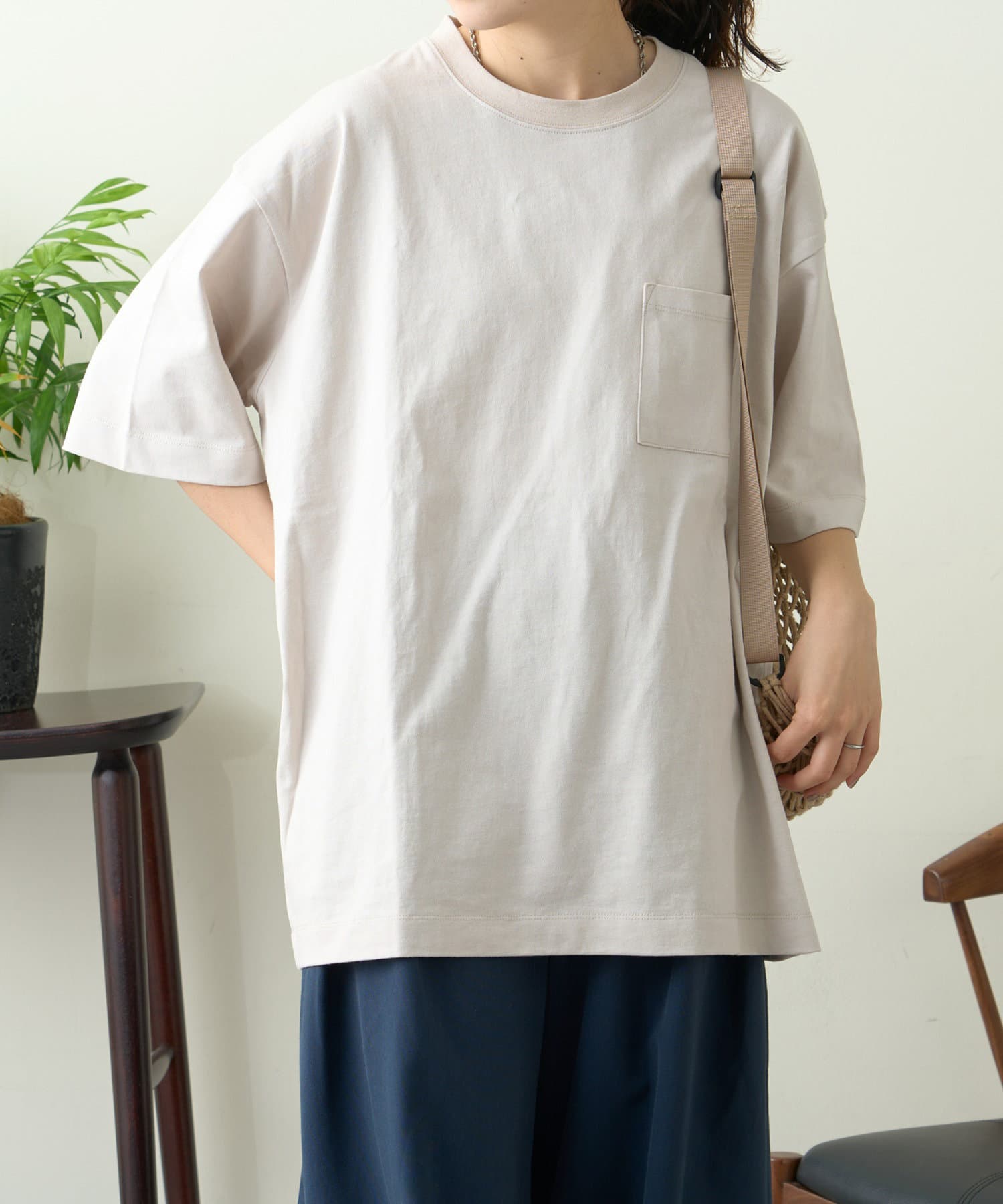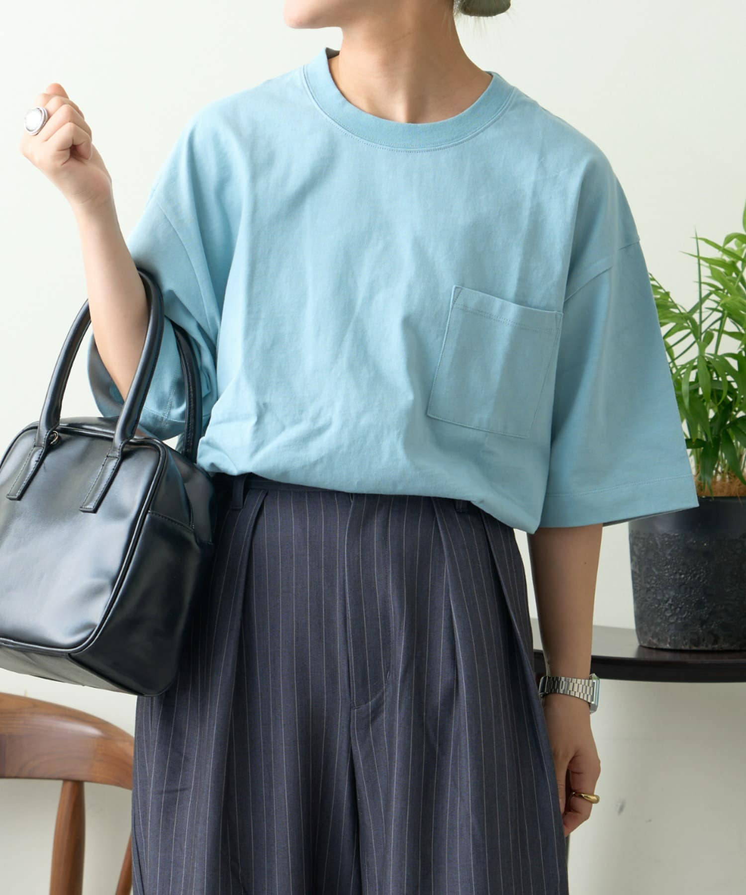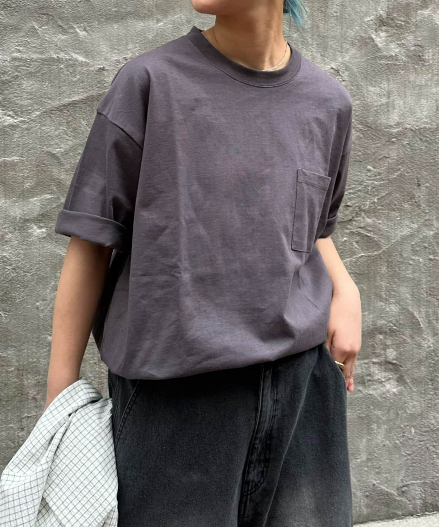 ・シンプルなデザインで着回しやすい定番のポケットTシャツ