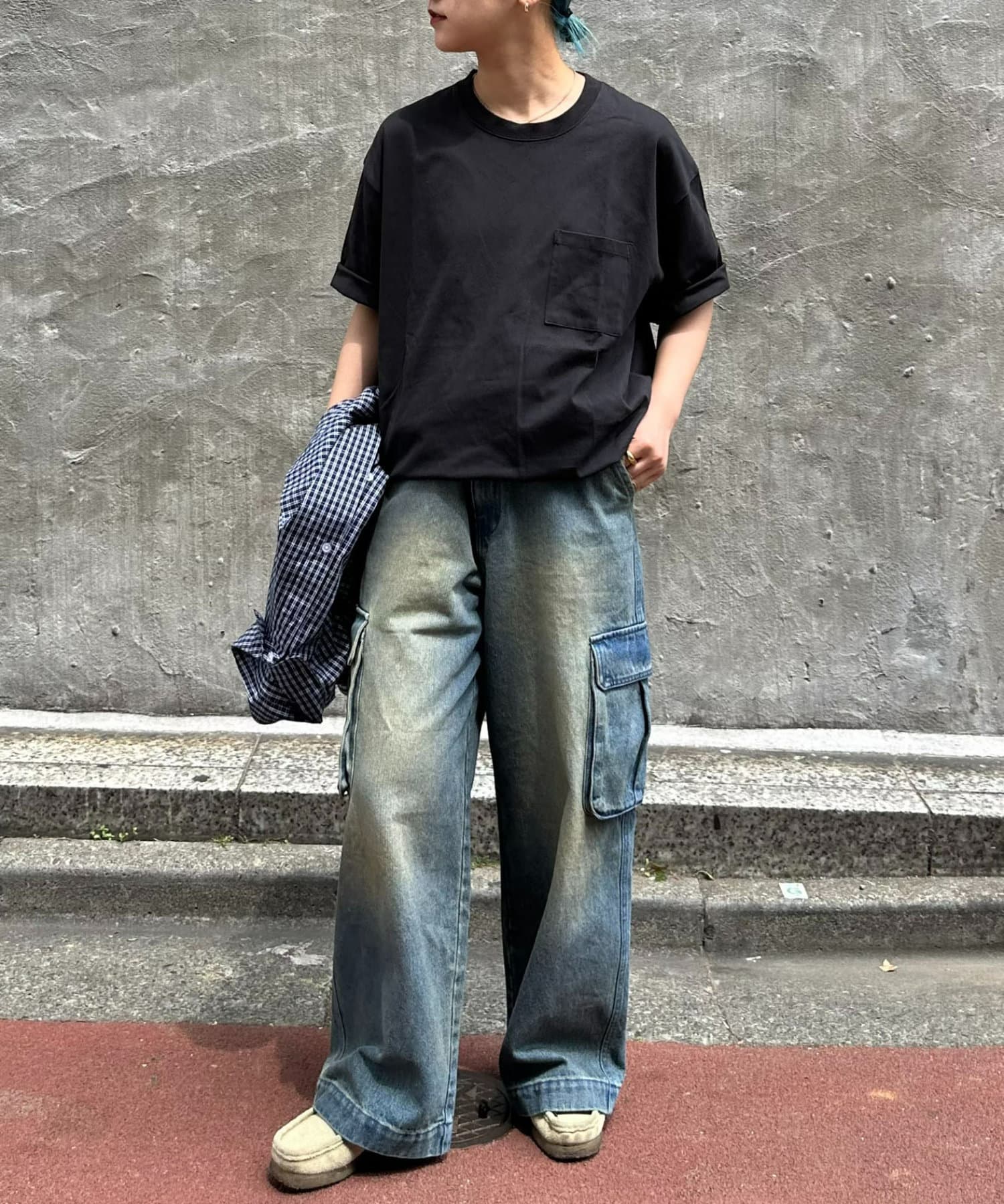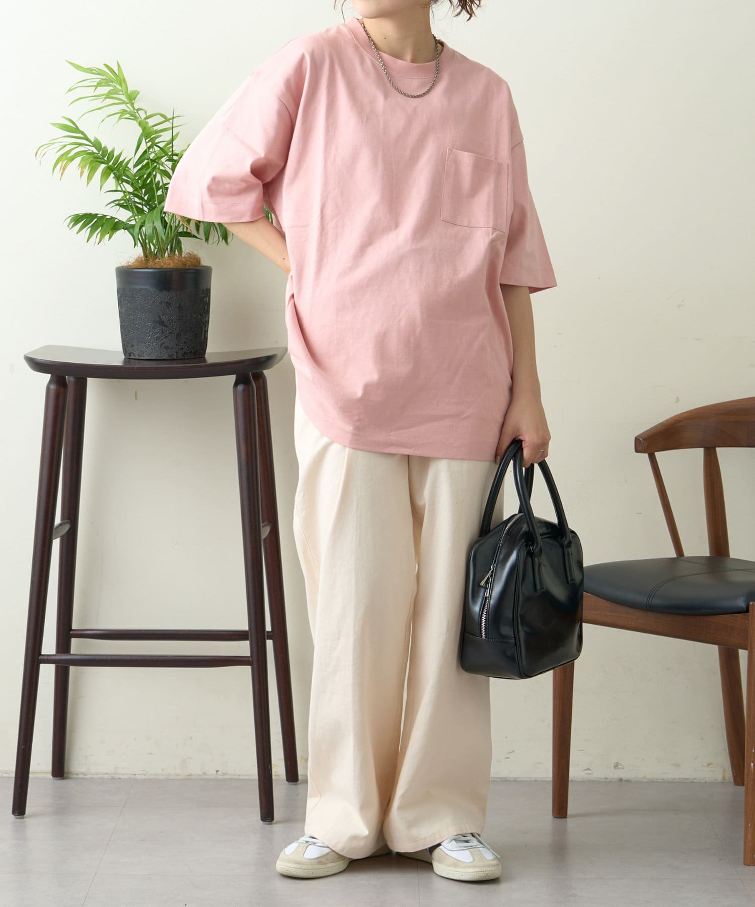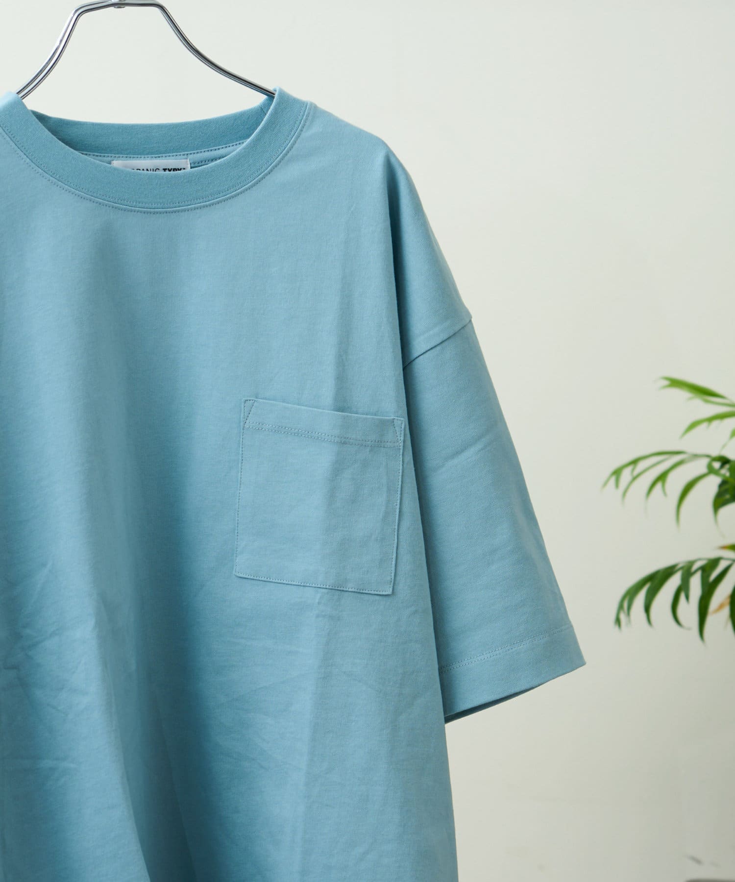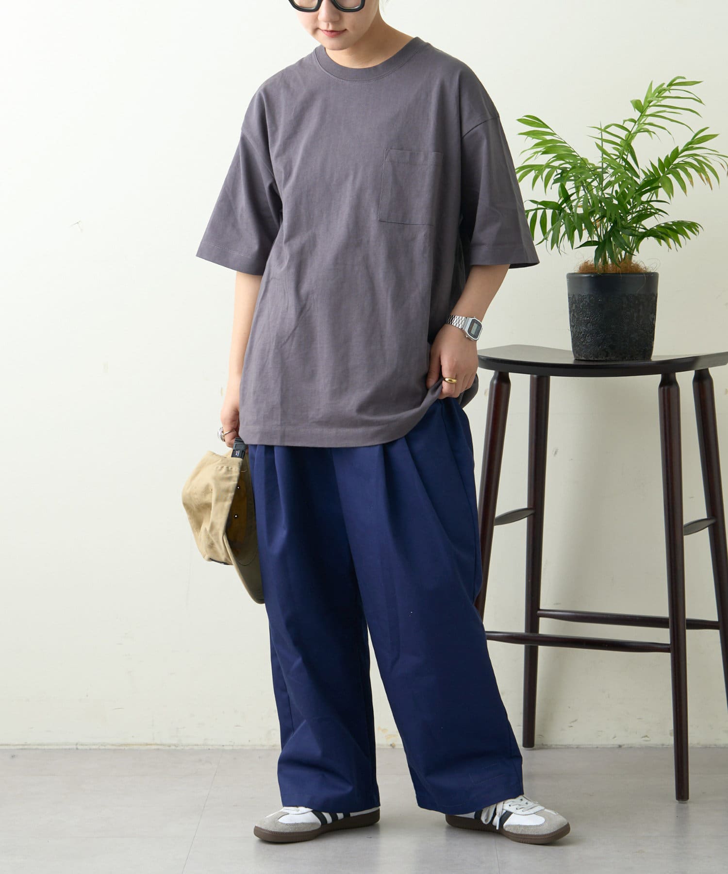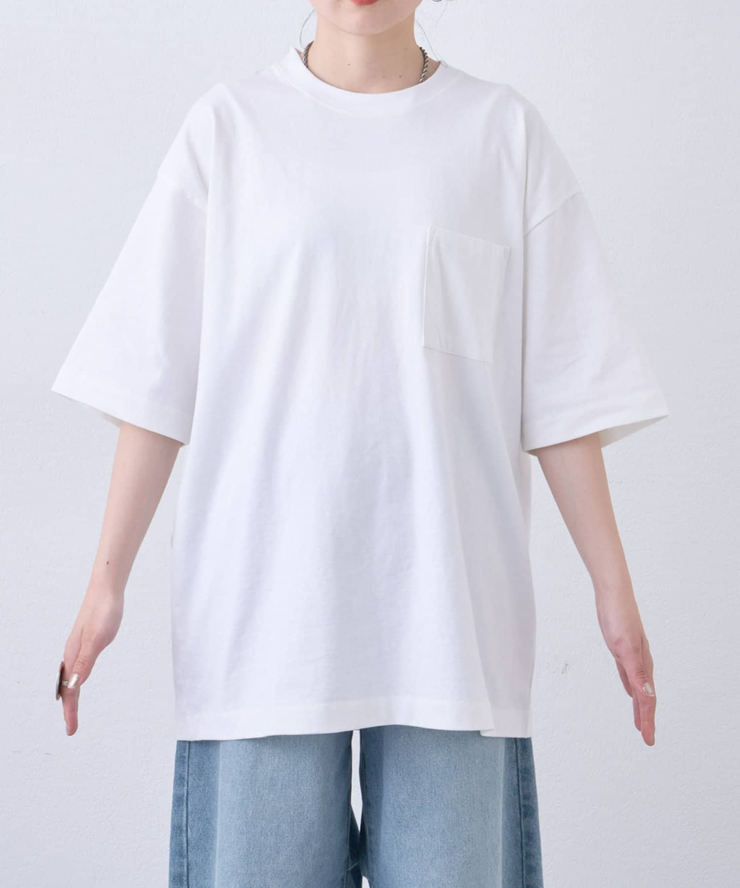 ・シンプルなデザインで着回しやすい定番のポケットTシャツ