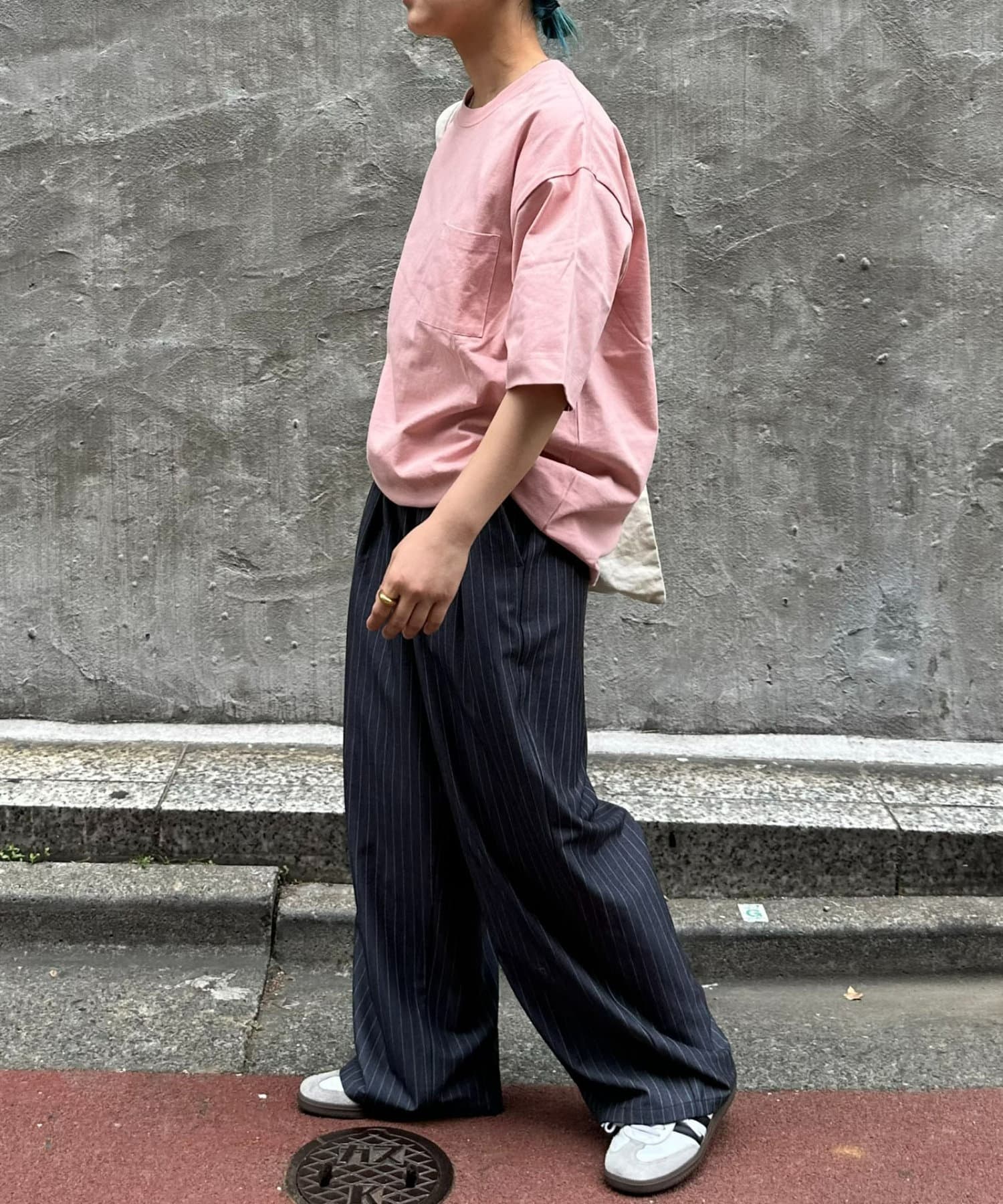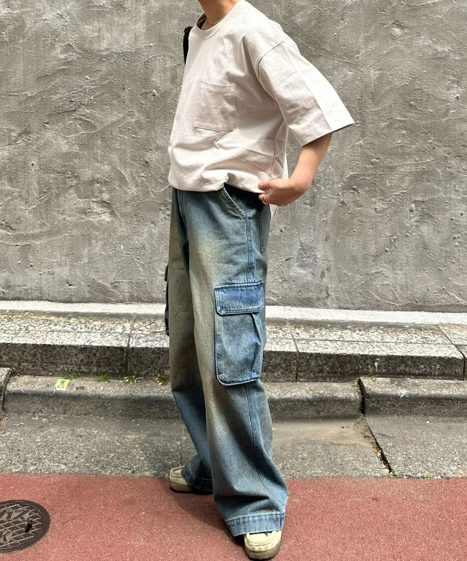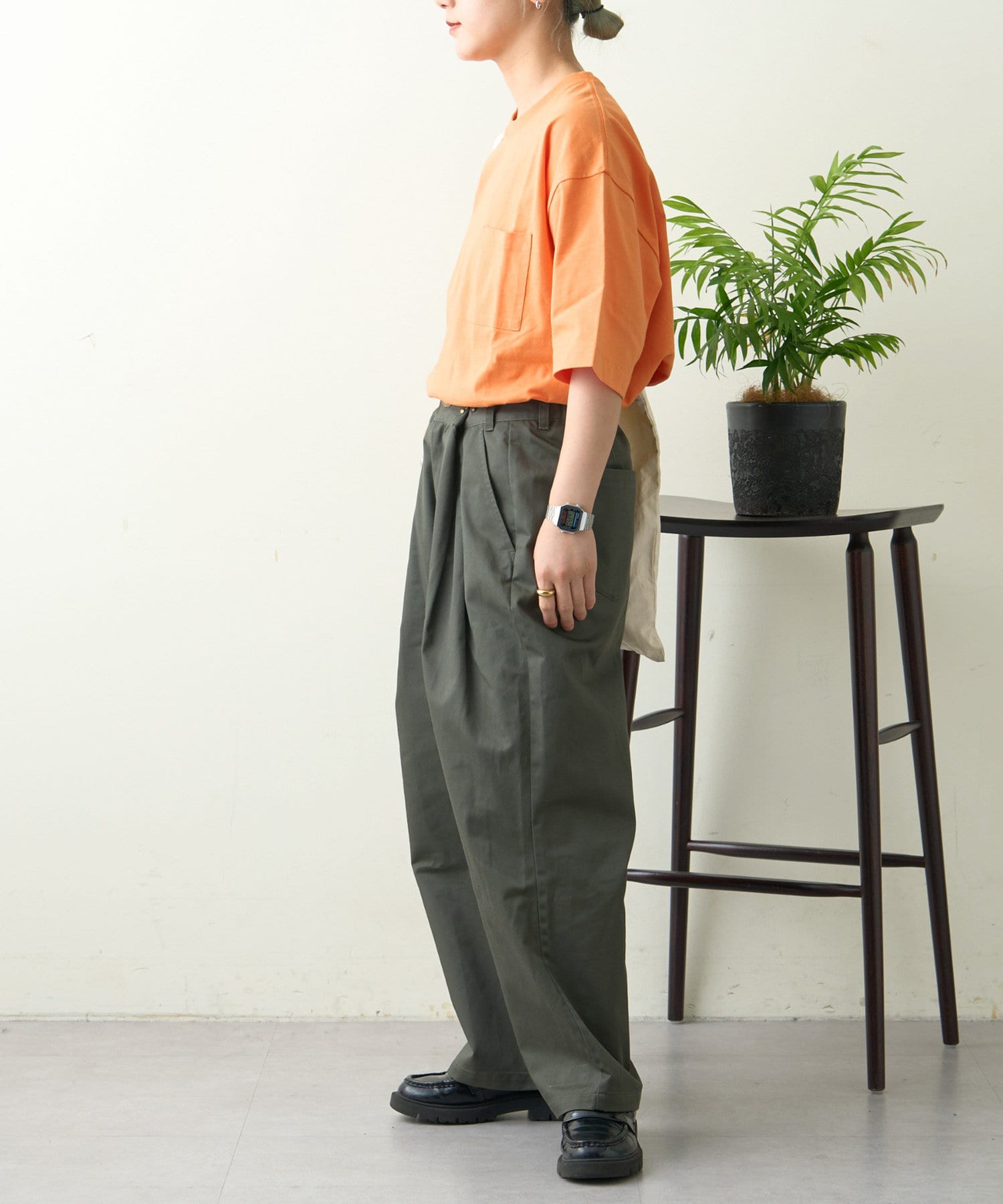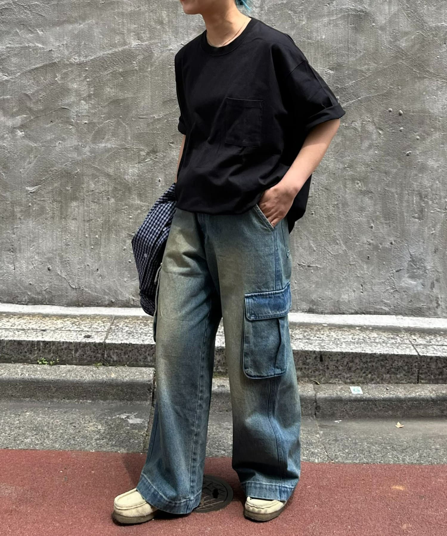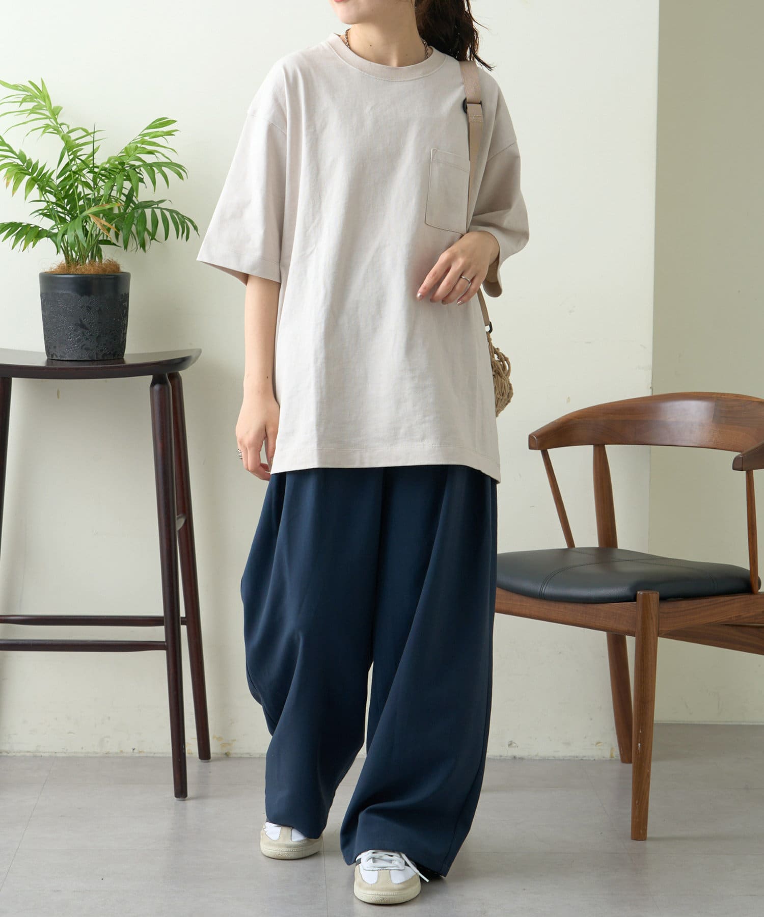・シンプルなデザインで着回しやすい定番のポケットTシャツ
