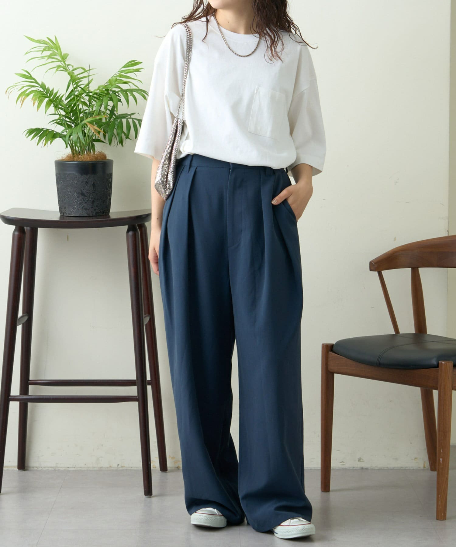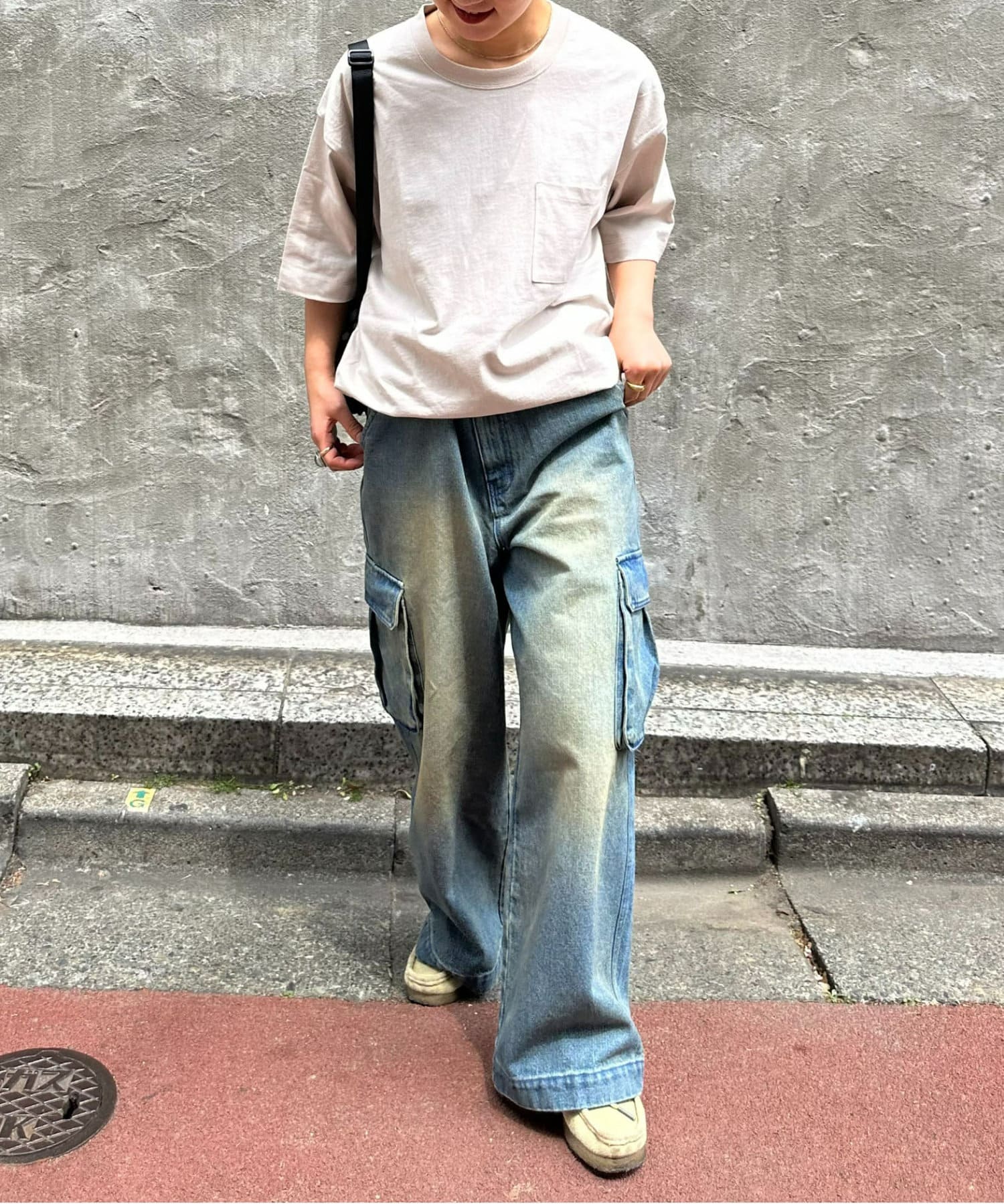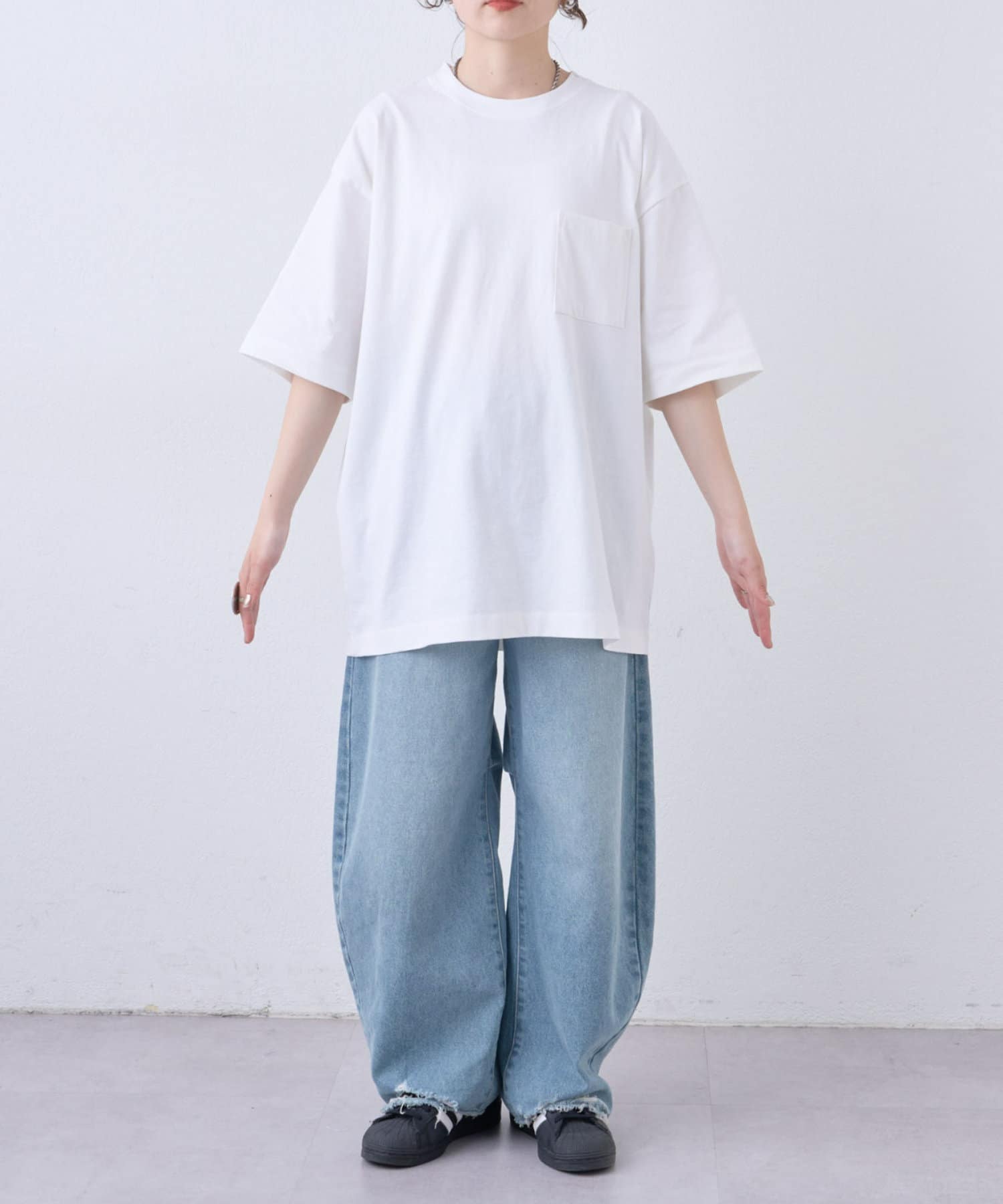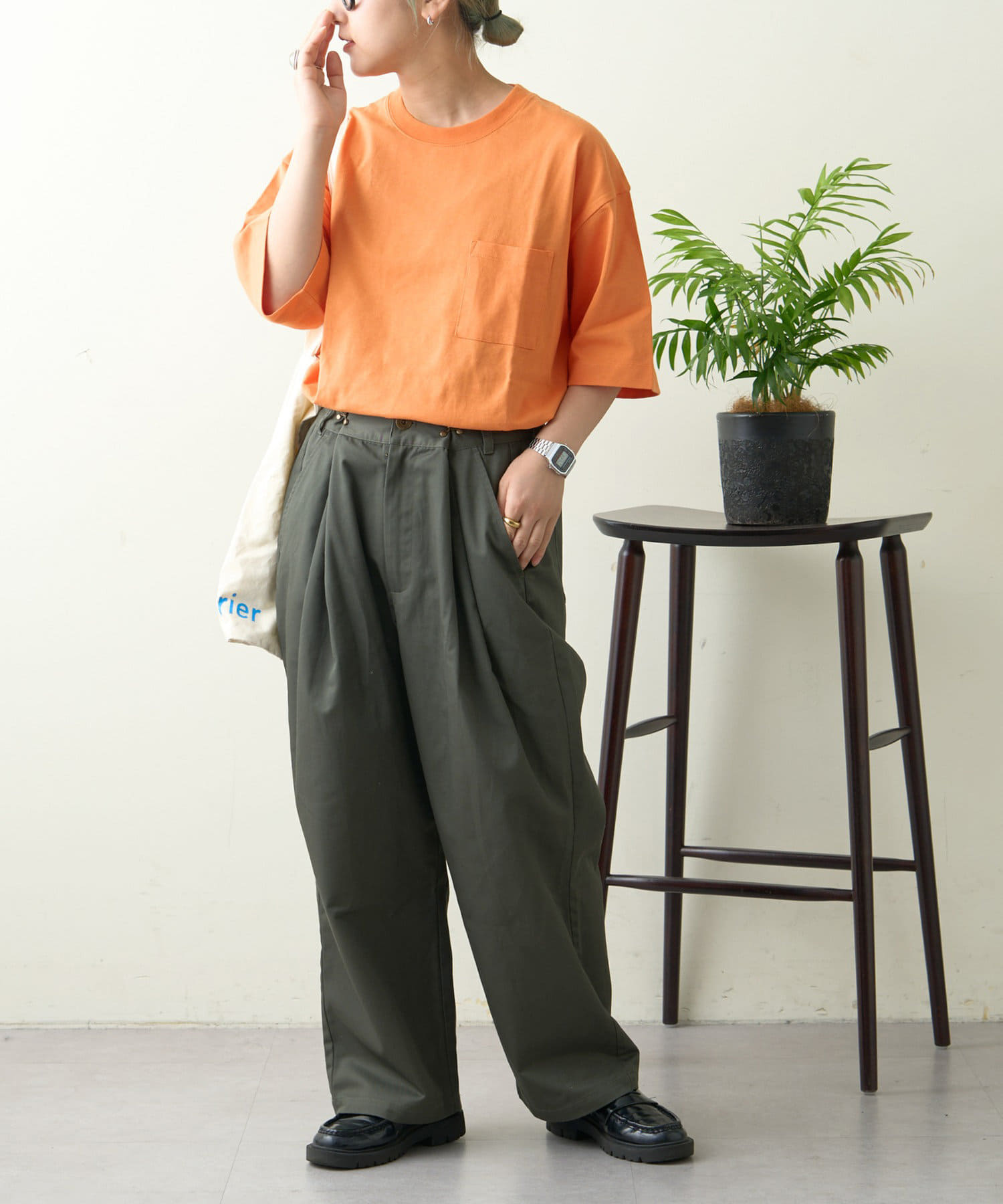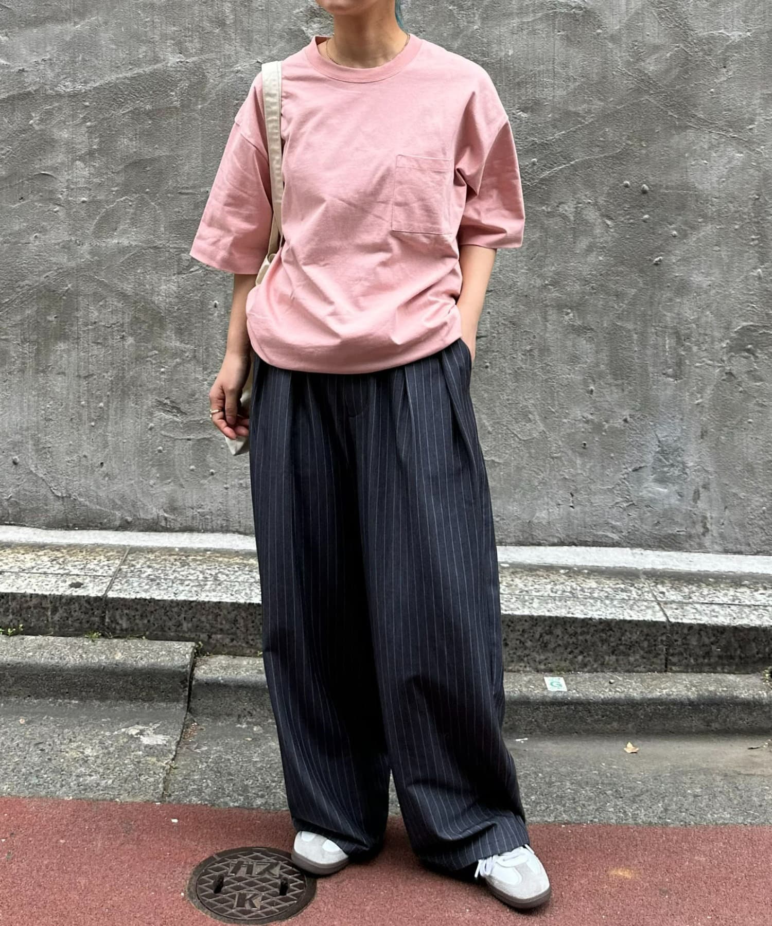 ・シンプルなデザインで着回しやすい定番のポケットTシャツ