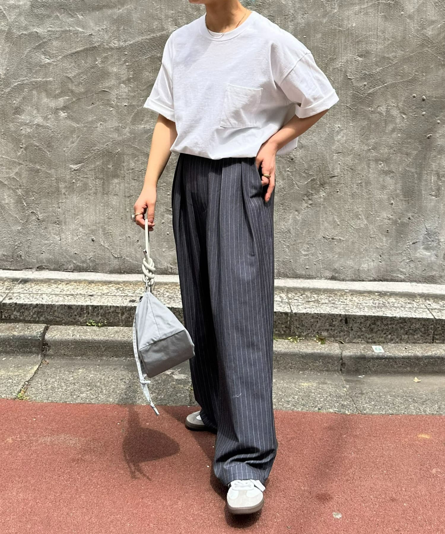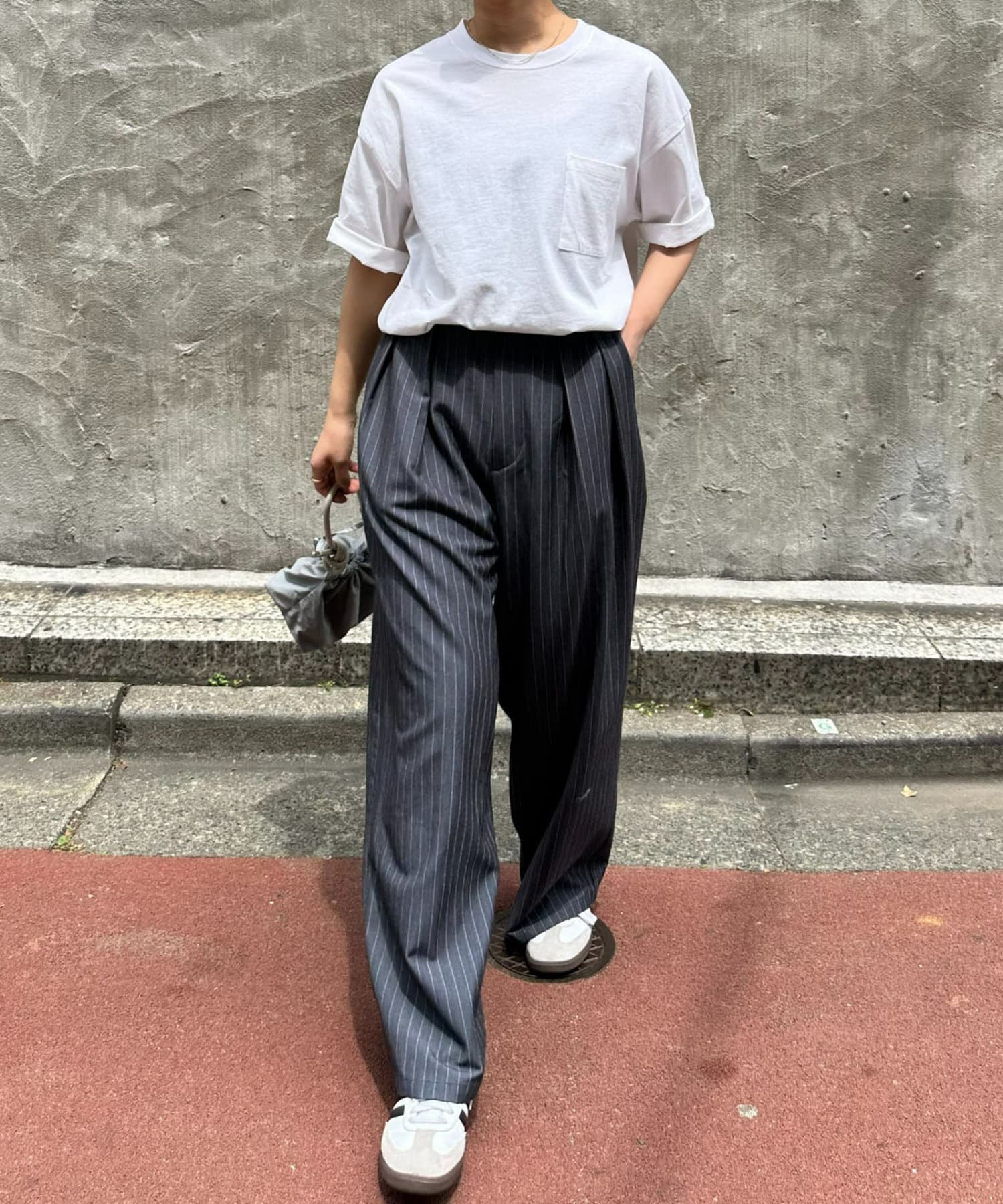 ・デニムやスラックスと合わせた定番スタイルから、チノパンやハーフパンツを合わせたラフな着こなしも良いですね