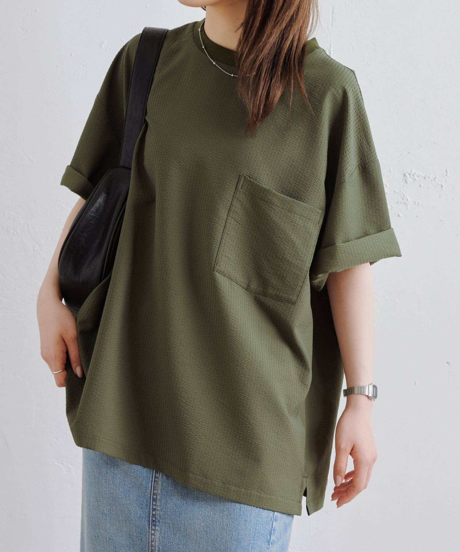 ・伸縮性のある生地感でストレスフリーな着心地です。