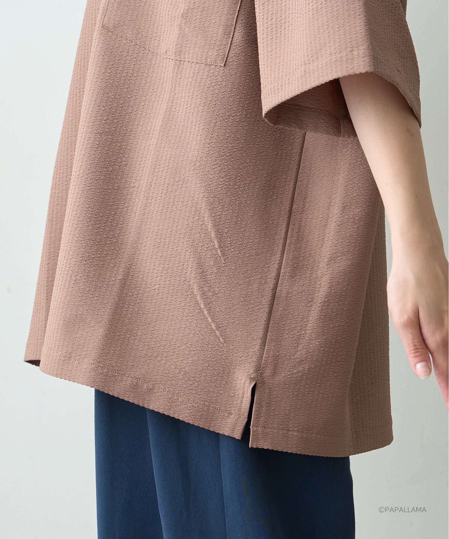 ・さらりとした感触で肌触りもよく、涼しくて快適な着心地のシアサッカー素材を使用。
