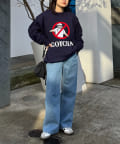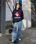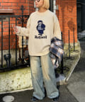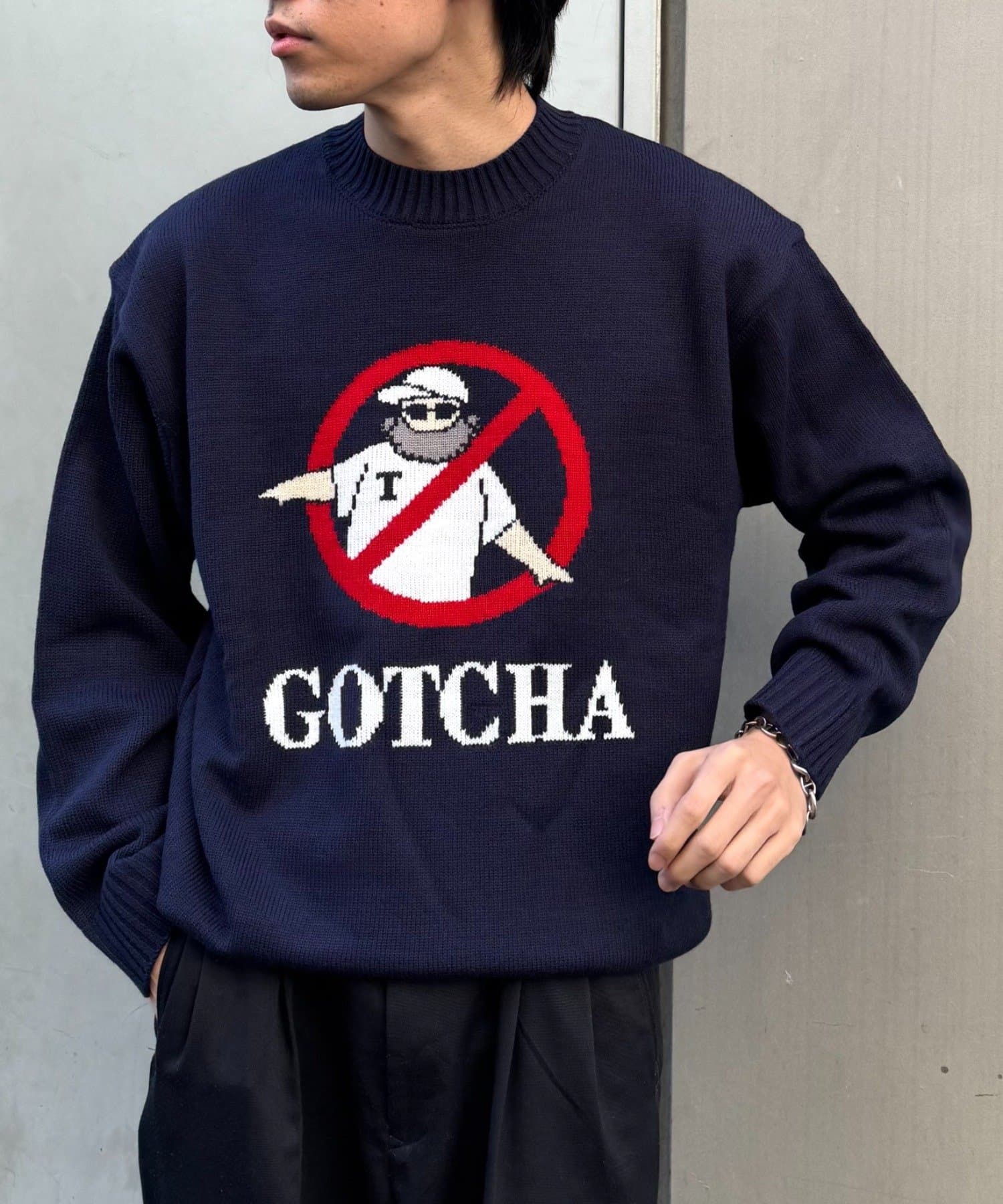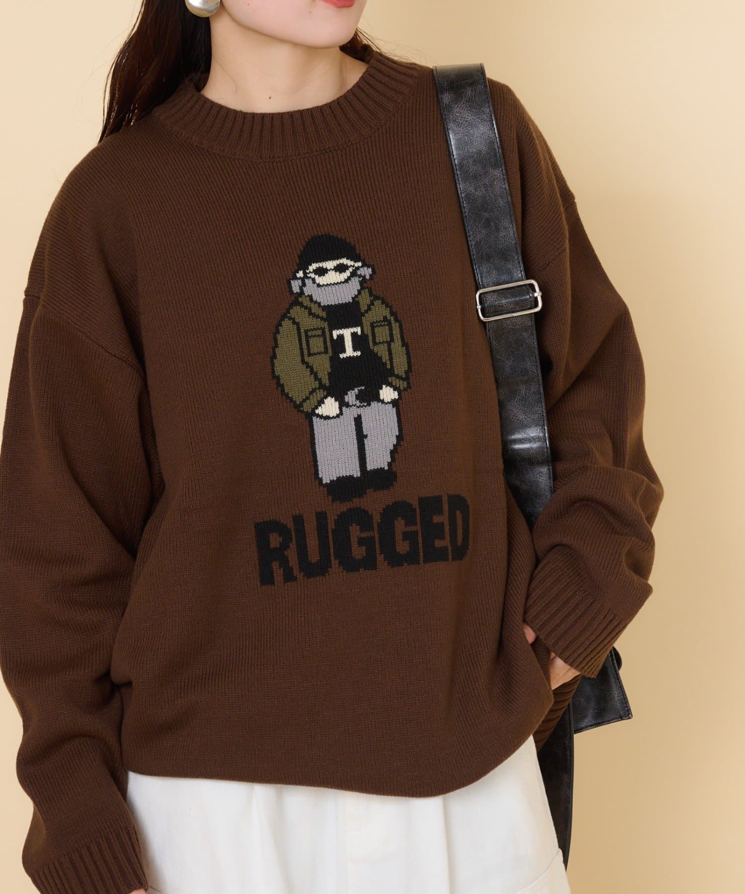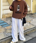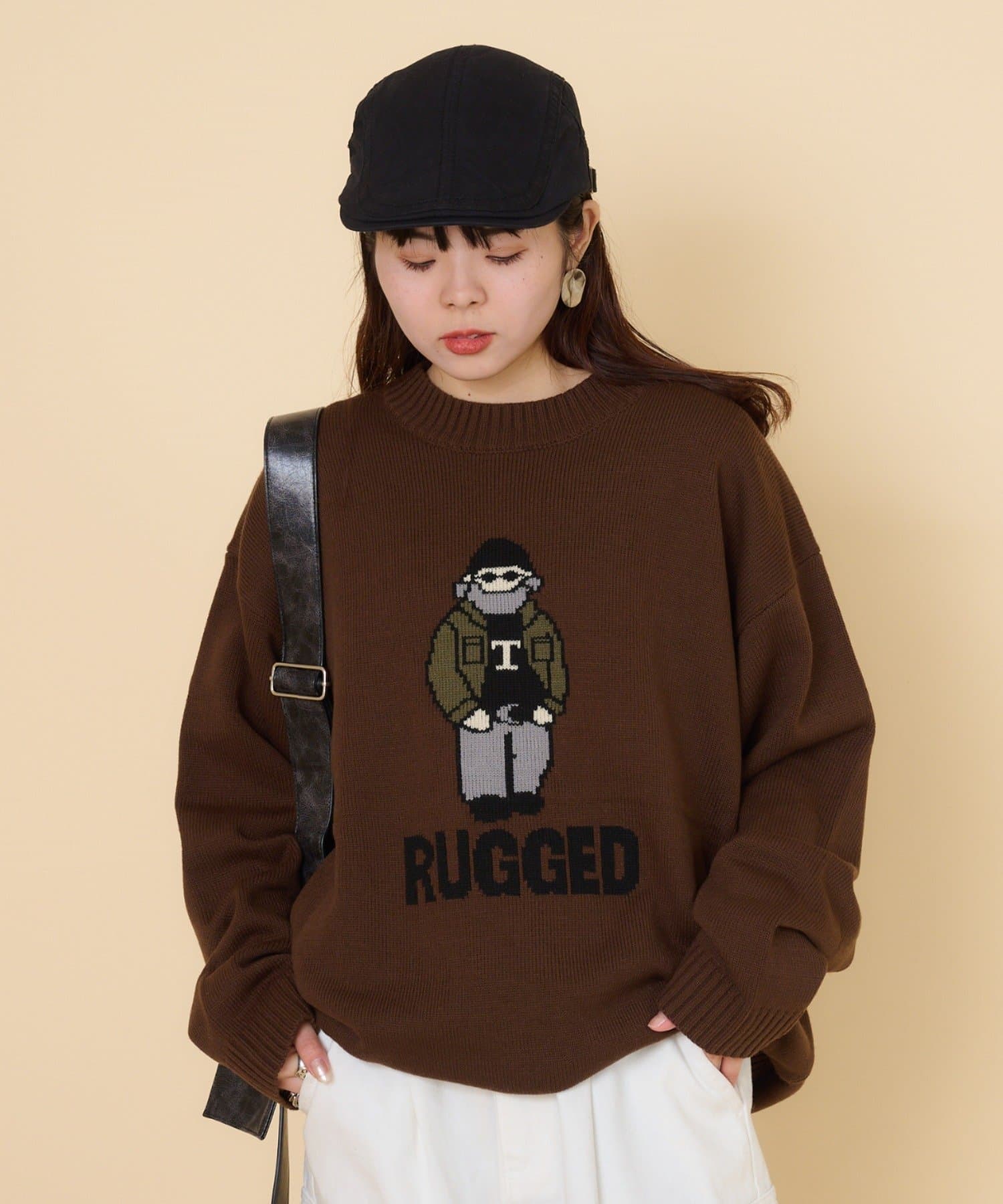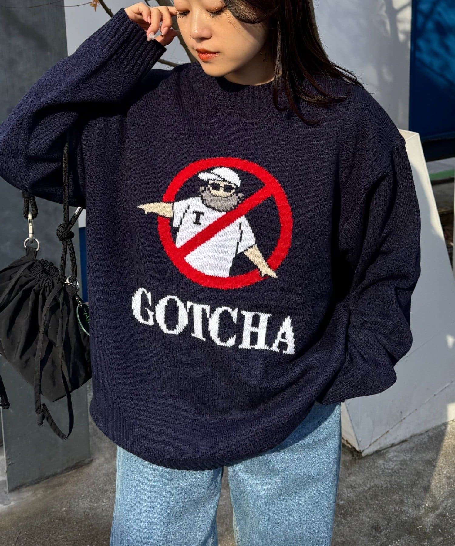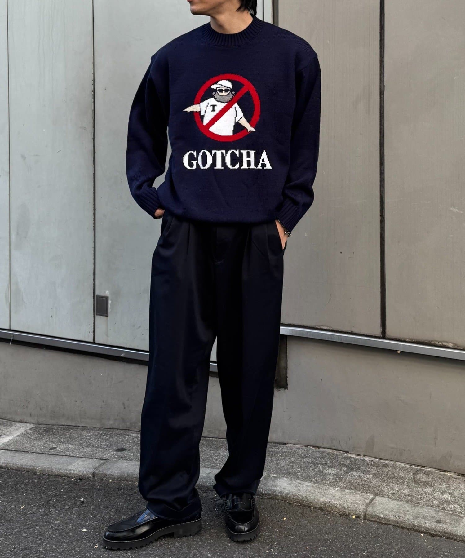 オジサンのプリントが存在感あるのでシンプルなボトムで合わせると、よりニットの可愛さが際立ちます◎