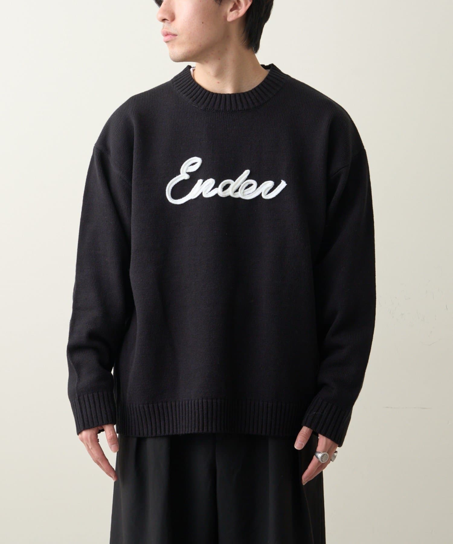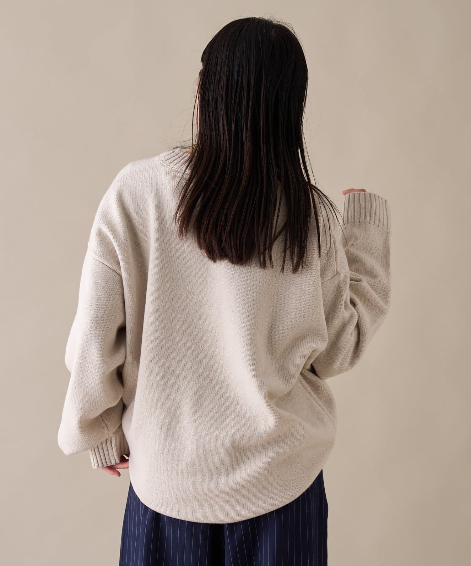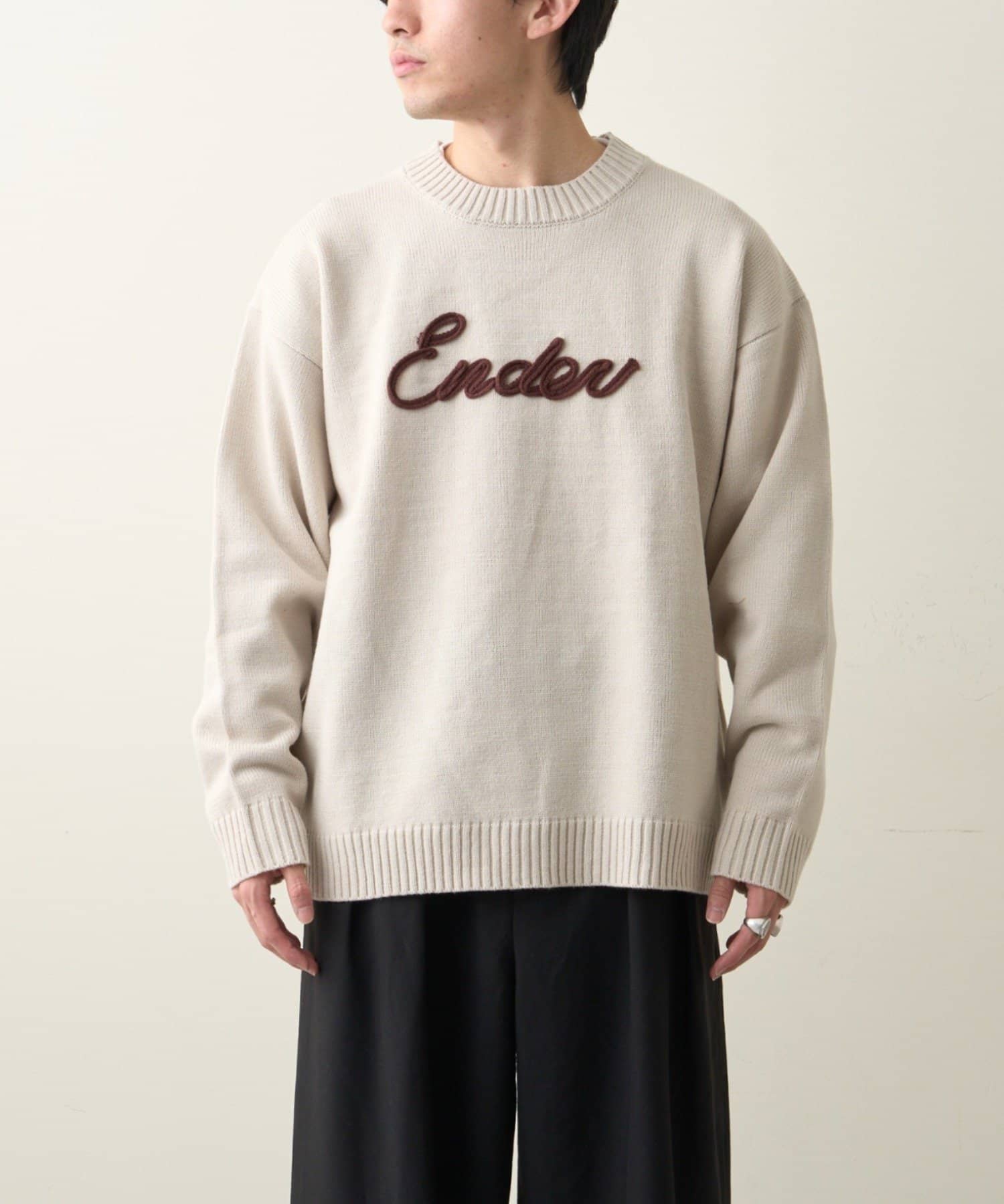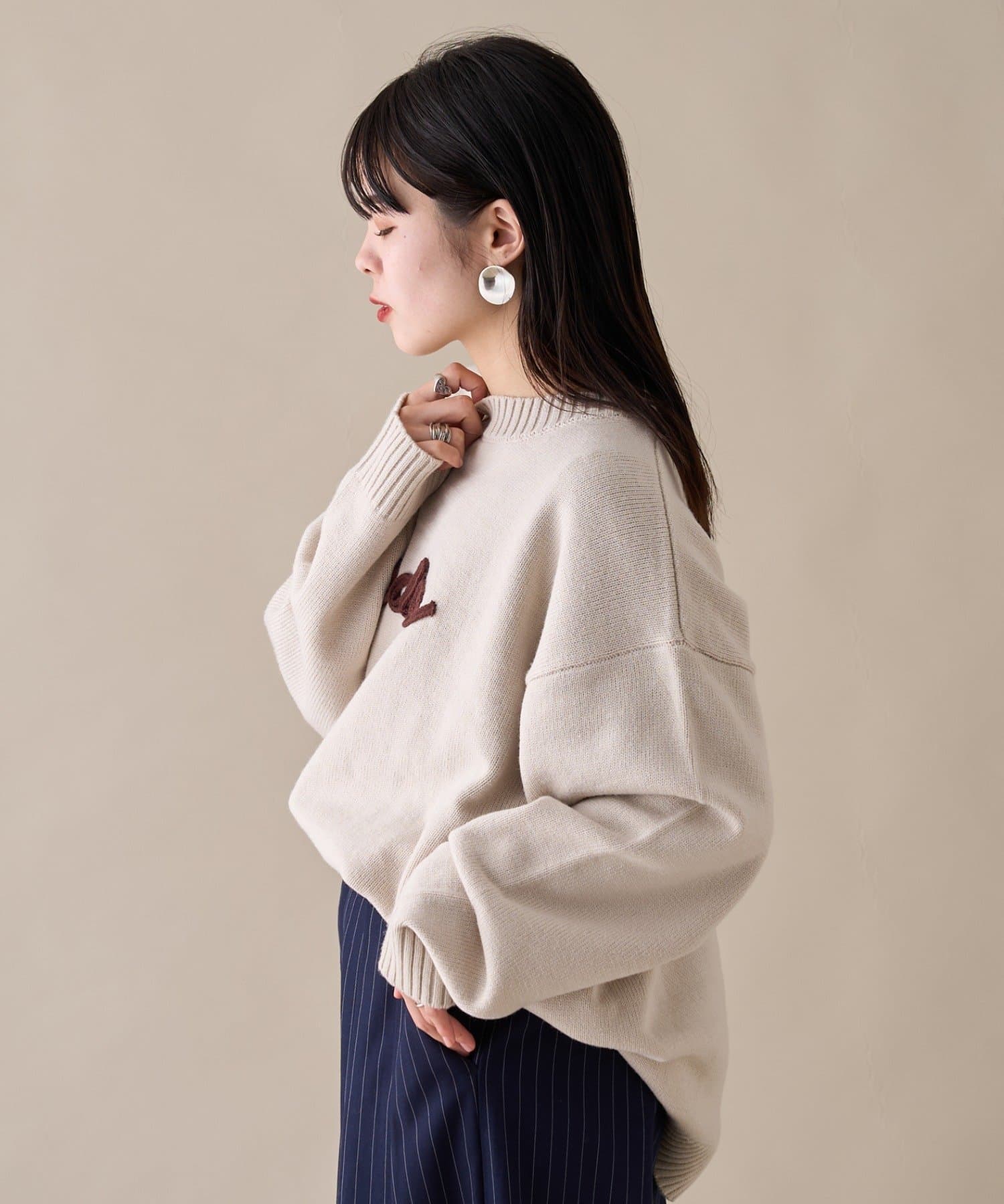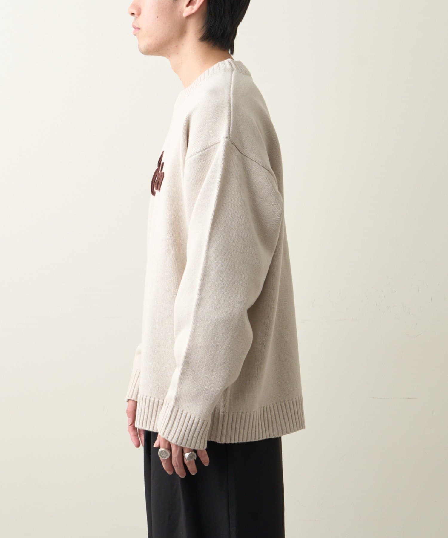【ユニセックス】ロープ刺繍ビックシルエットクルーネックニット
