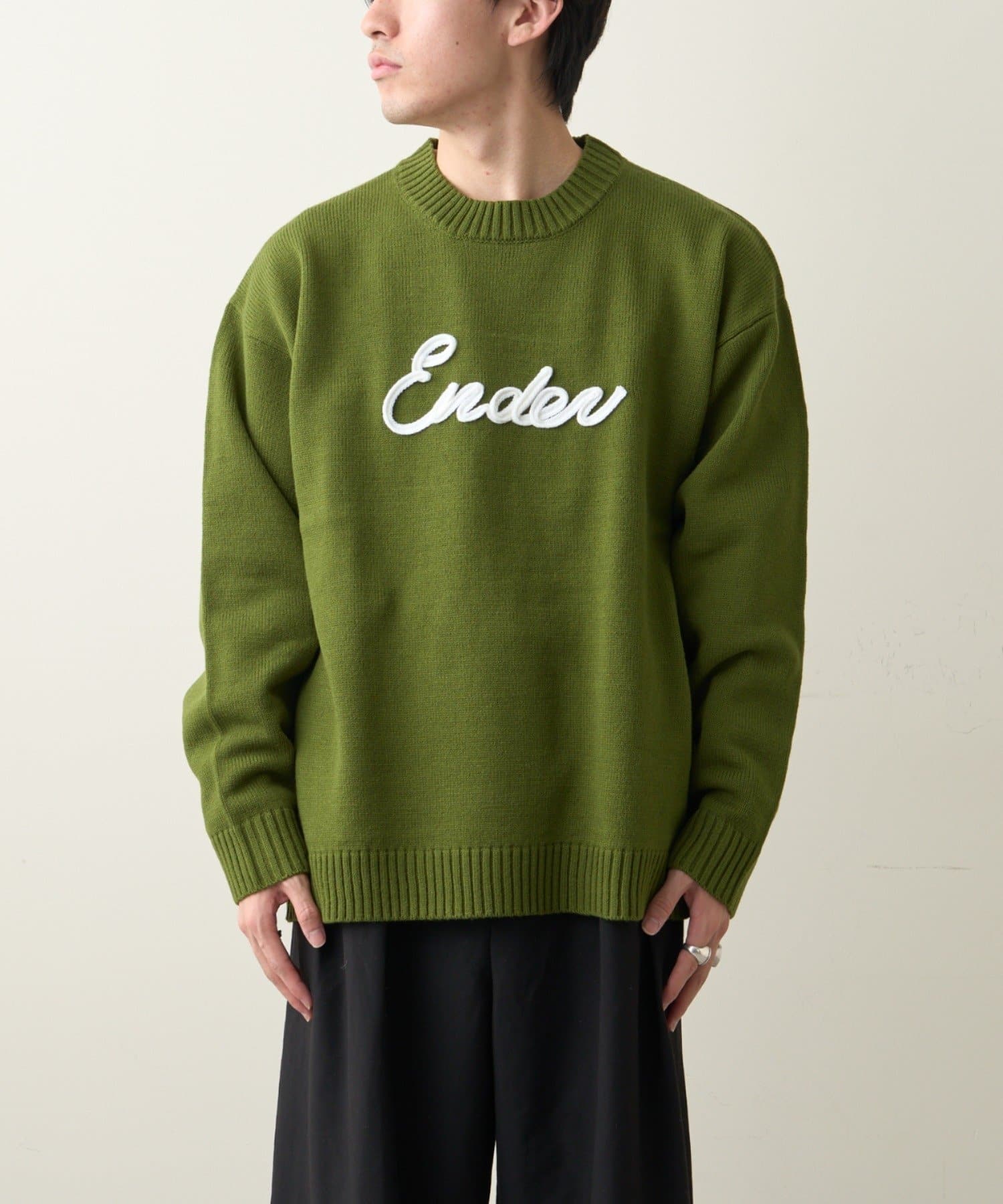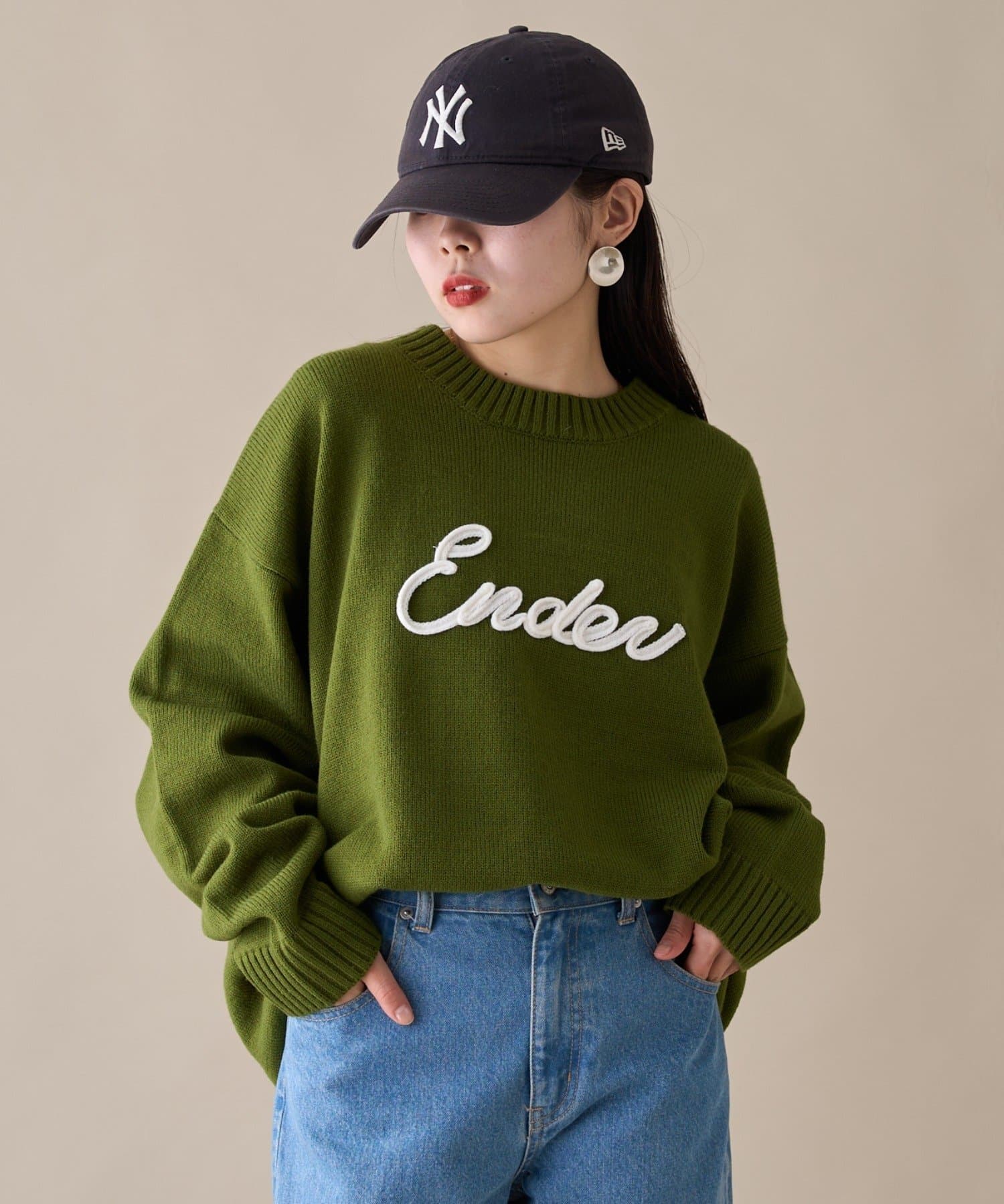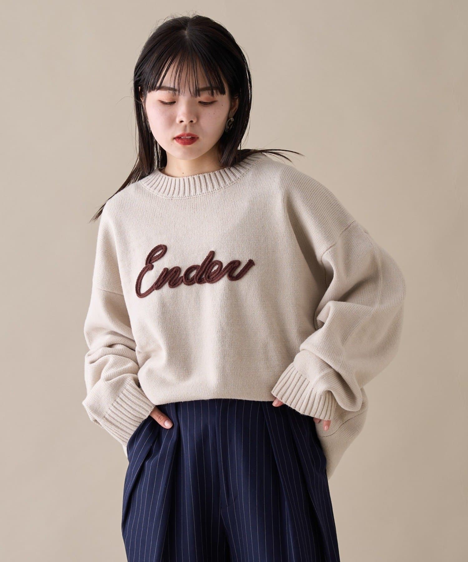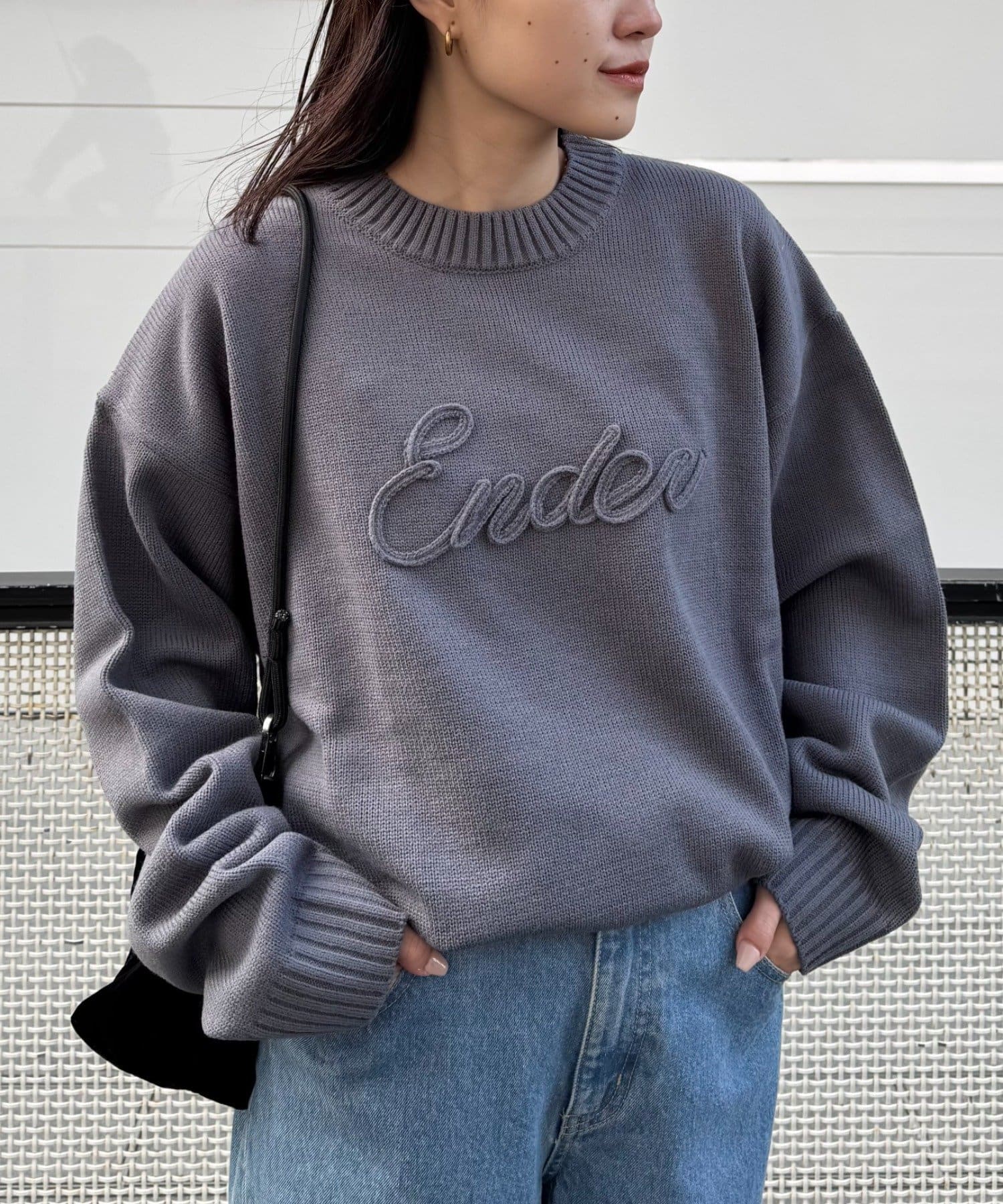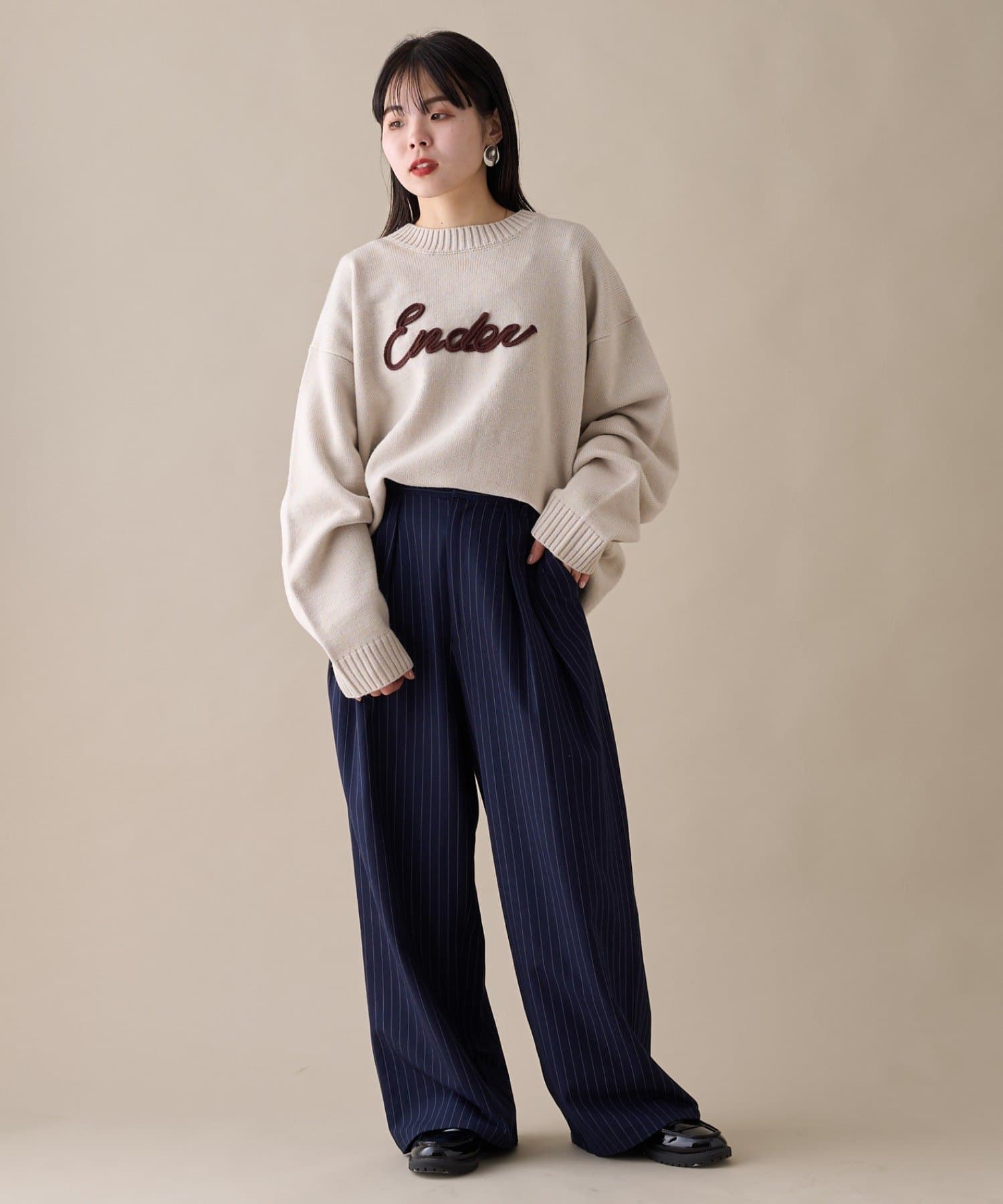【ユニセックス】ロープ刺繍ビックシルエットクルーネックニット
