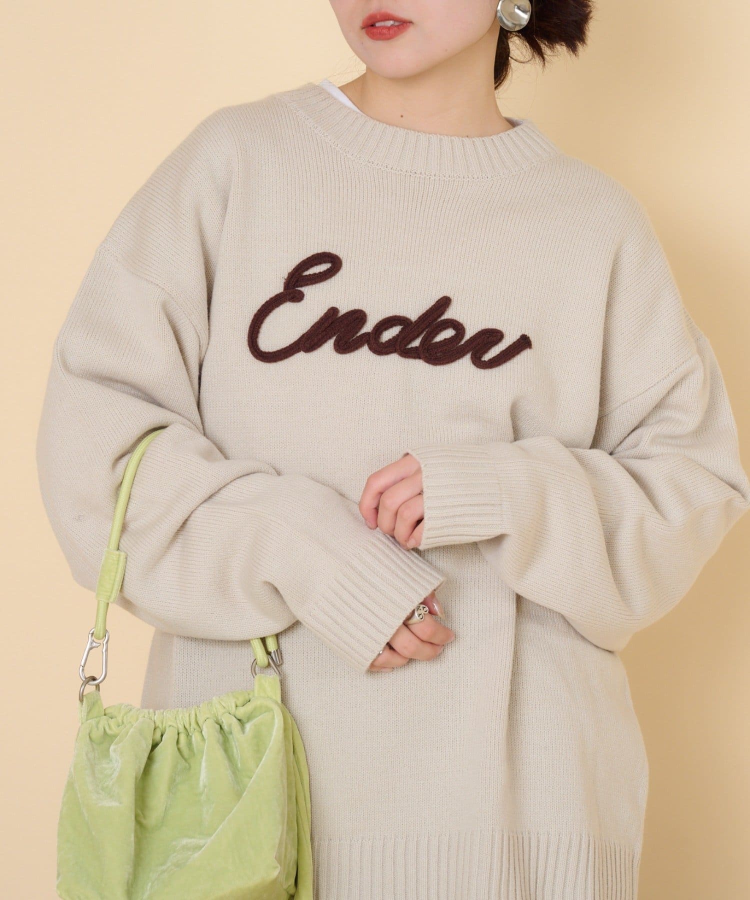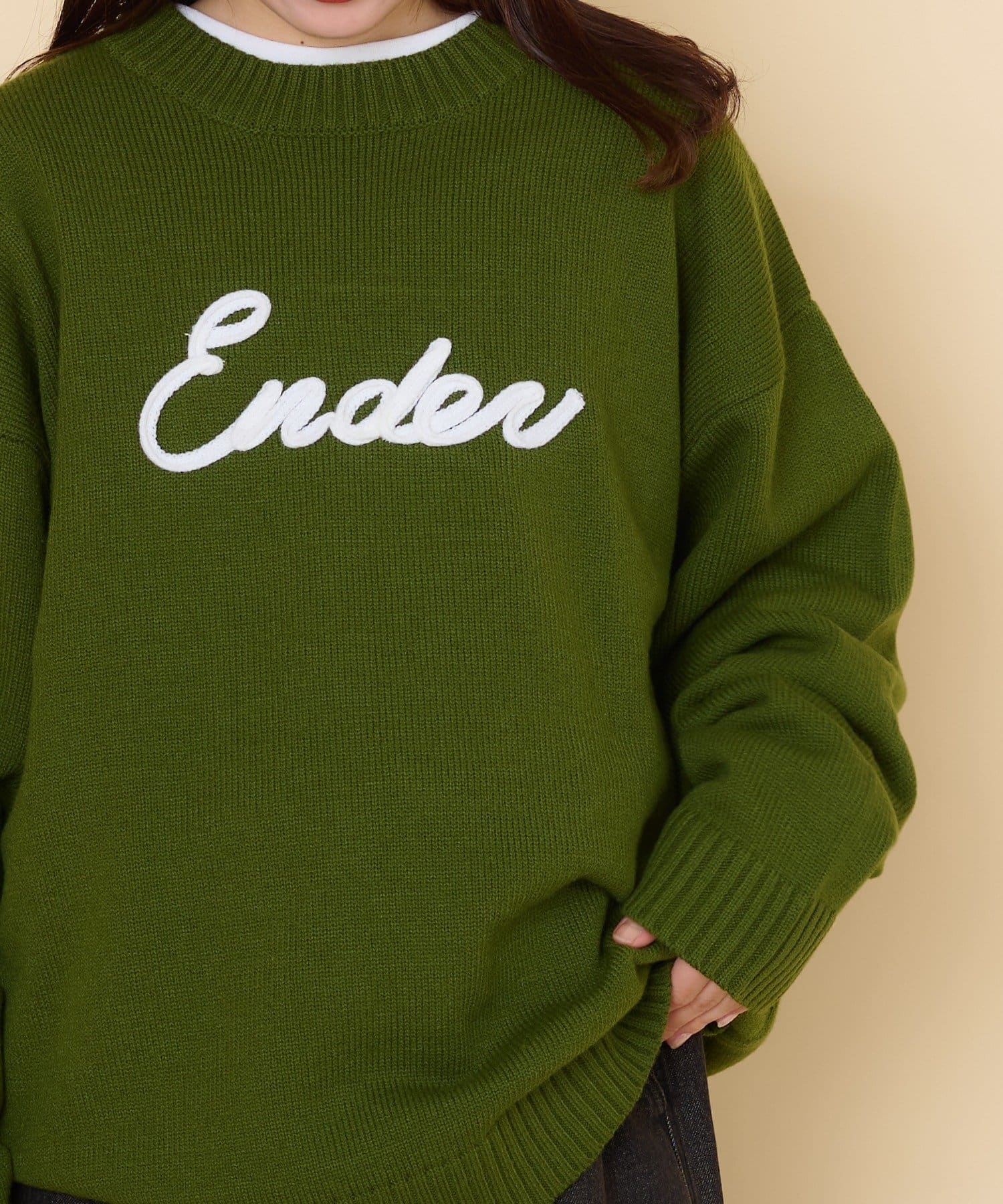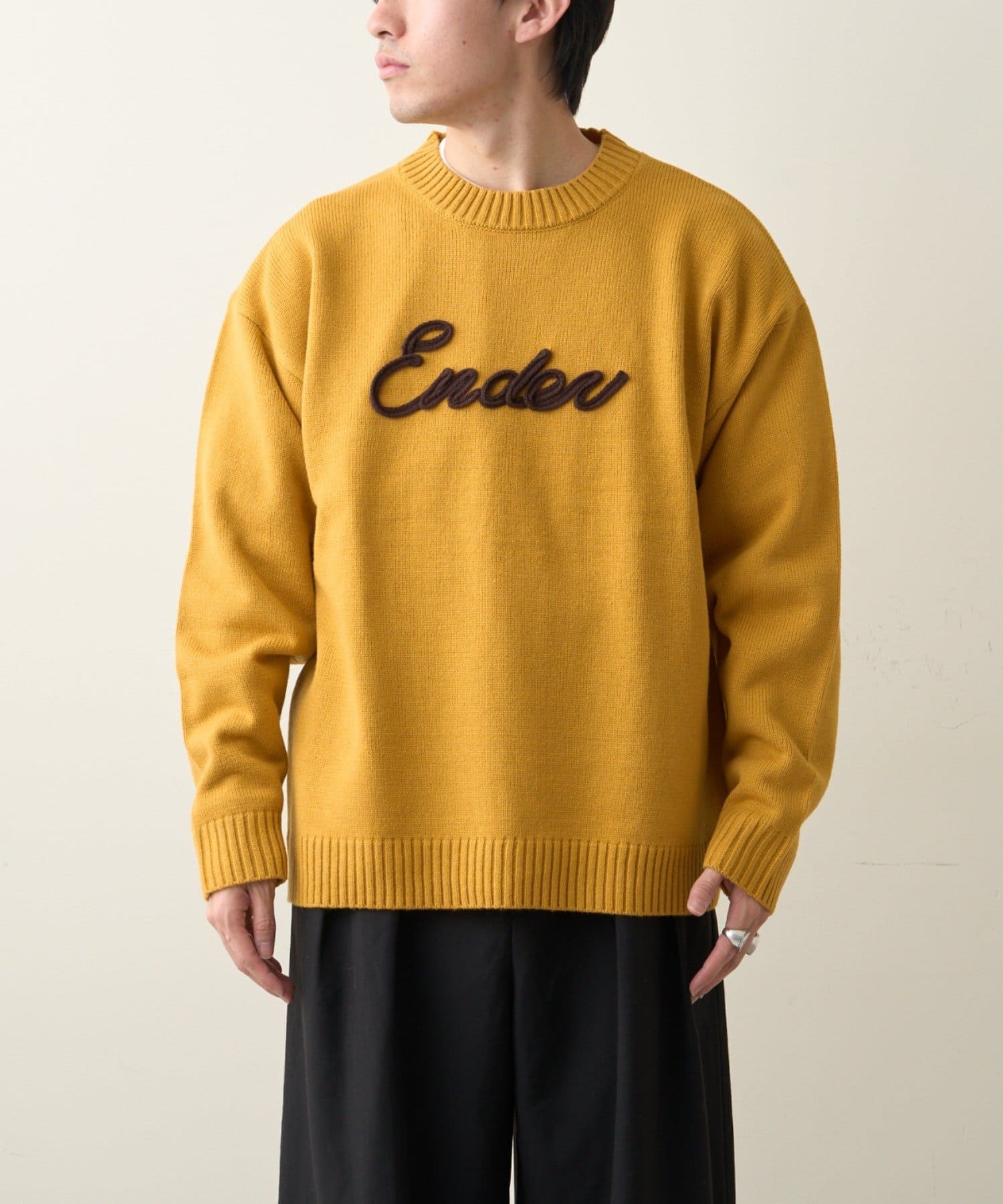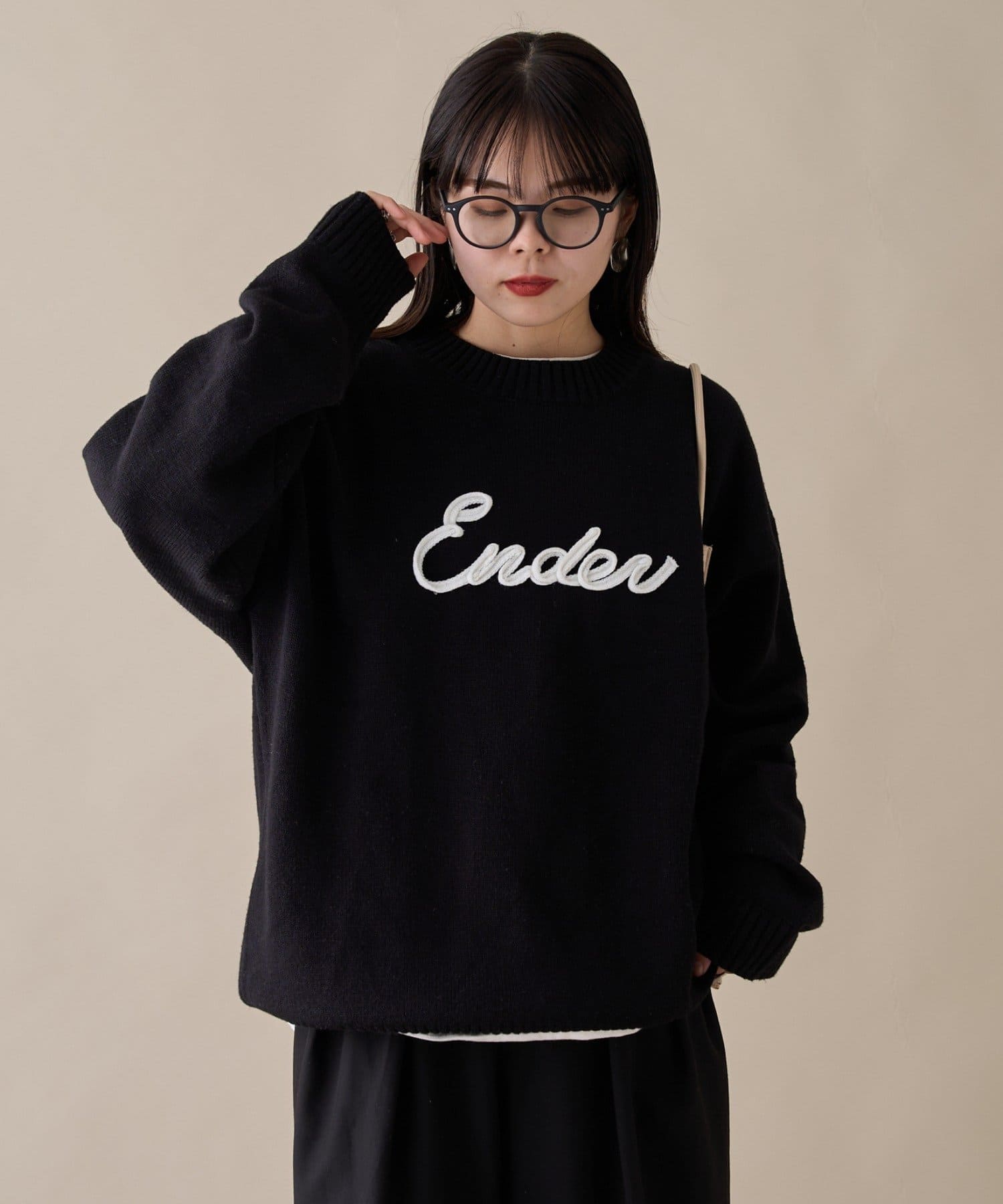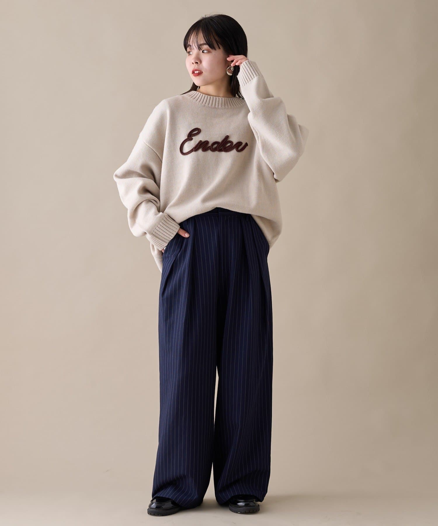 【ユニセックス】ロープ刺繍ビックシルエットクルーネックニット