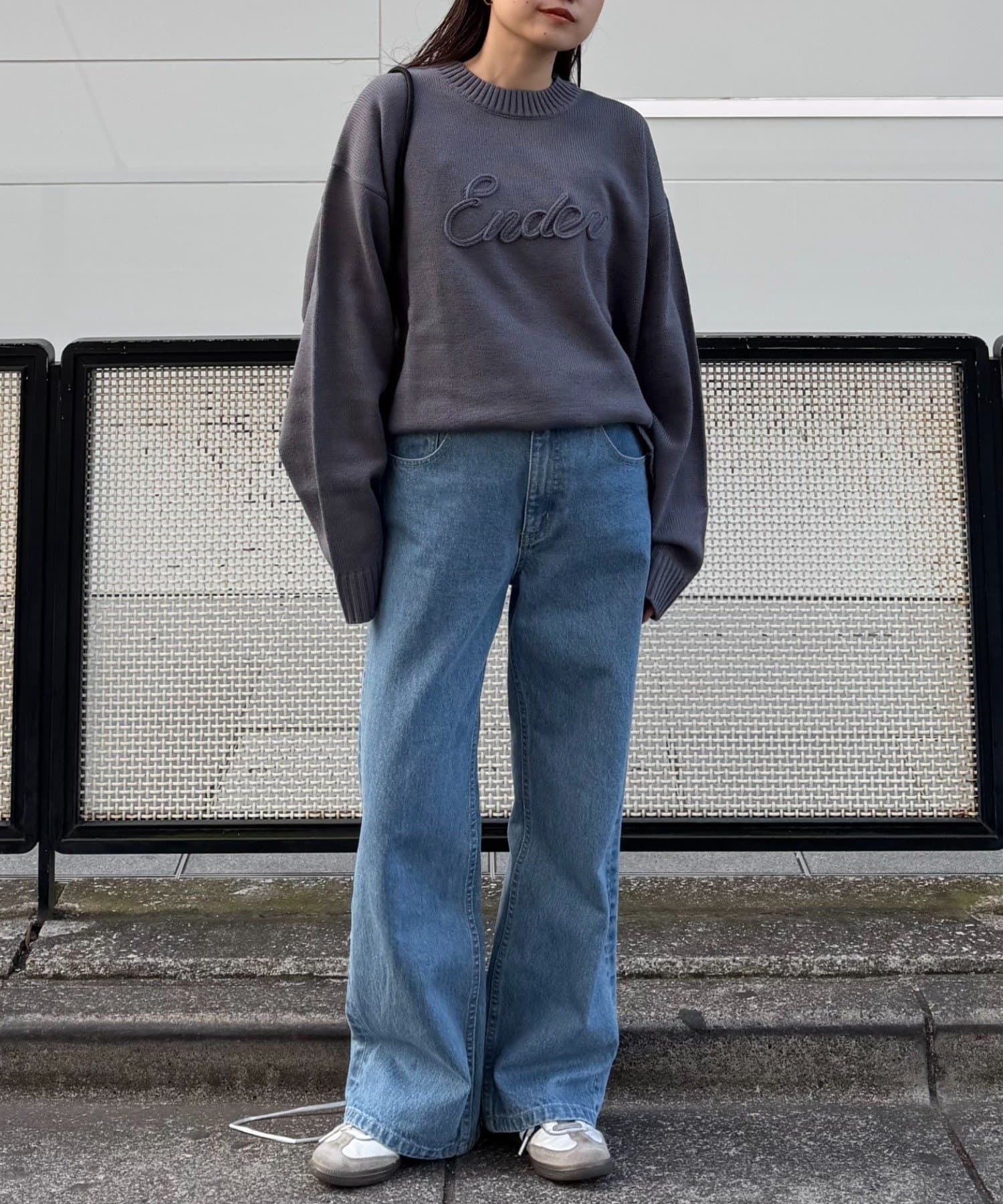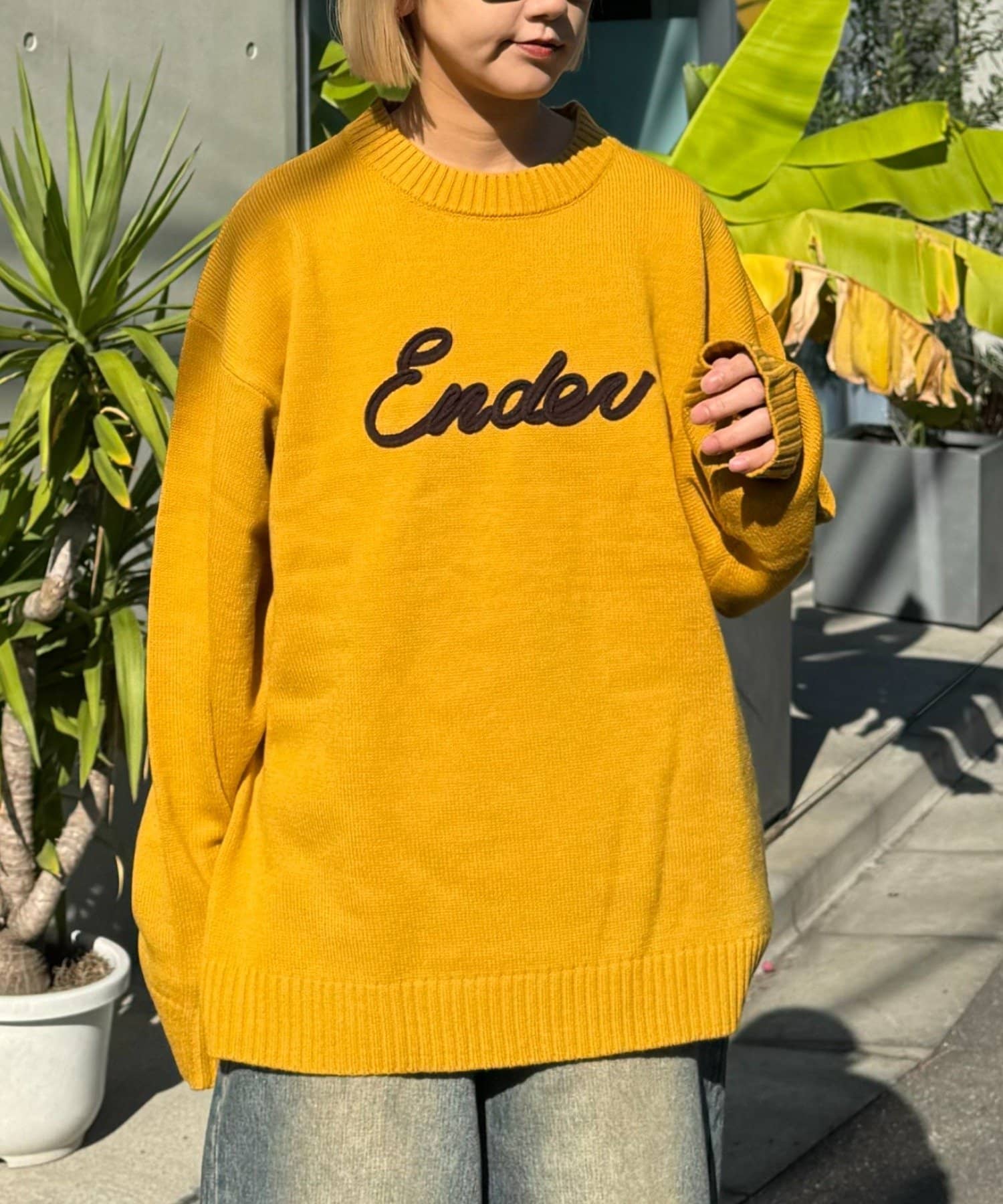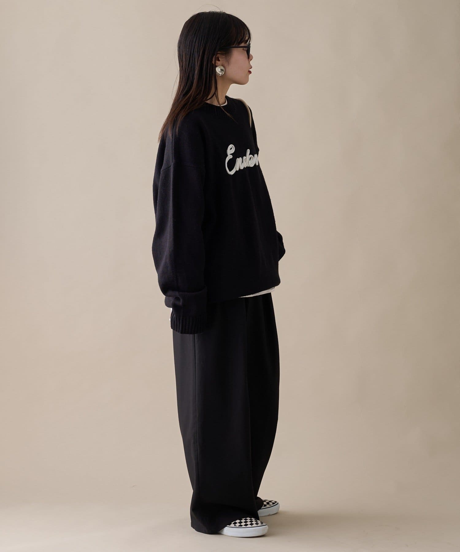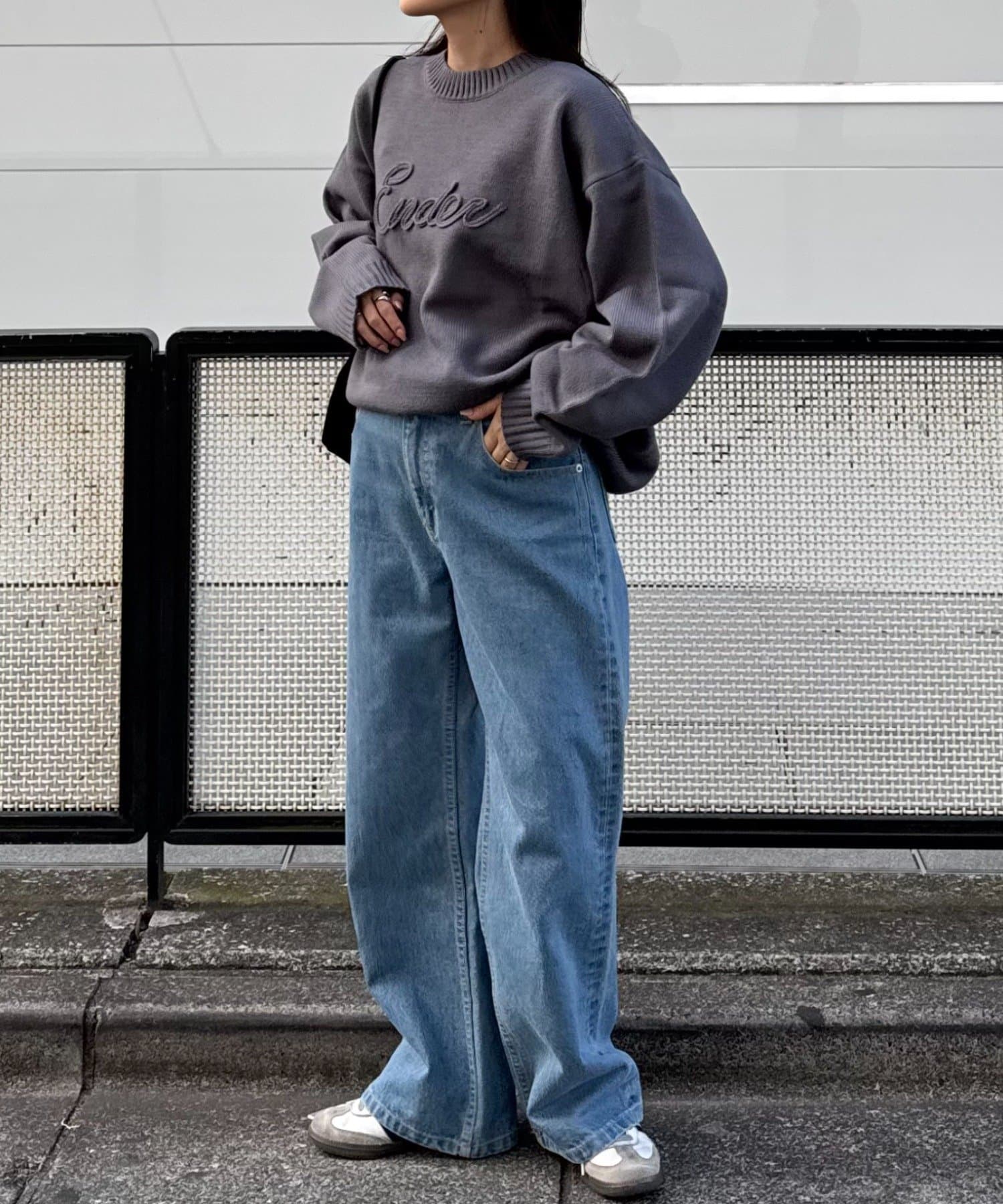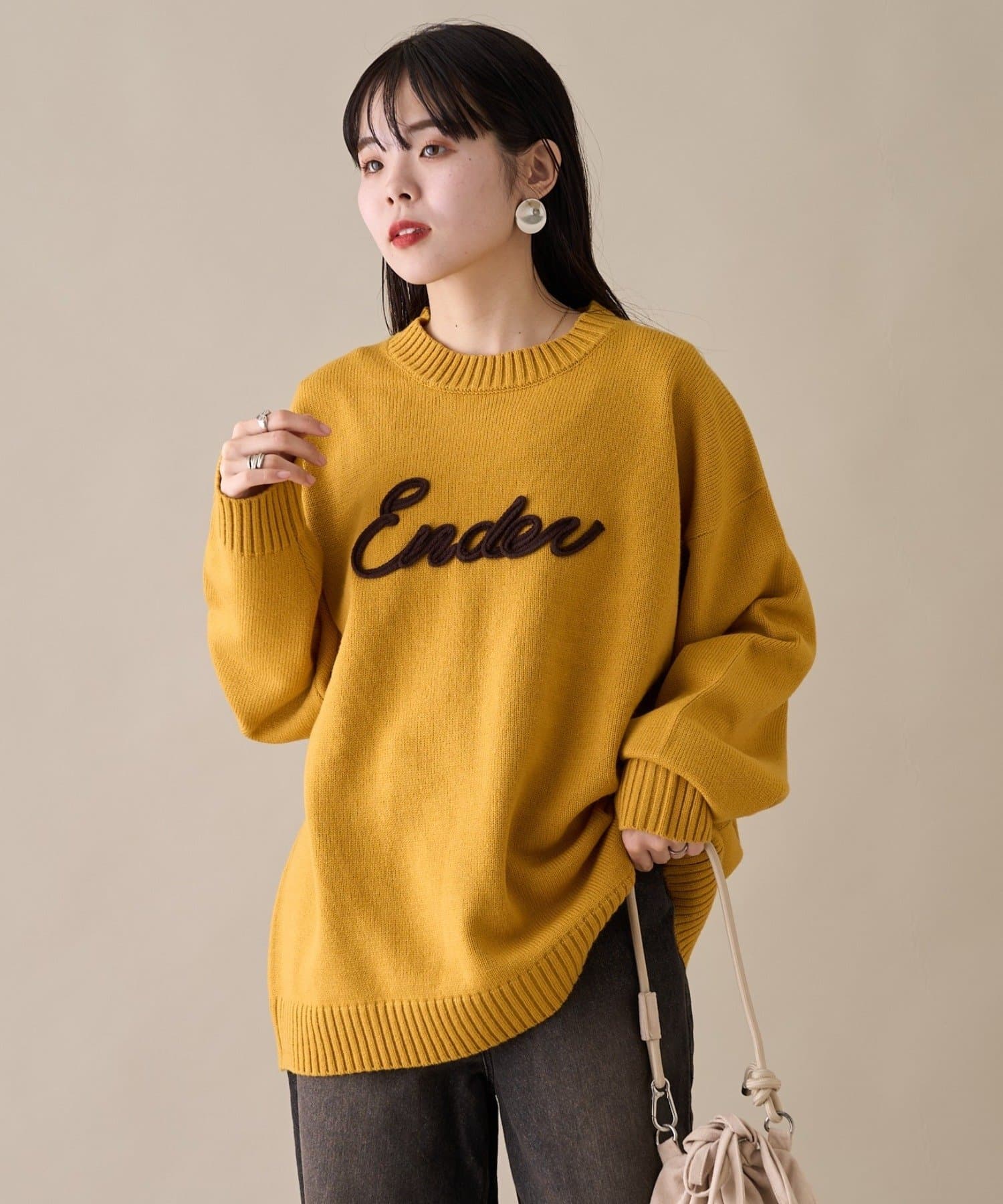 【ユニセックス】ロープ刺繍ビックシルエットクルーネックニット