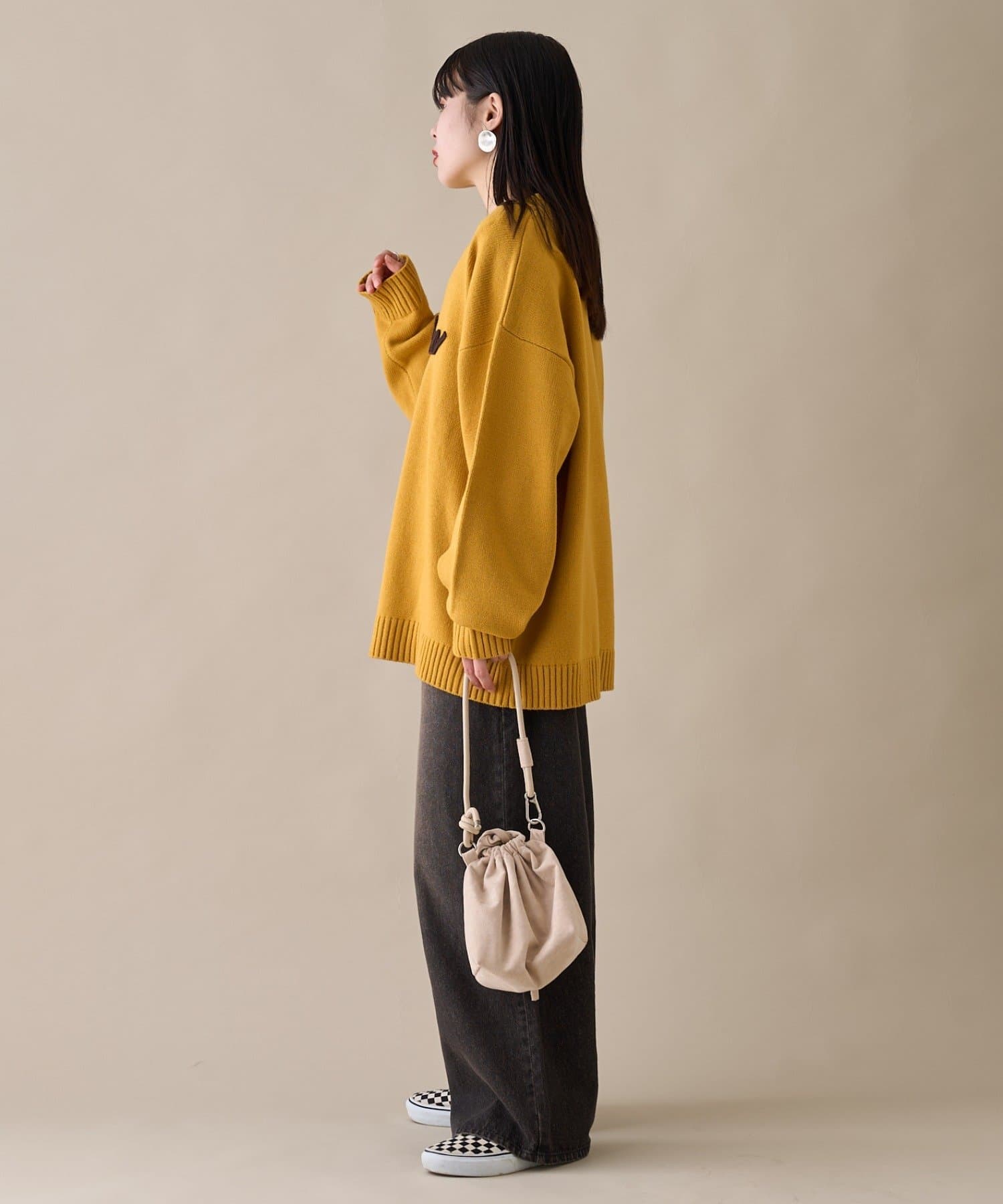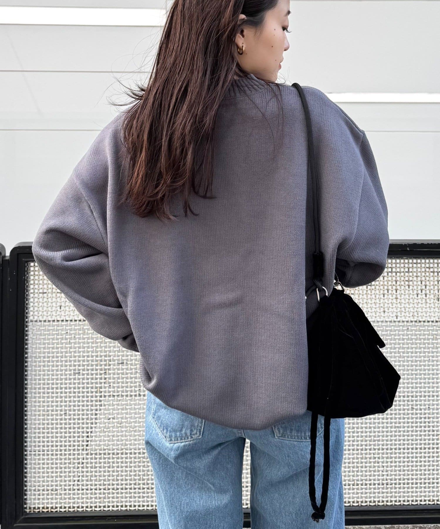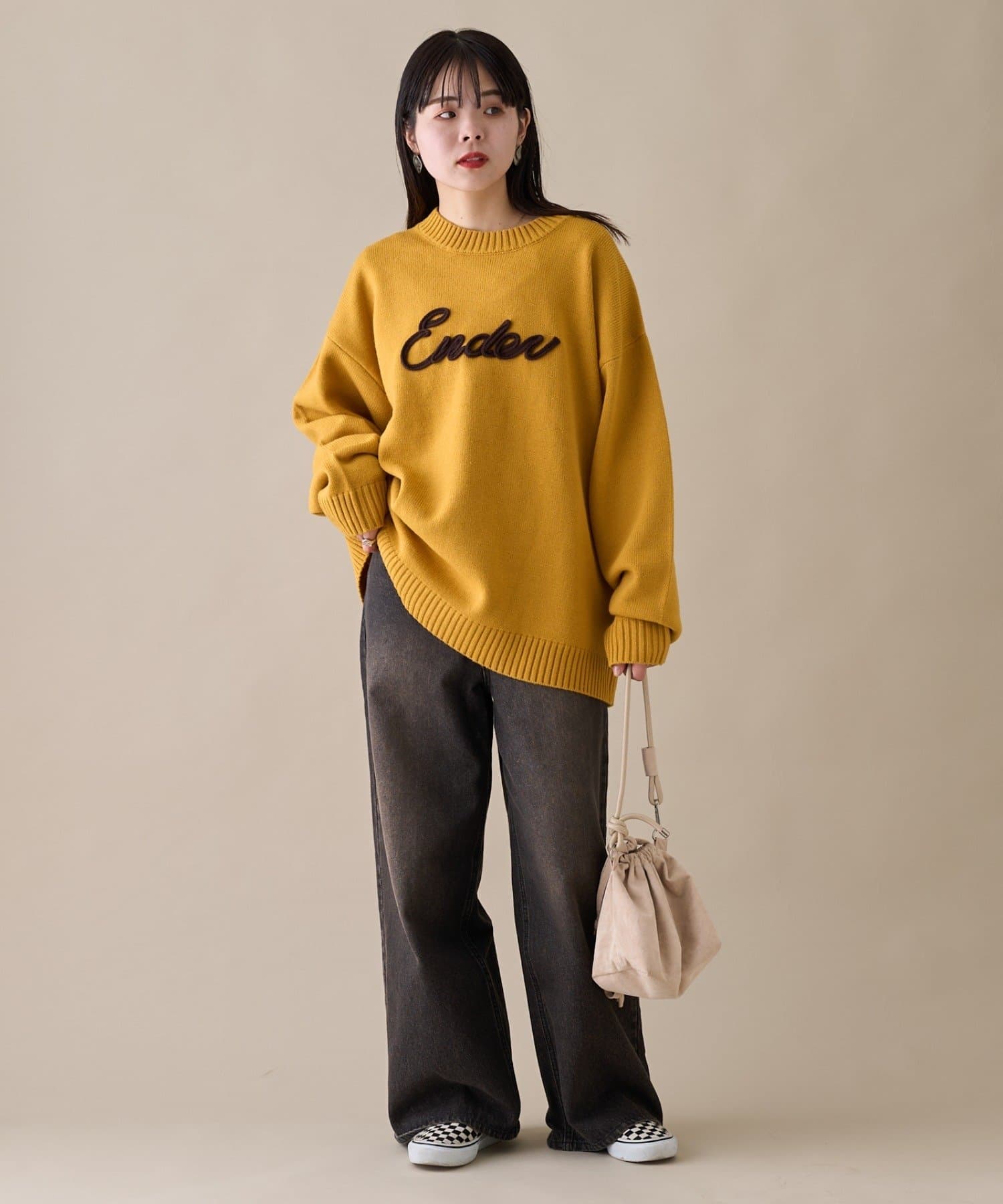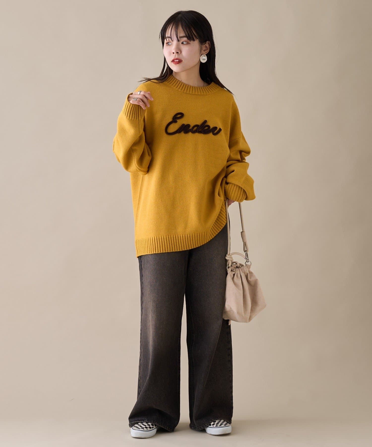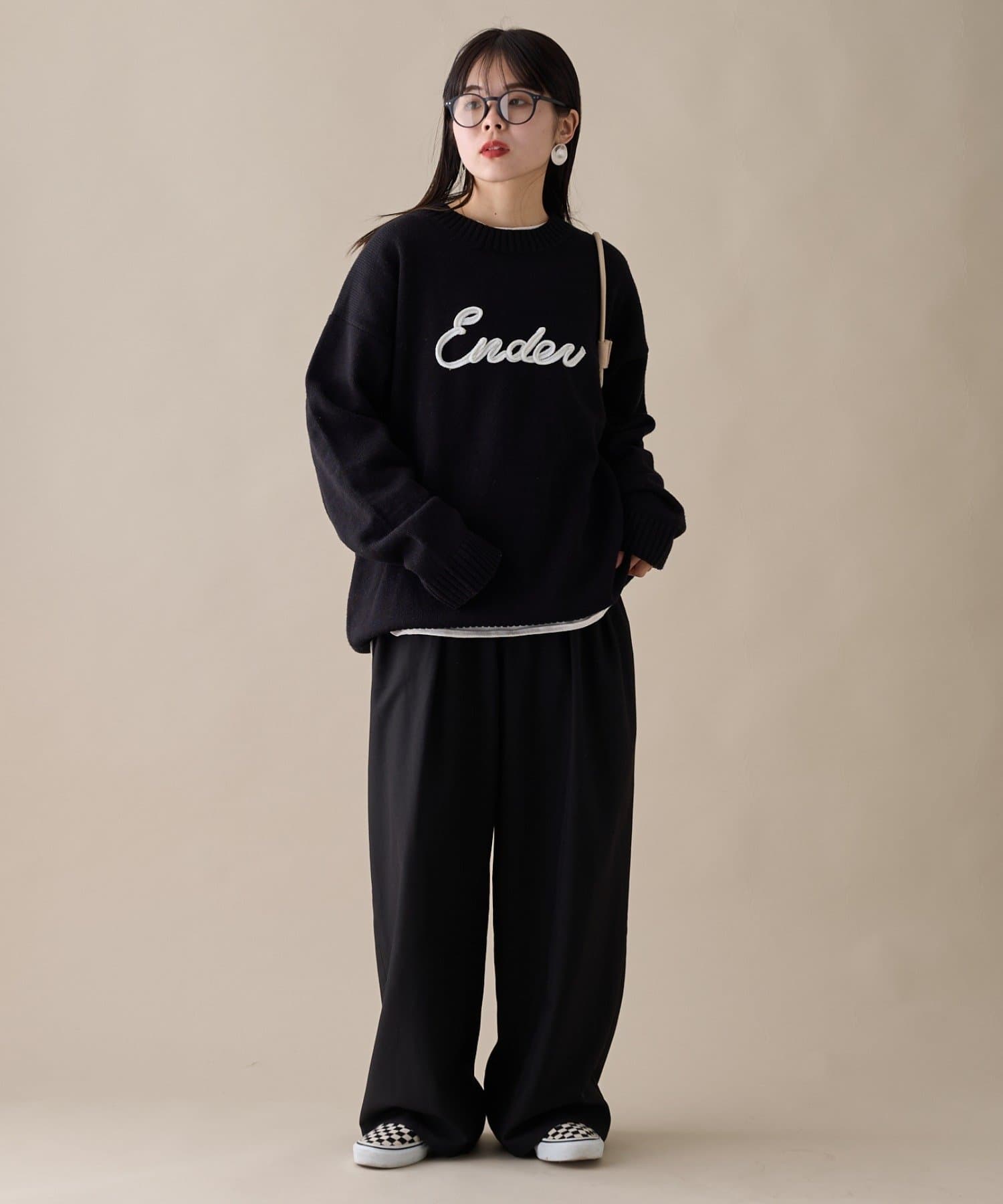 【ユニセックス】ロープ刺繍ビックシルエットクルーネックニット