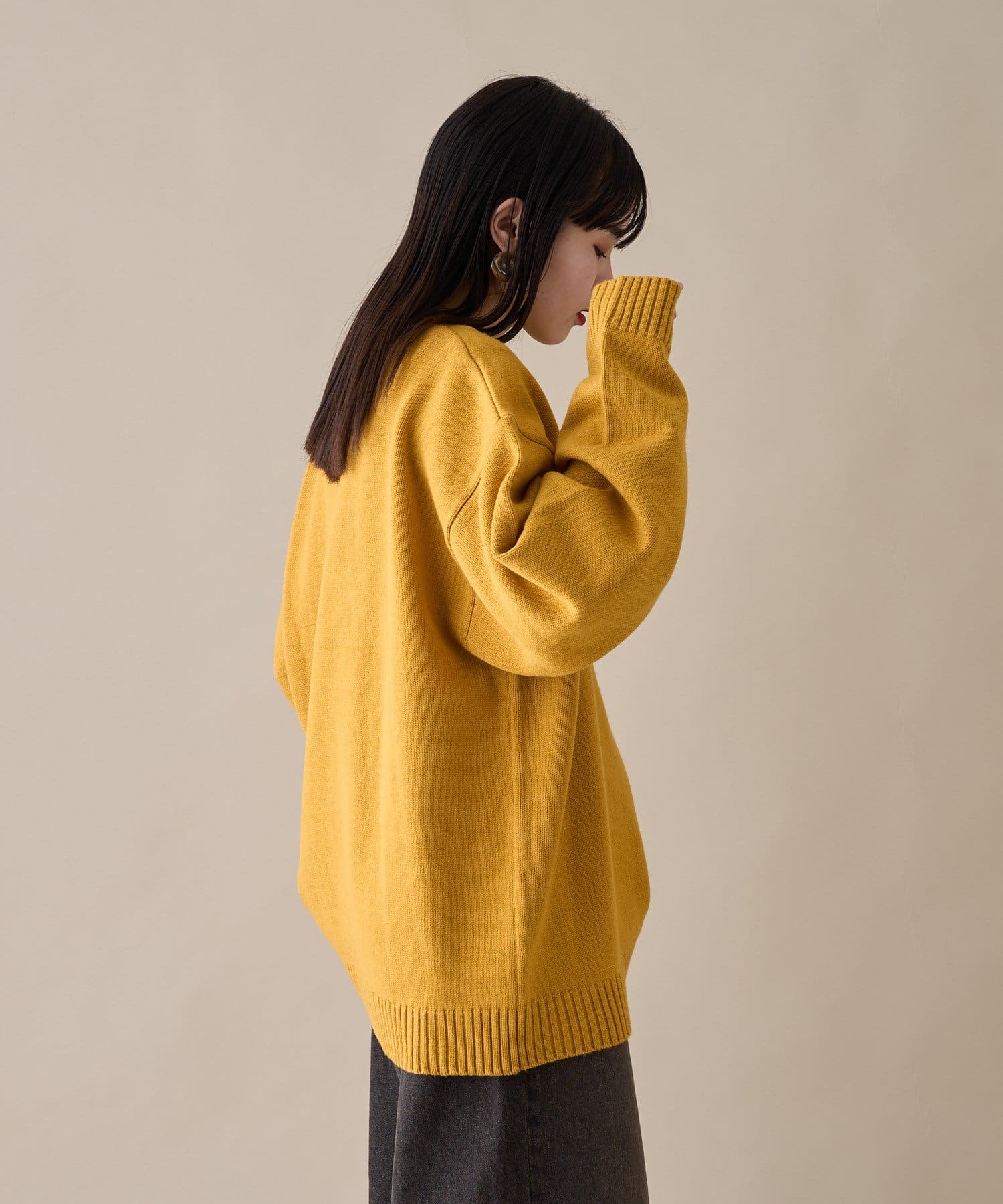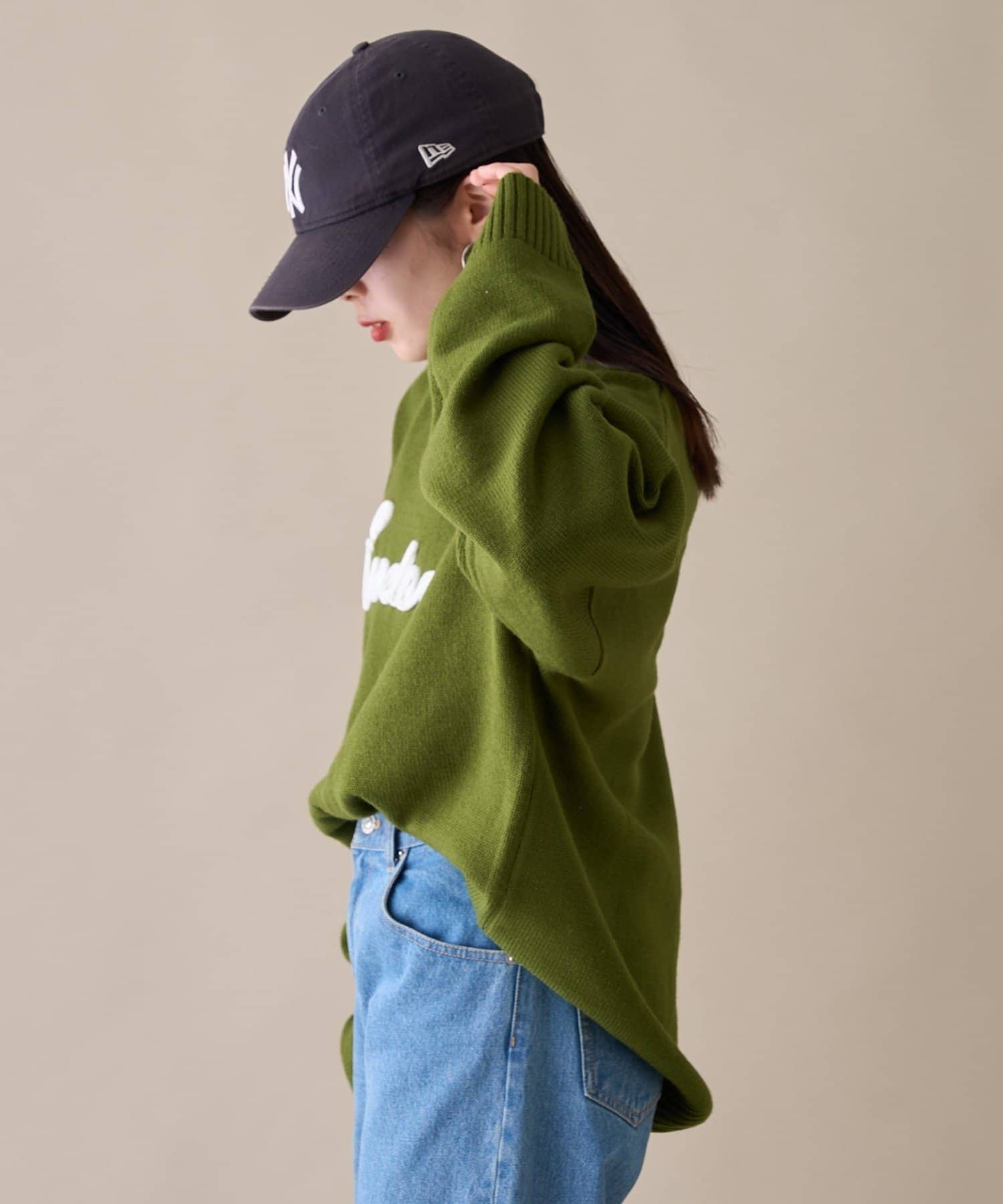 アクリルを使用しており、やわらかい肌触りで型崩れがしにくいニットです!