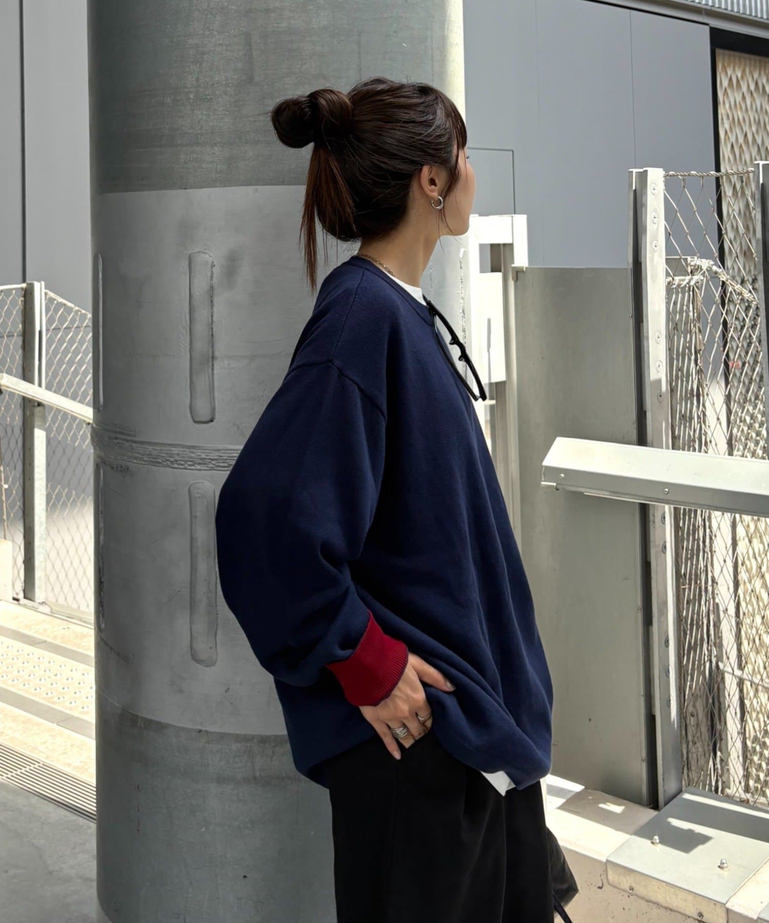 【洗えるニット】ユニセックスビックシルエットロンTeeライクニット