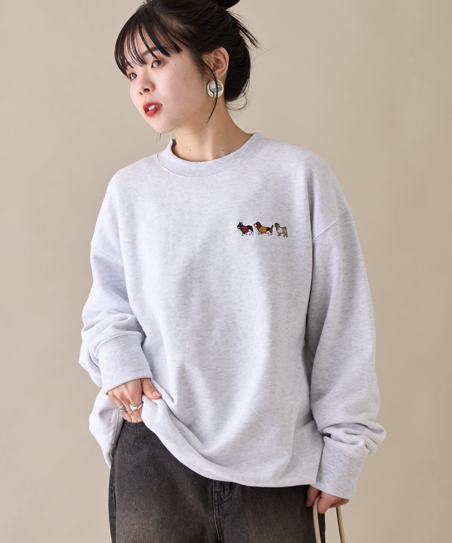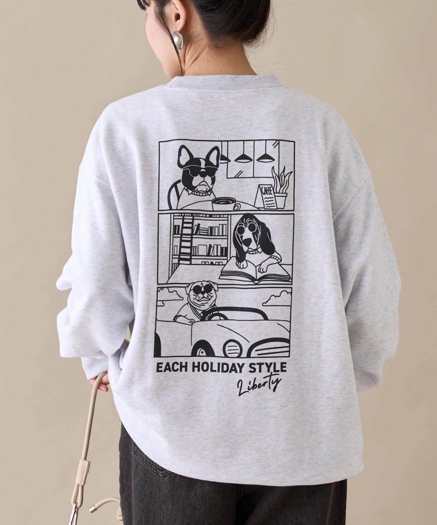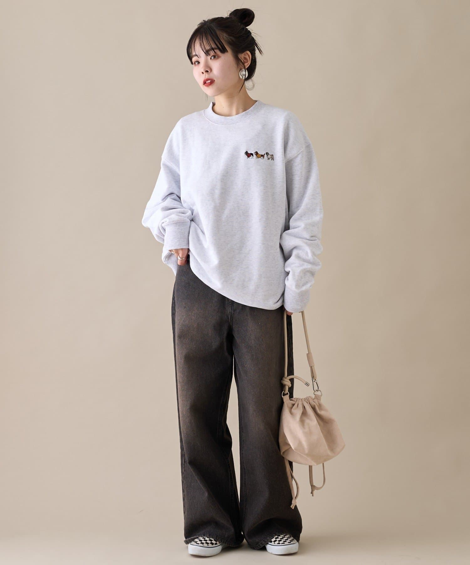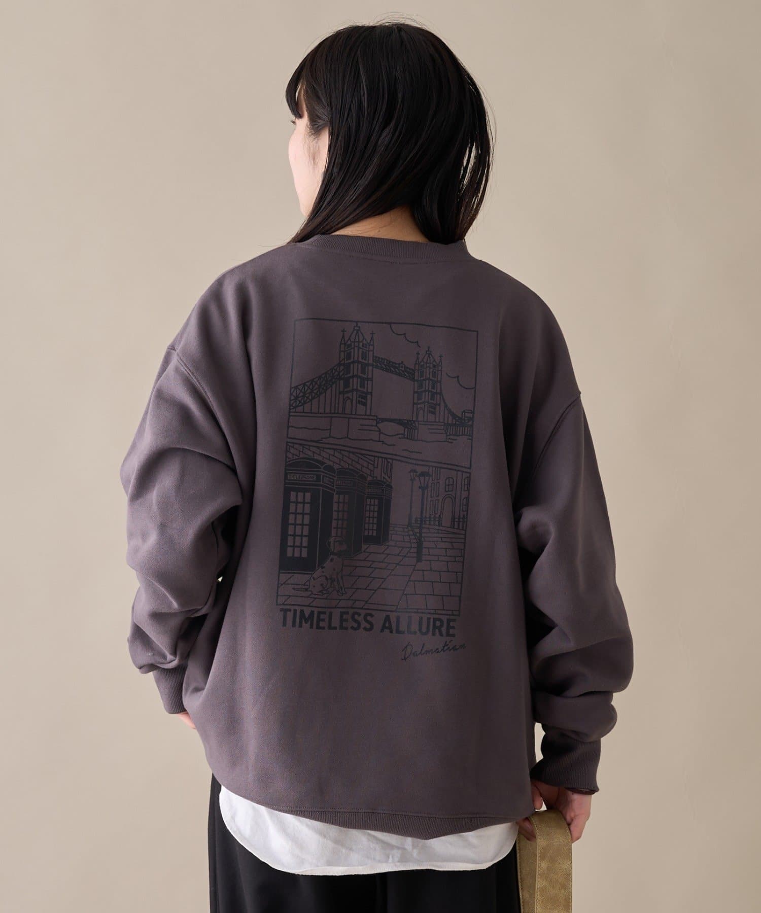 アニマル柄ワンポイント刺繍バックプリントスウェット