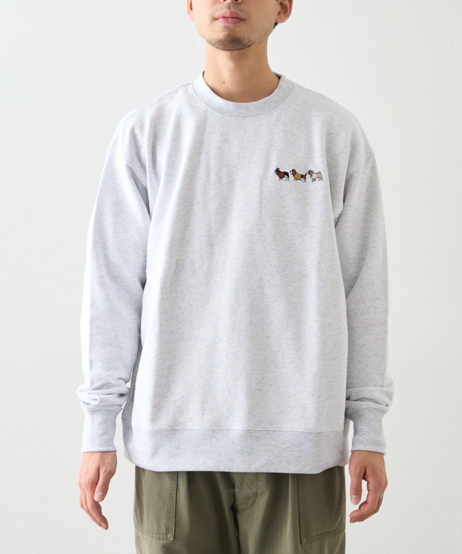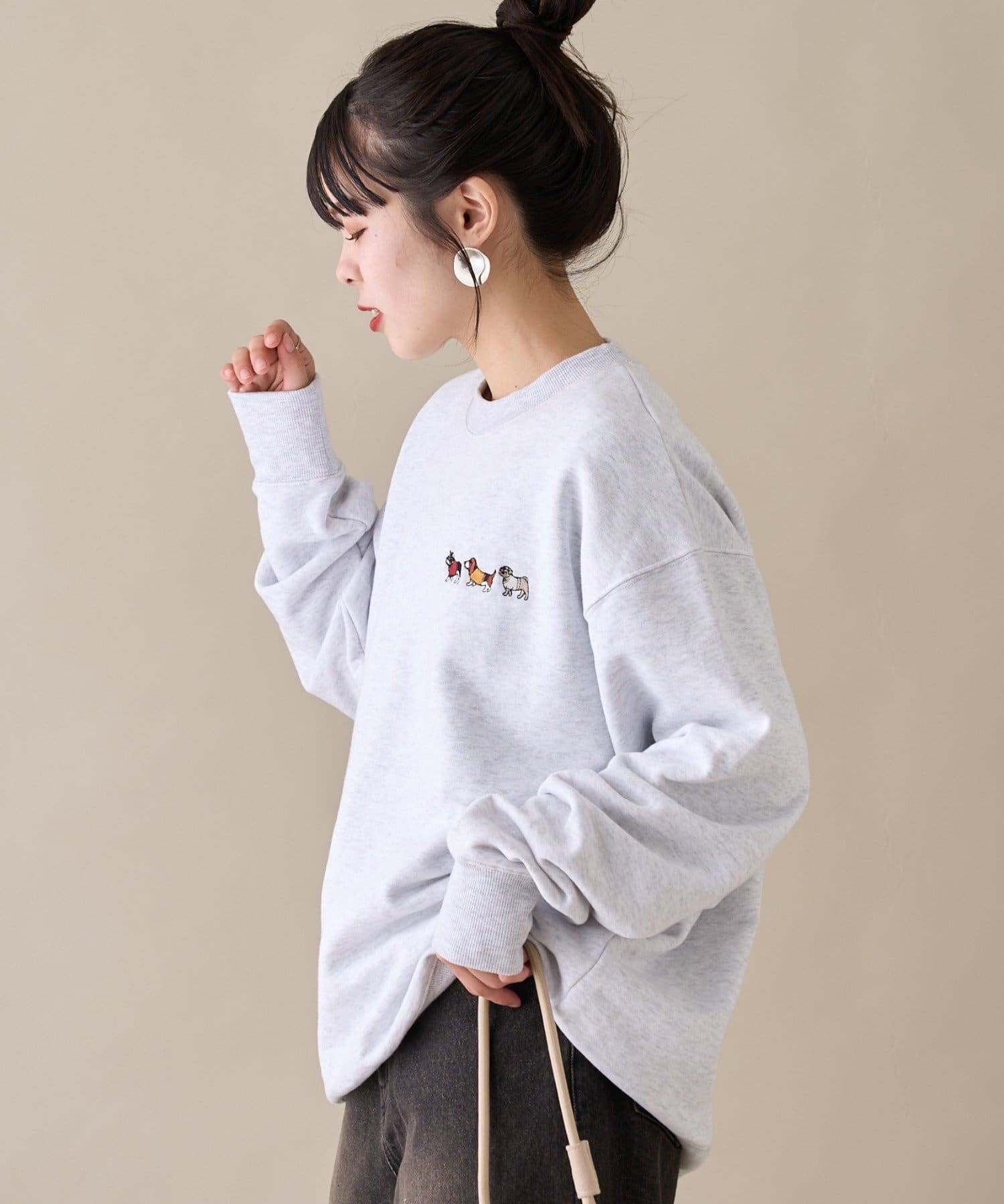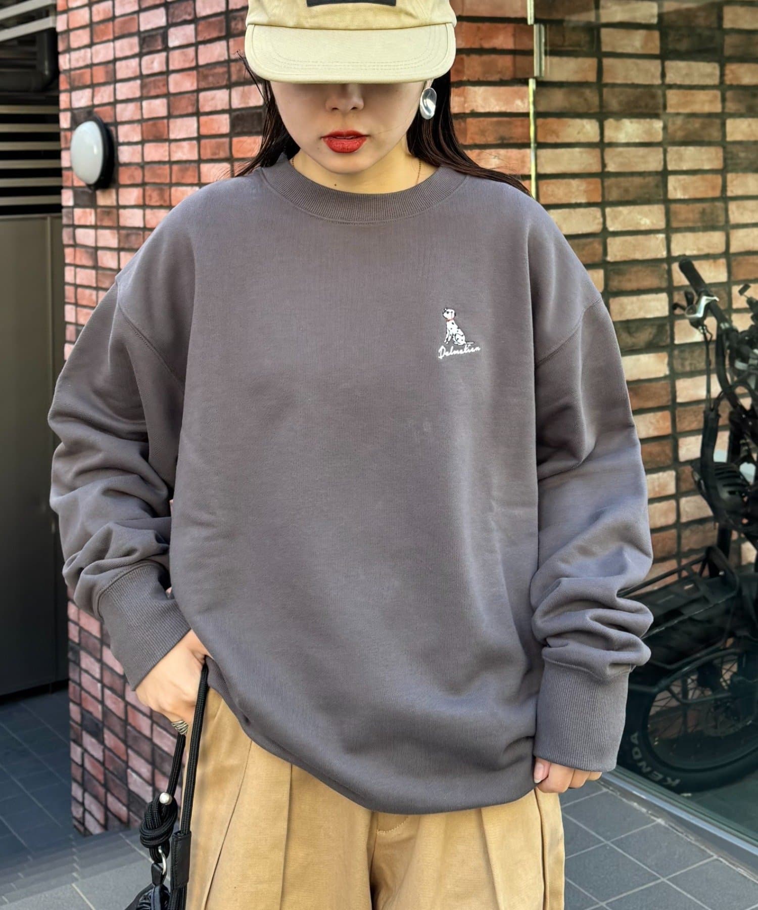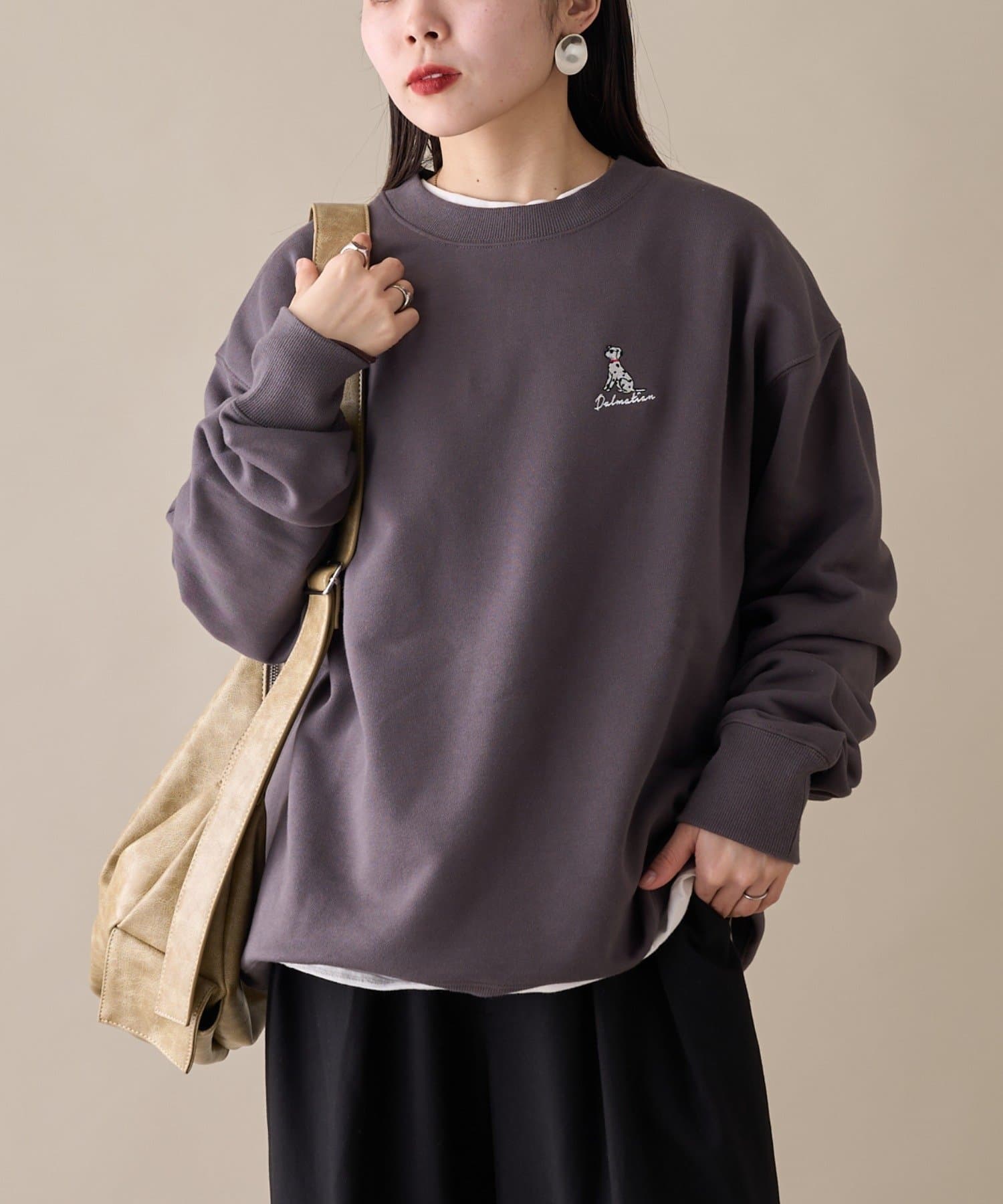 アニマル柄ワンポイント刺繍バックプリントスウェット