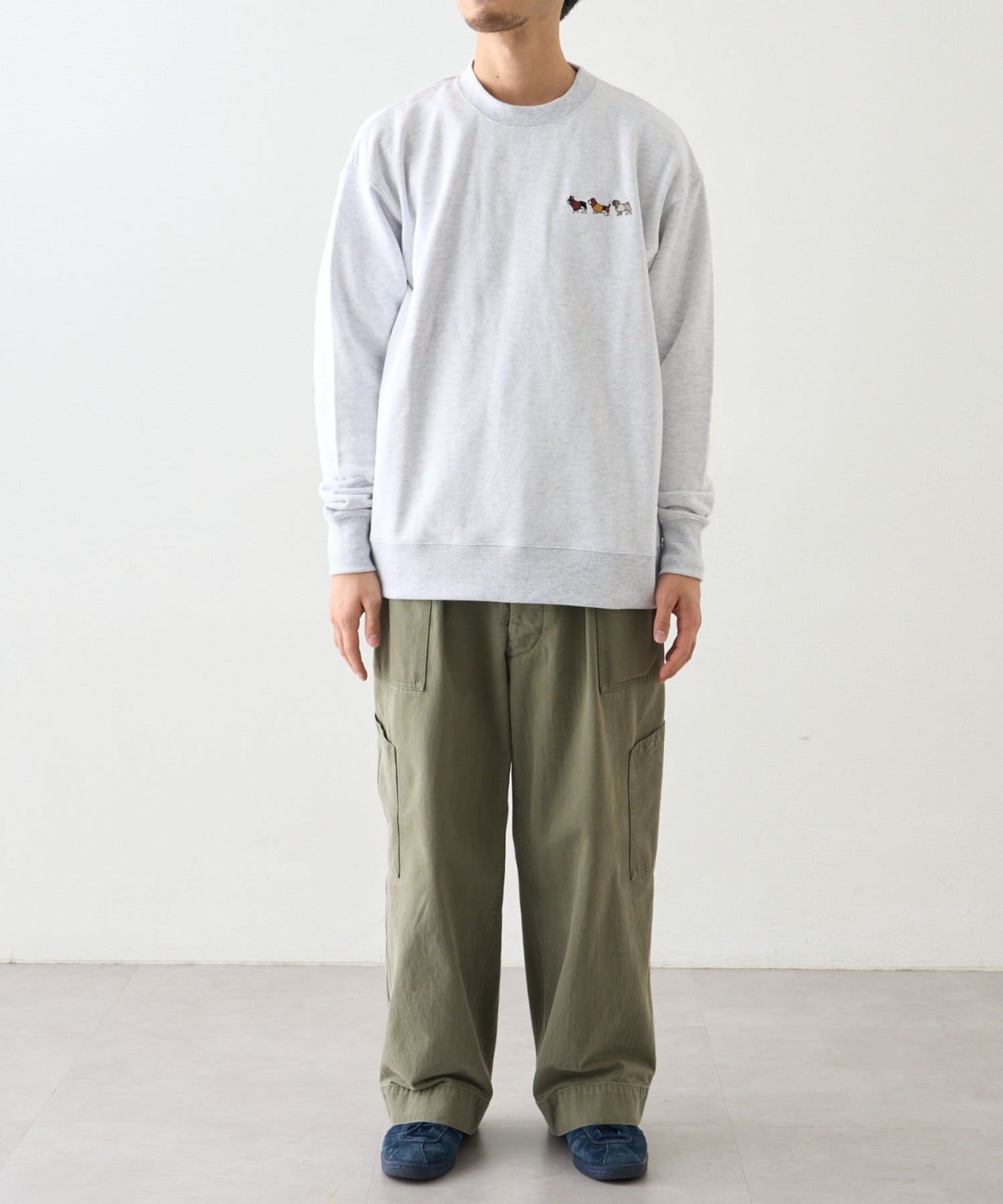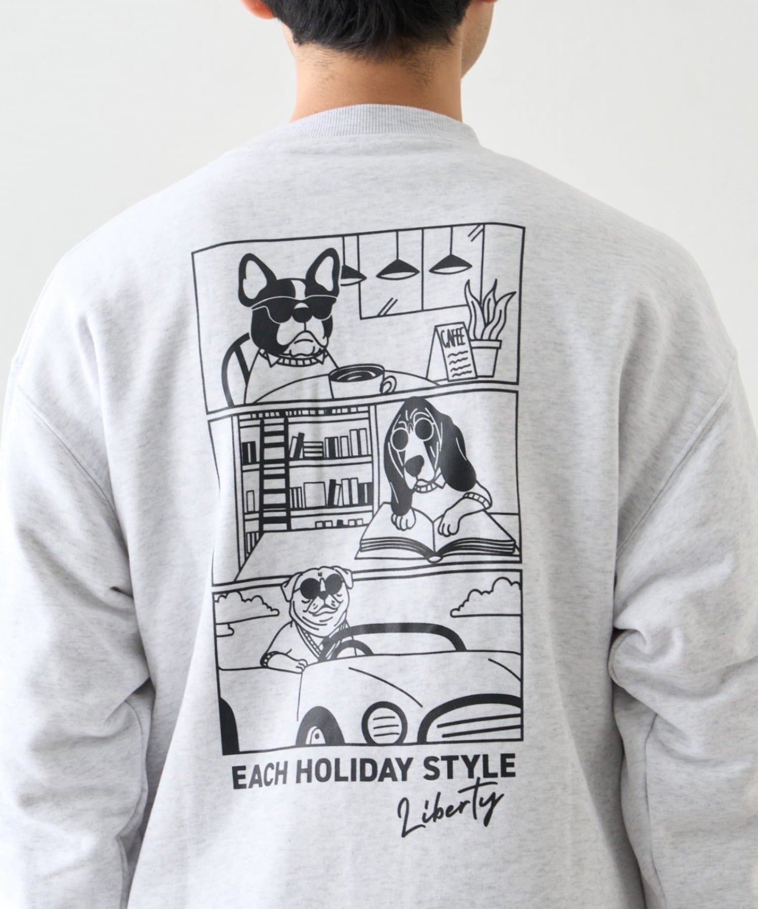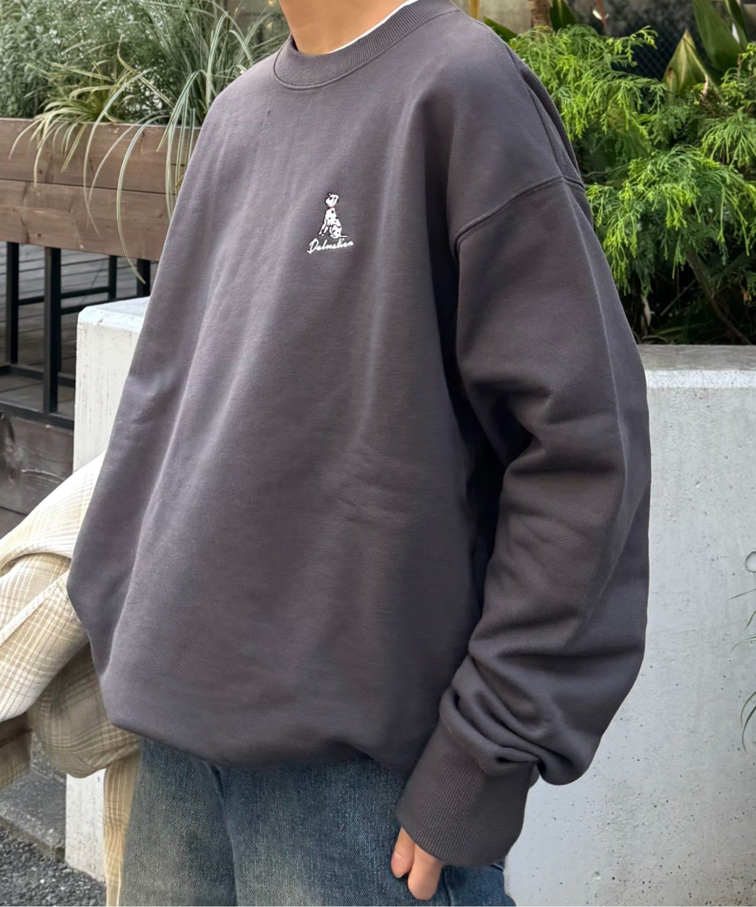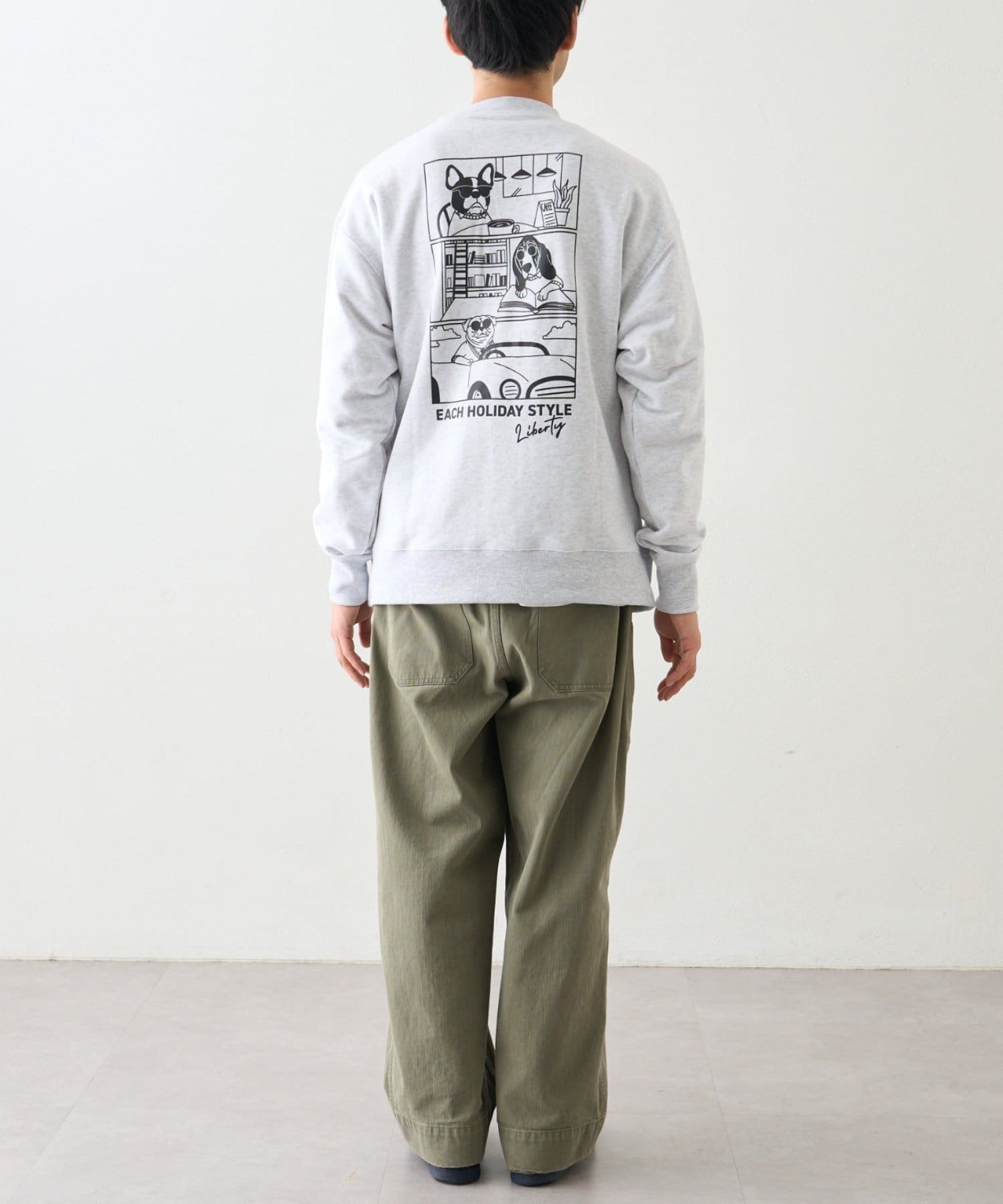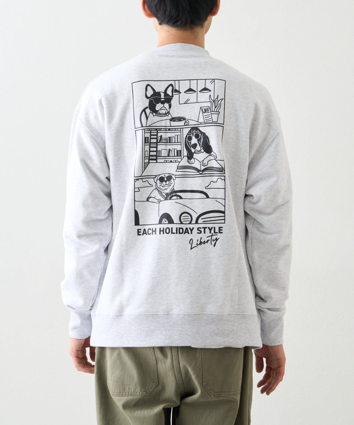 アニマル柄ワンポイント刺繍バックプリントスウェット