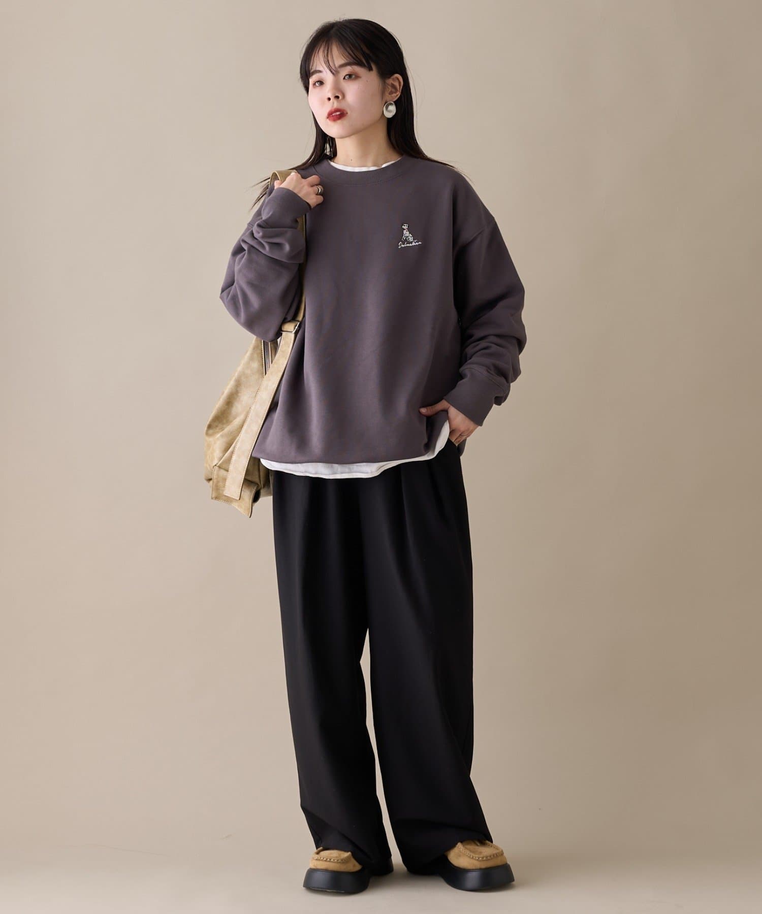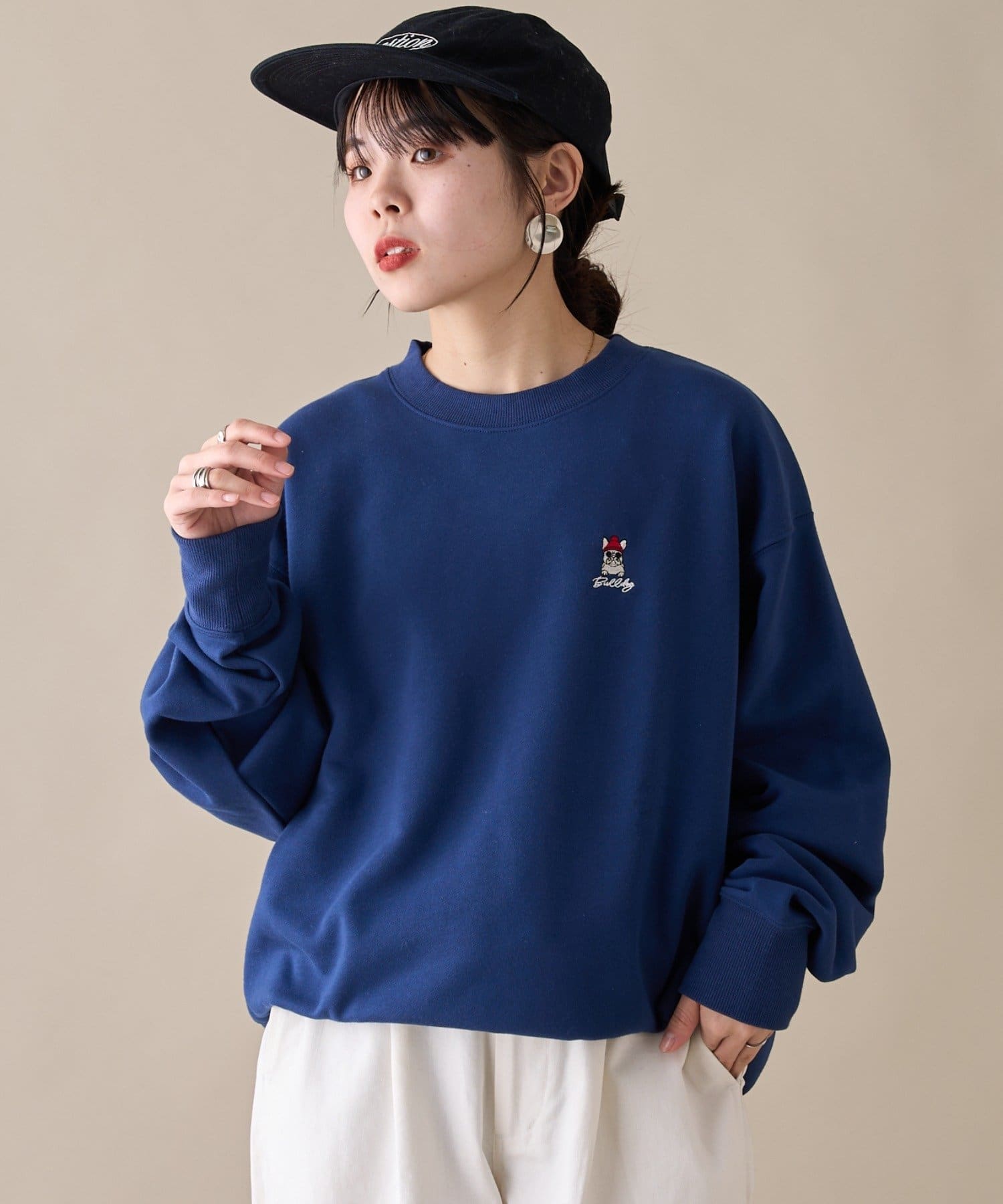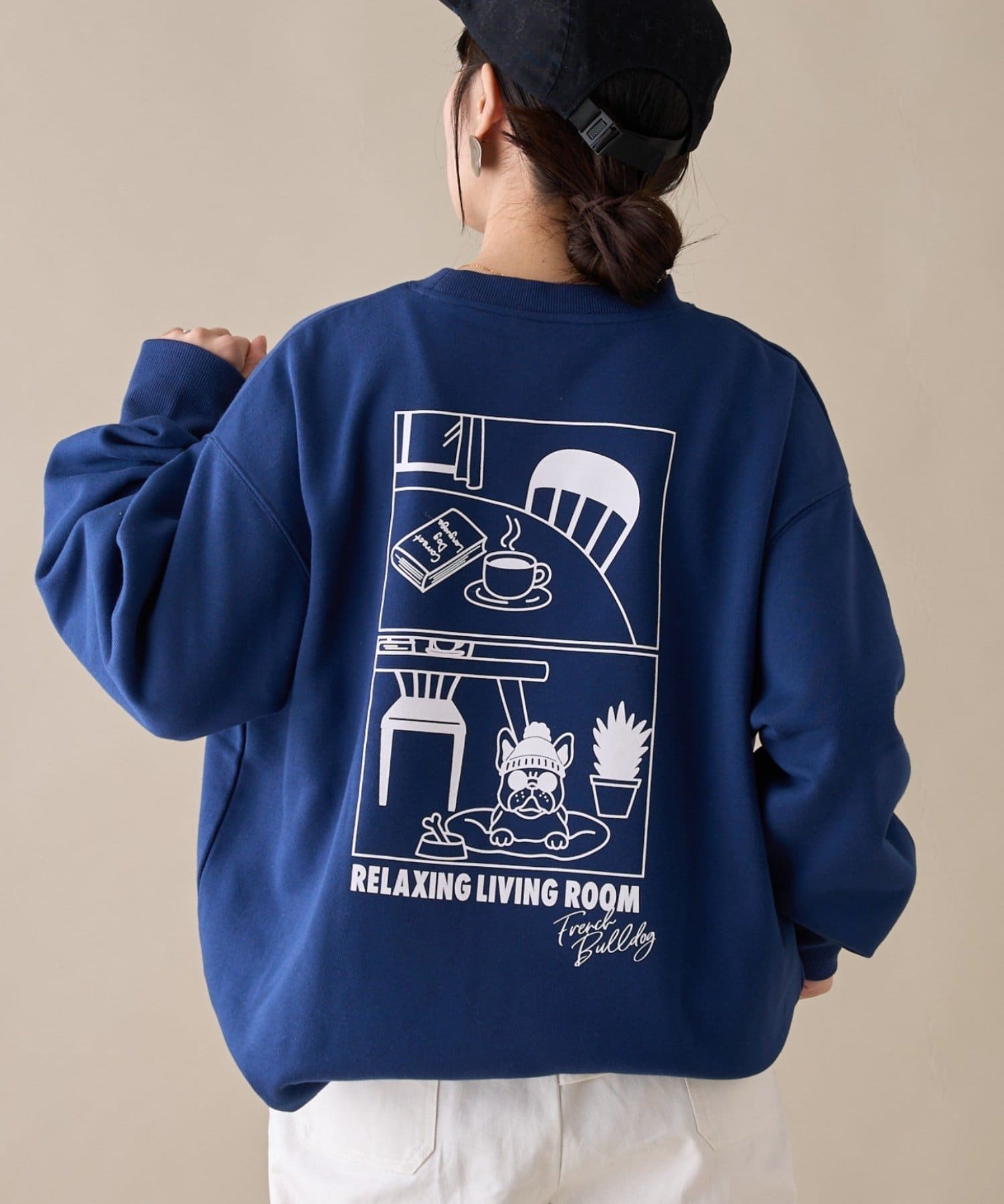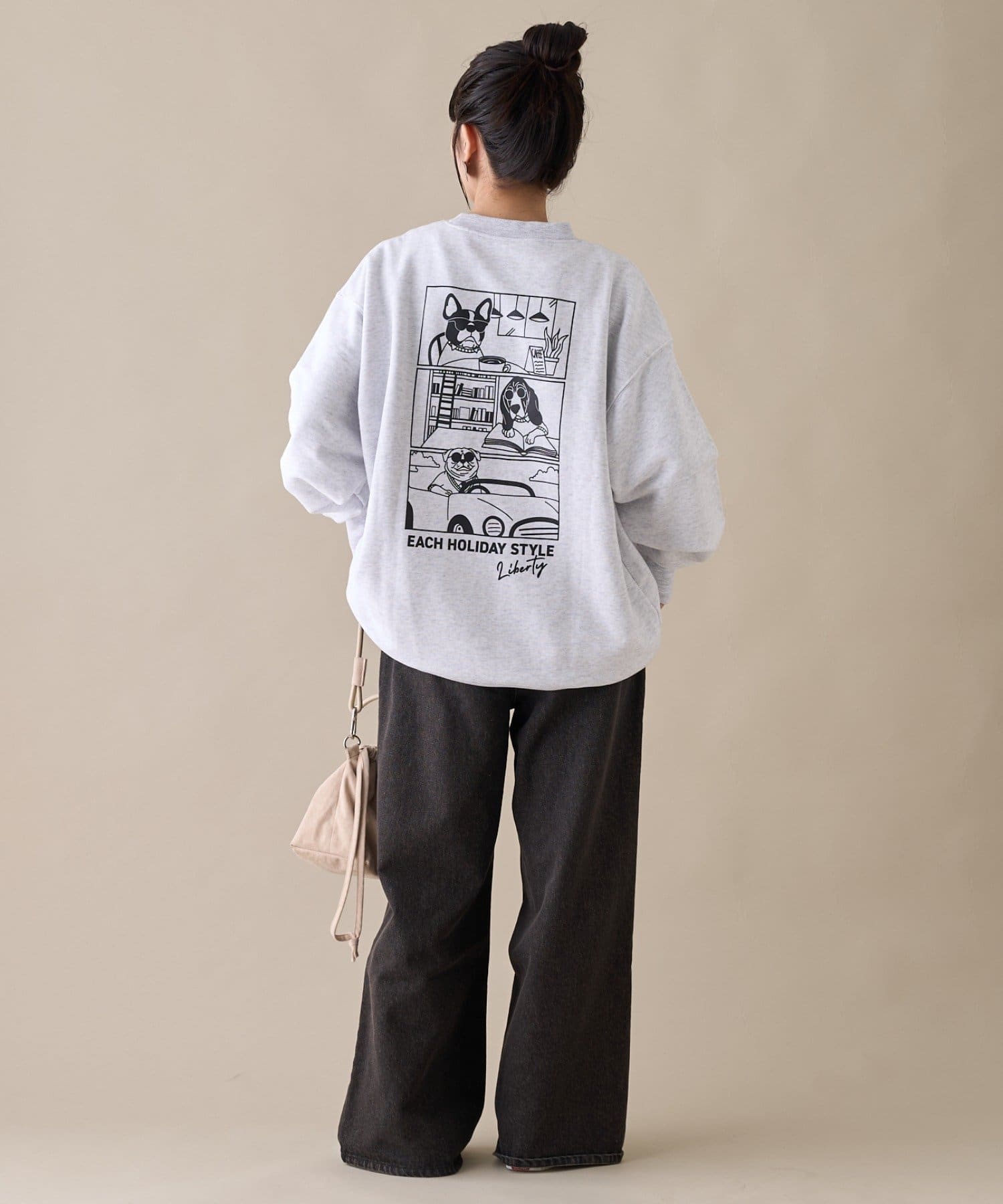 アニマル柄ワンポイント刺繍バックプリントスウェット