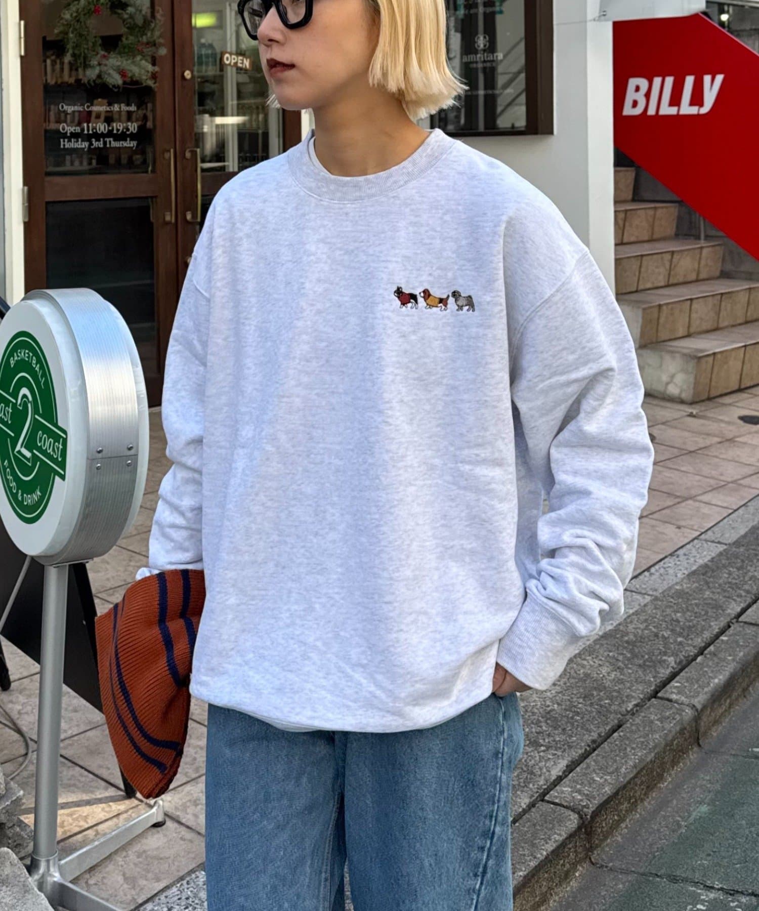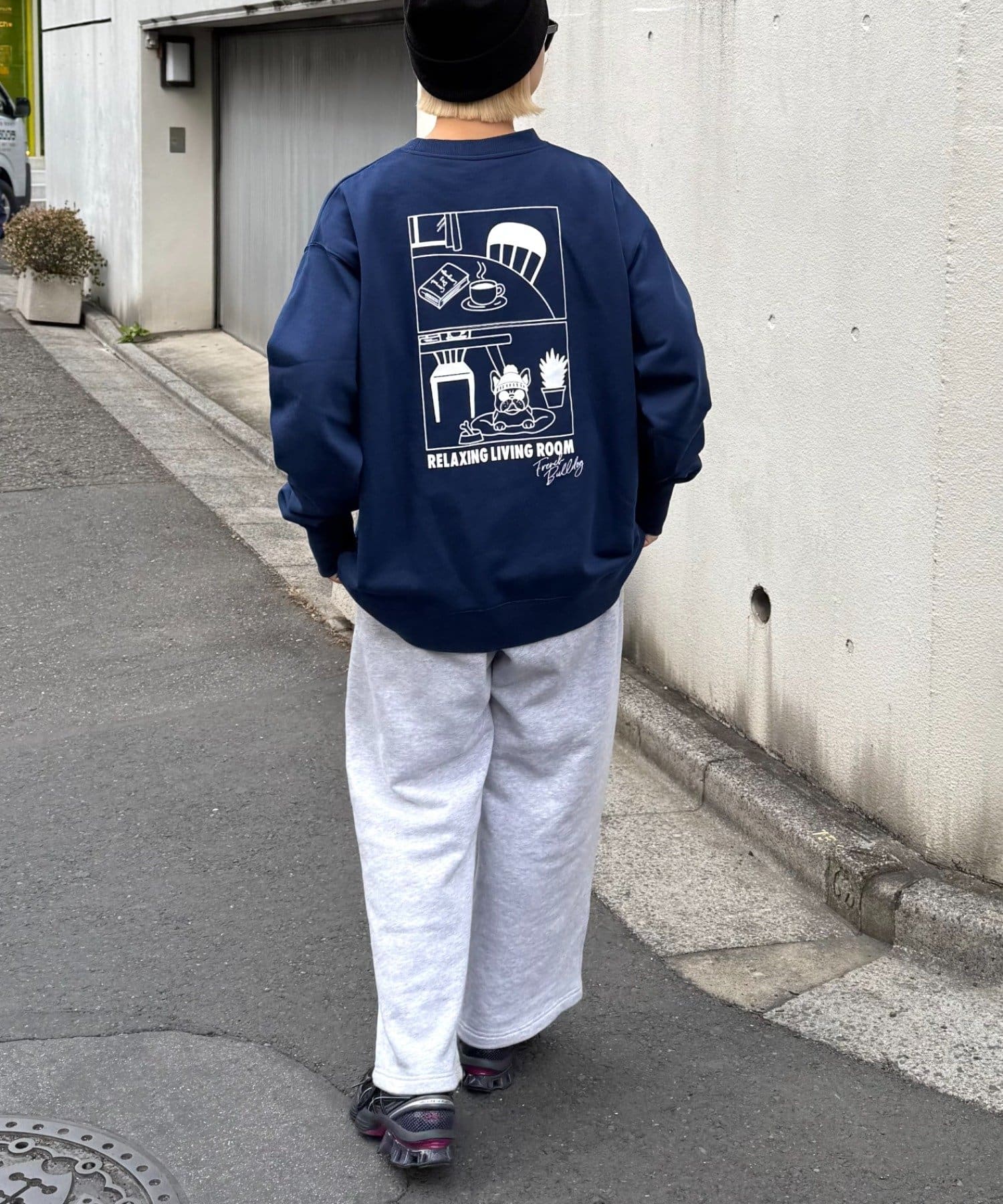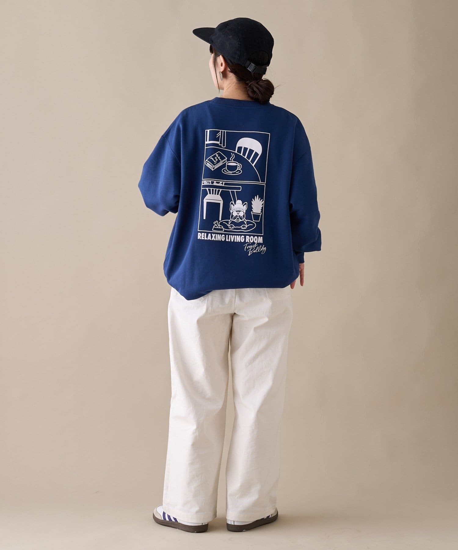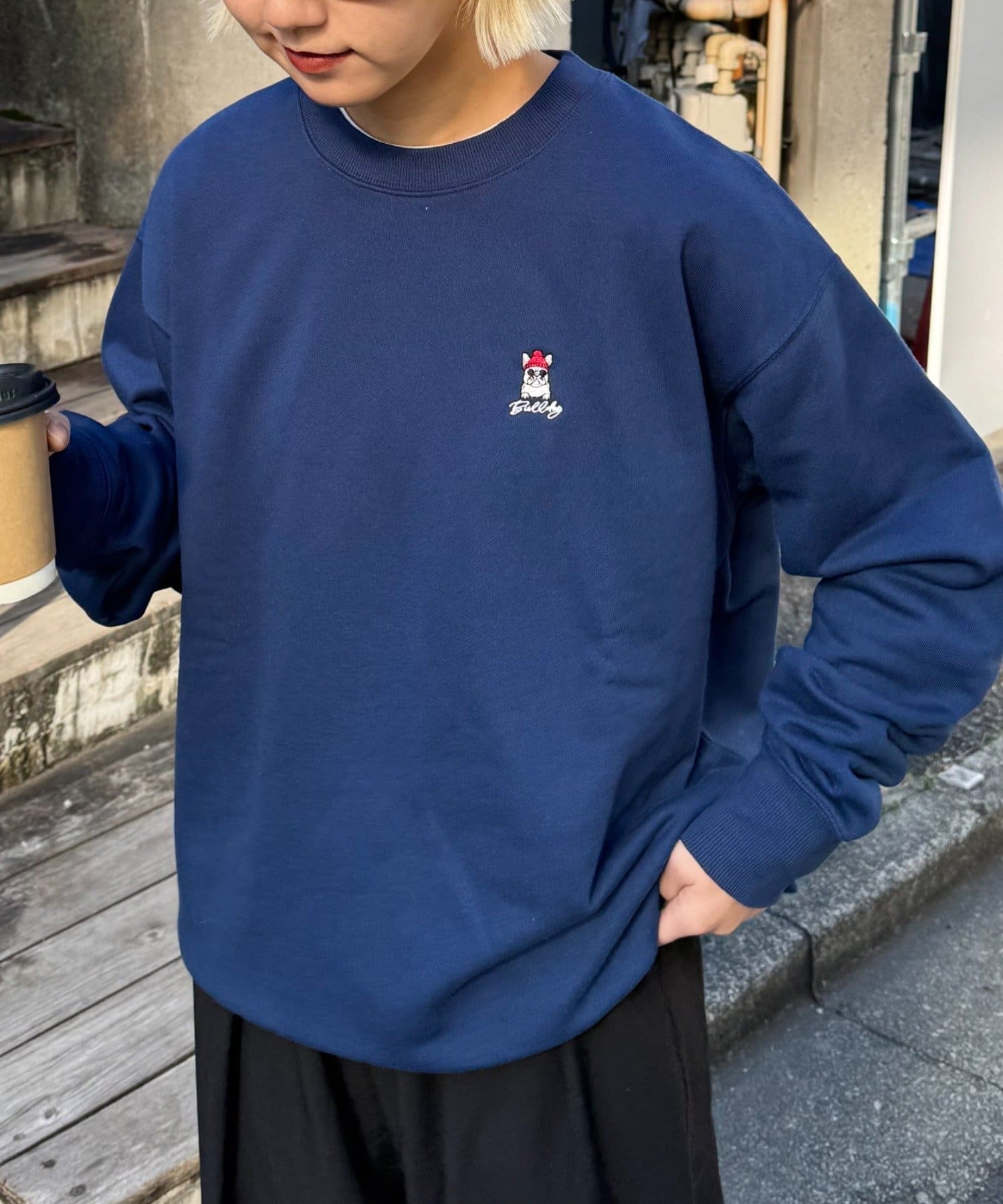アニマル柄ワンポイント刺繍バックプリントスウェット